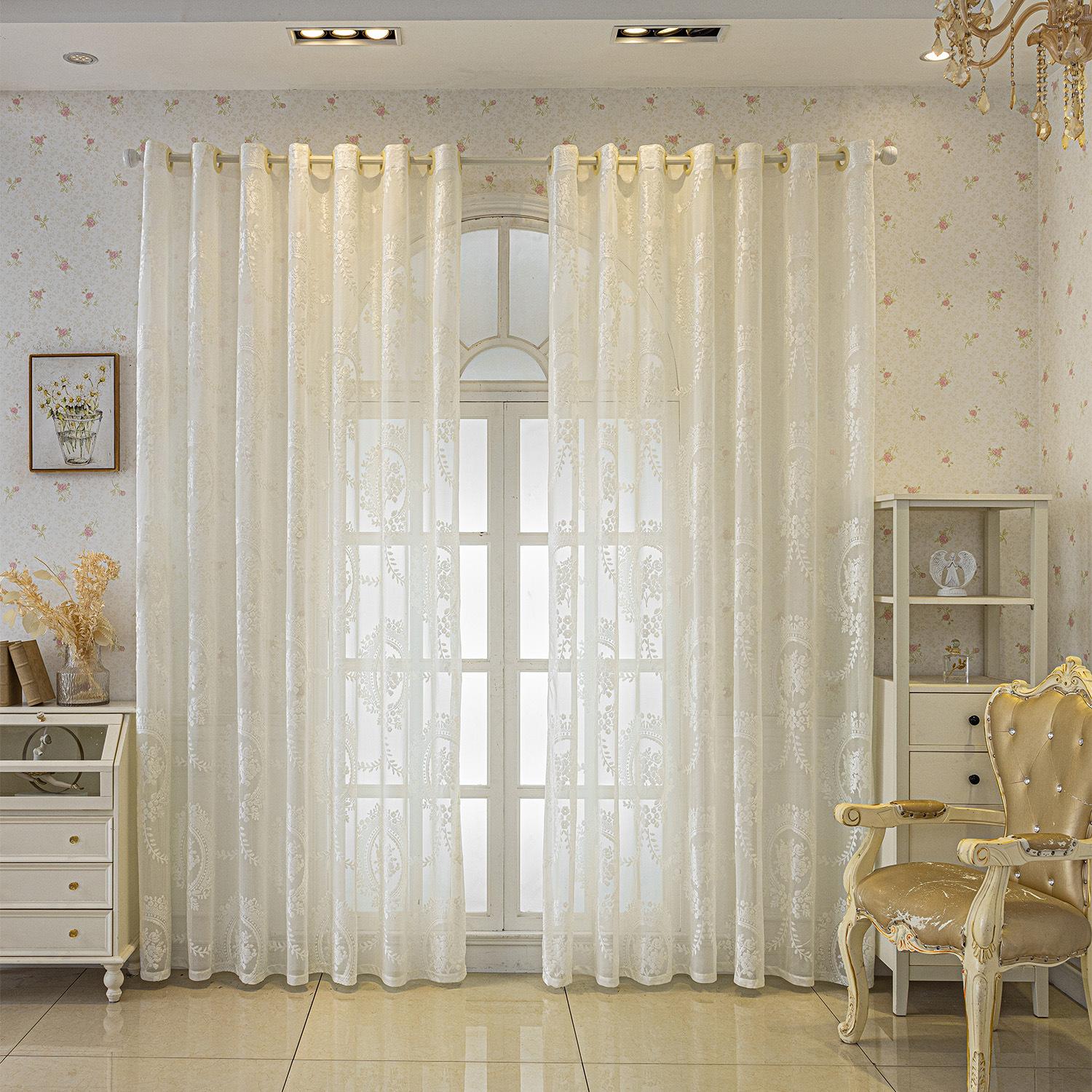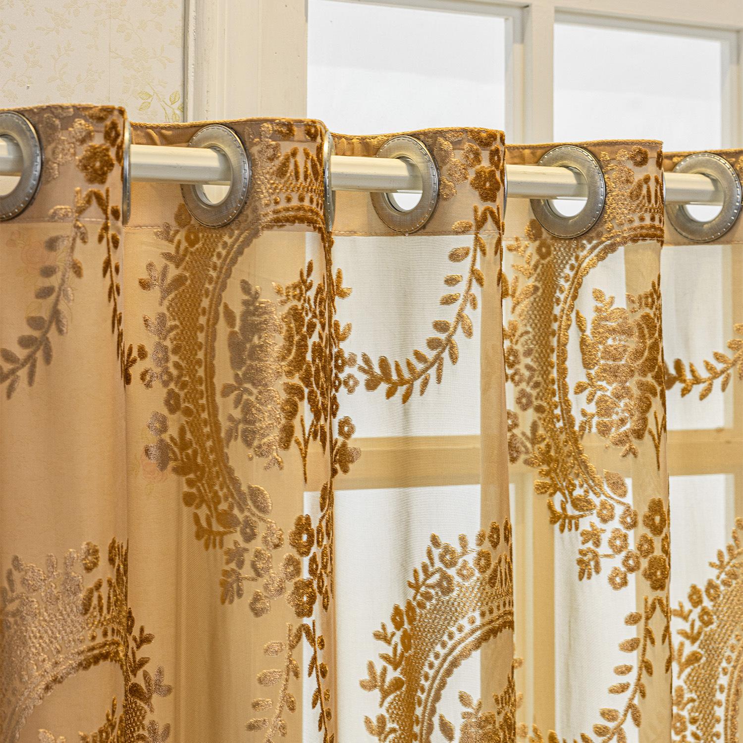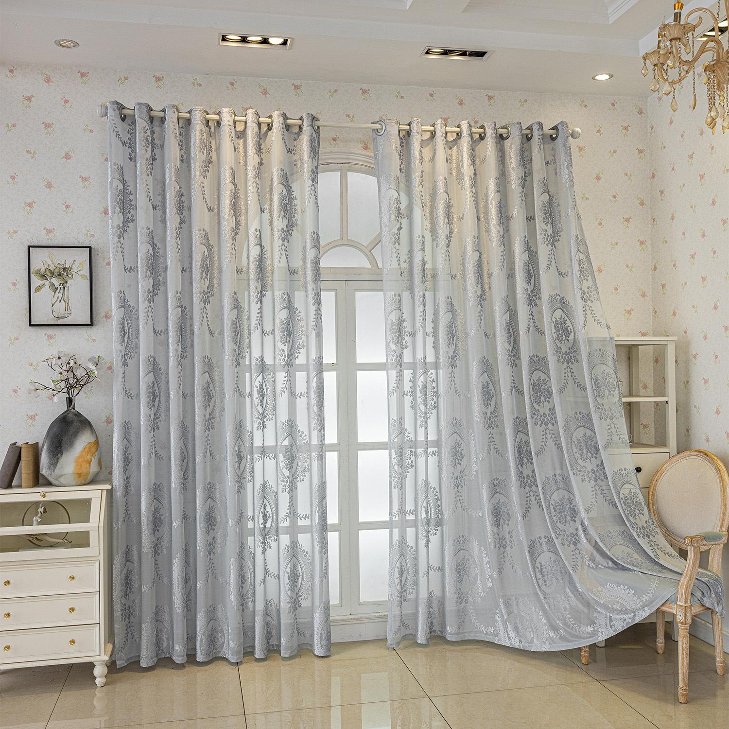 Cortinas Jacquard Retro Estampadas Tridimensionales Translúcidas para Ventana Visillo Moderno Pastoral Cortinas de Gasa Sala de Estar Dormitorio Balcón Venta al por Mayor de Fábrica