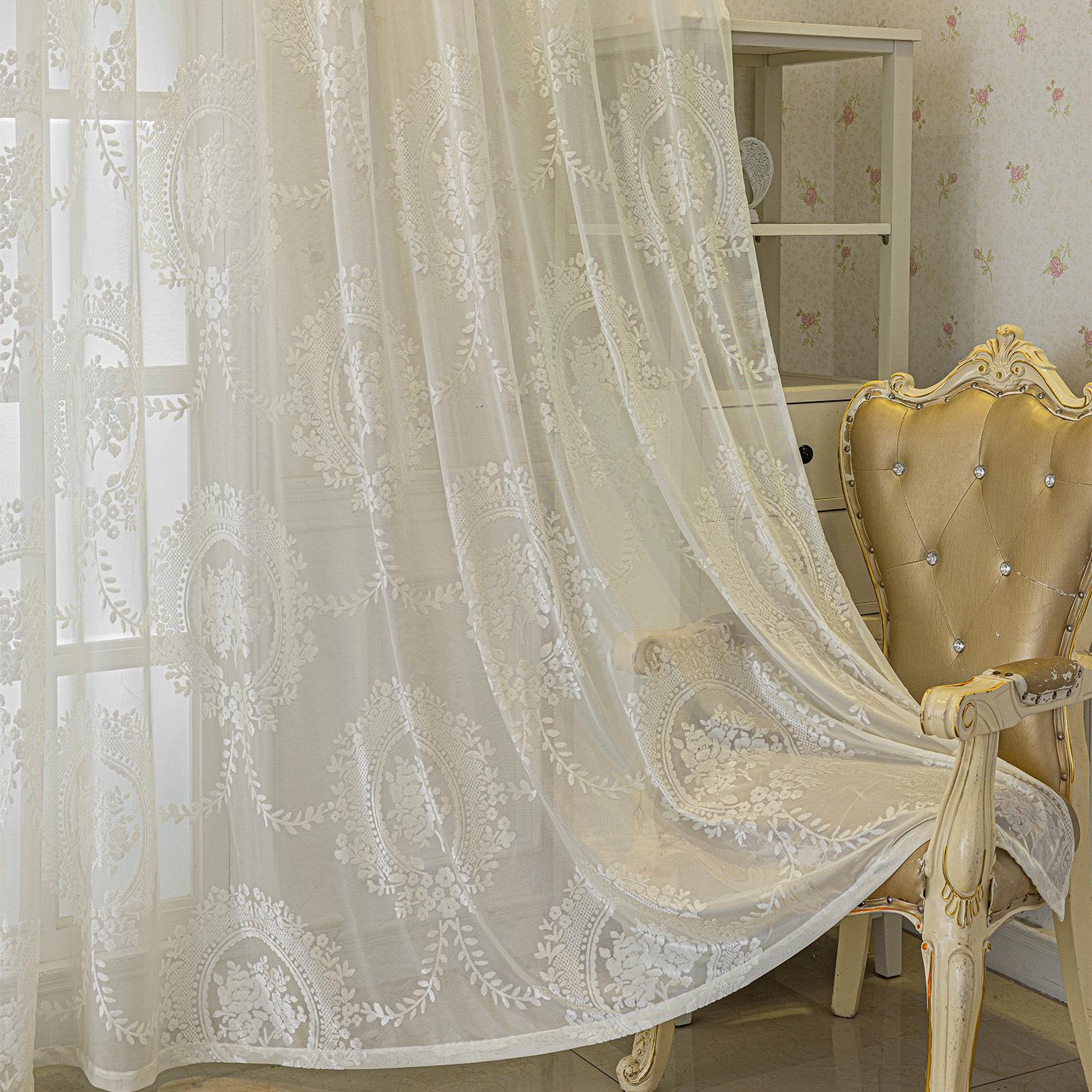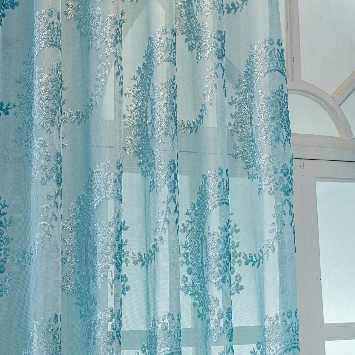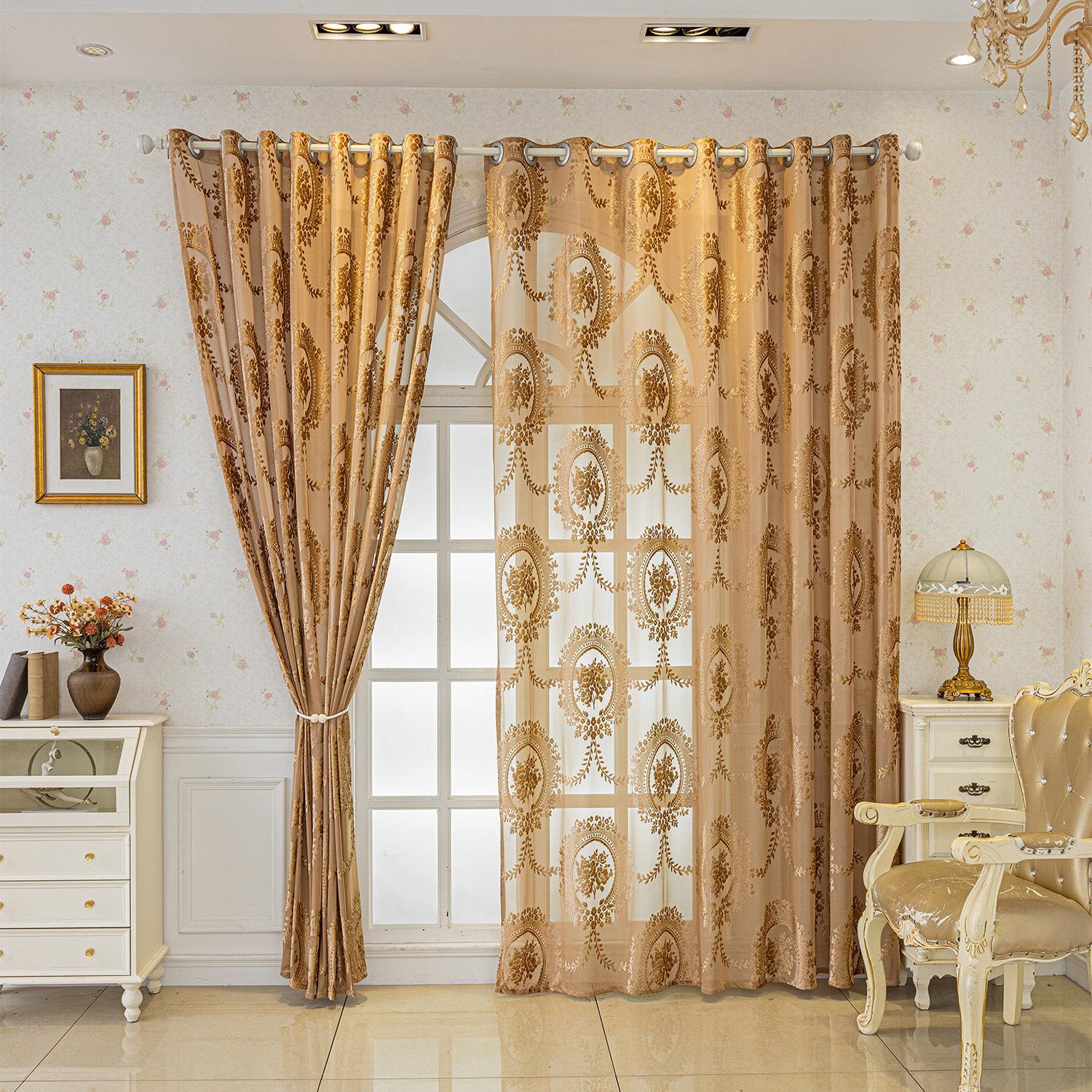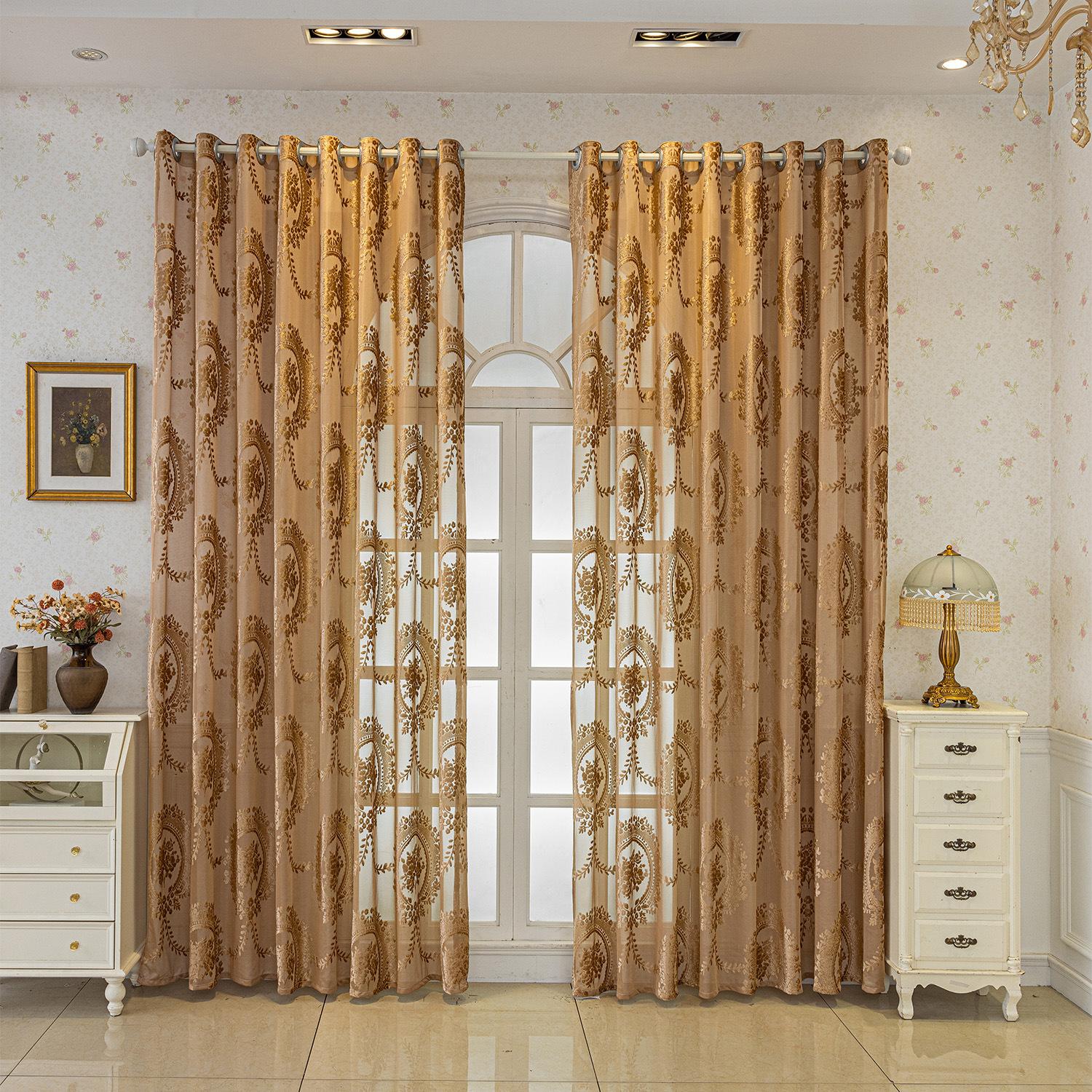 Cortinas Jacquard Retro Estampadas Tridimensionales Translúcidas para Ventana Visillo Moderno Pastoral Cortinas de Gasa Sala de Estar Dormitorio Balcón Venta al por Mayor de Fábrica