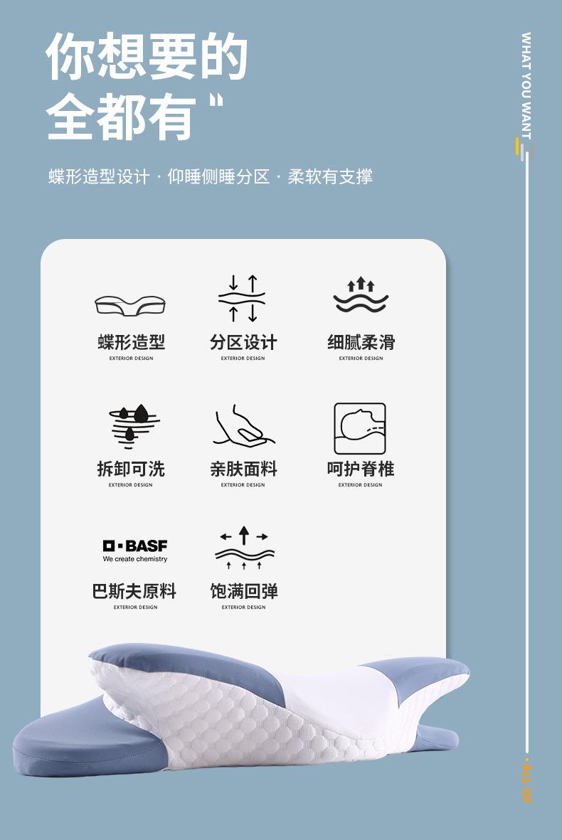 Almohada de espuma viscoelástica soporte para el cuello almohada de mariposa oem transfronteriza almohada de memoria de rebote lento almohada para sueño profundo almohada para el cuello personalizada