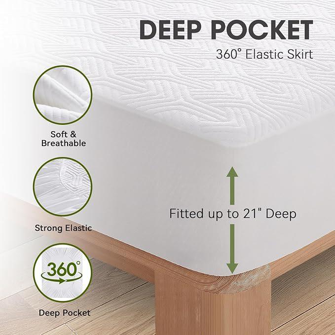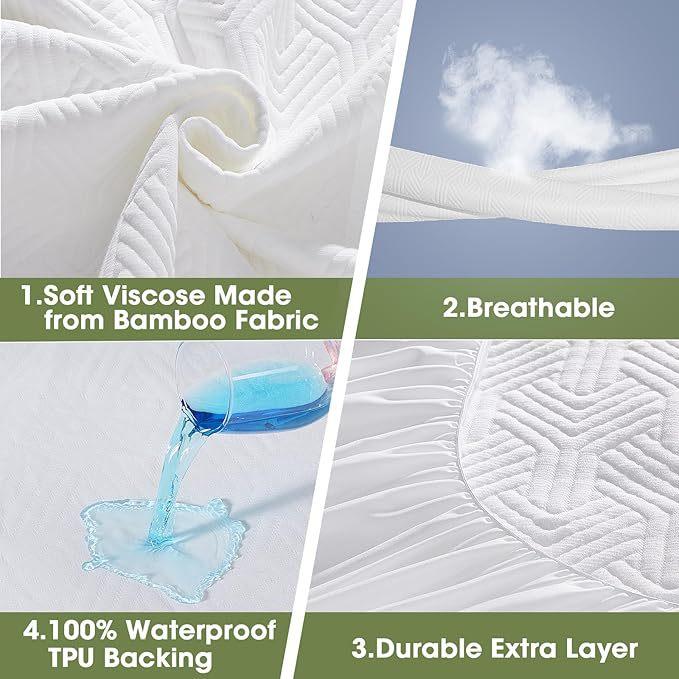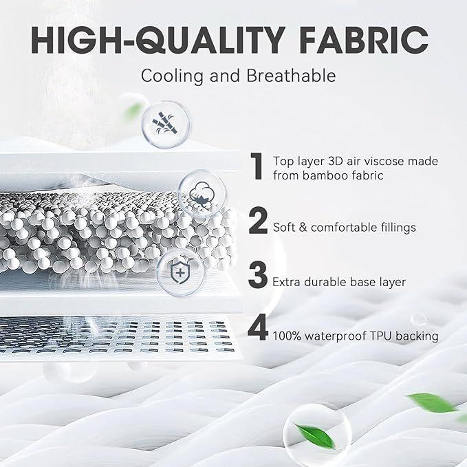 Colchón Impermeable Refrescante de Viscosa de Bambú Suave Colchón Tamaño Completo Cubrecolchón Tacto Frío Capa de Aire Protector de Colchón Lavable