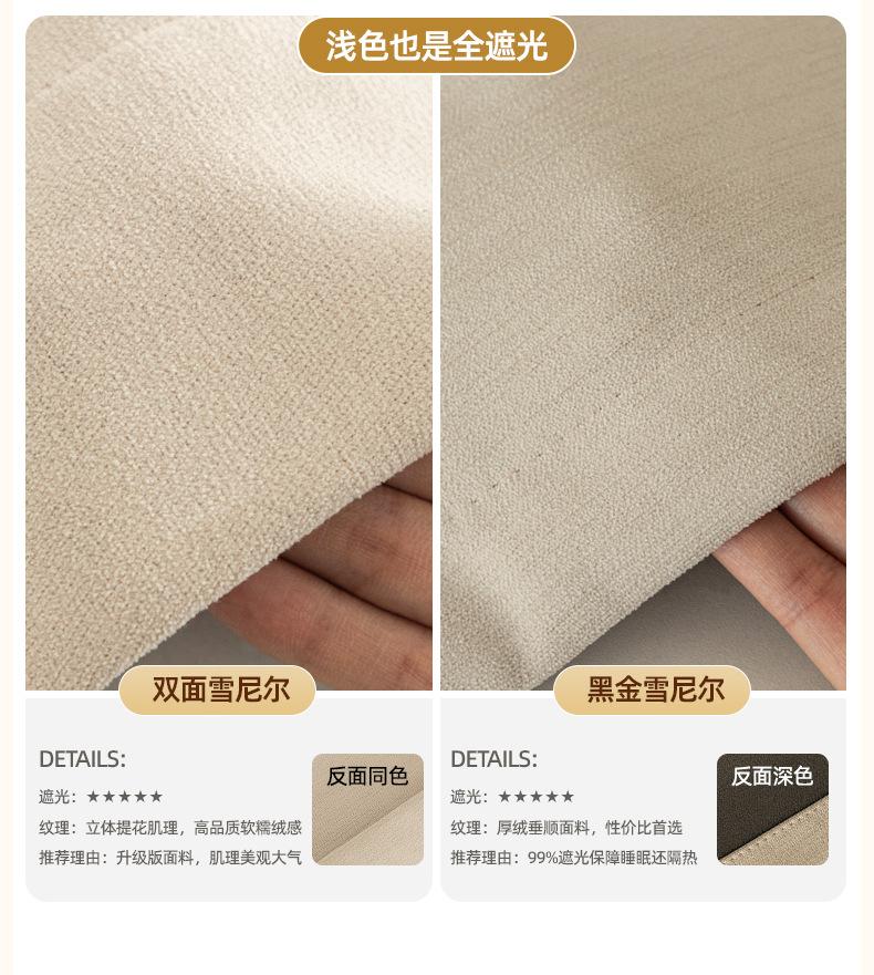 Cortinas de chenilla de doble cara del mismo estilo dormitorio de alta gama balcón dormitorio estilo crema alta opacidad cortinas Shaoxing Keqiao