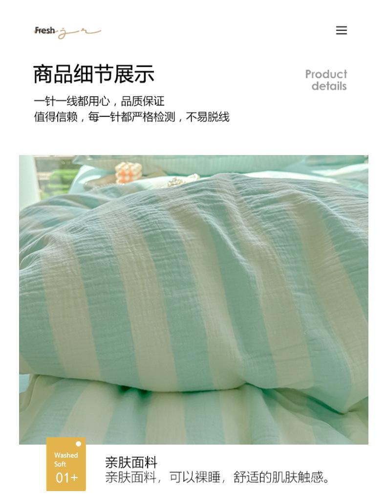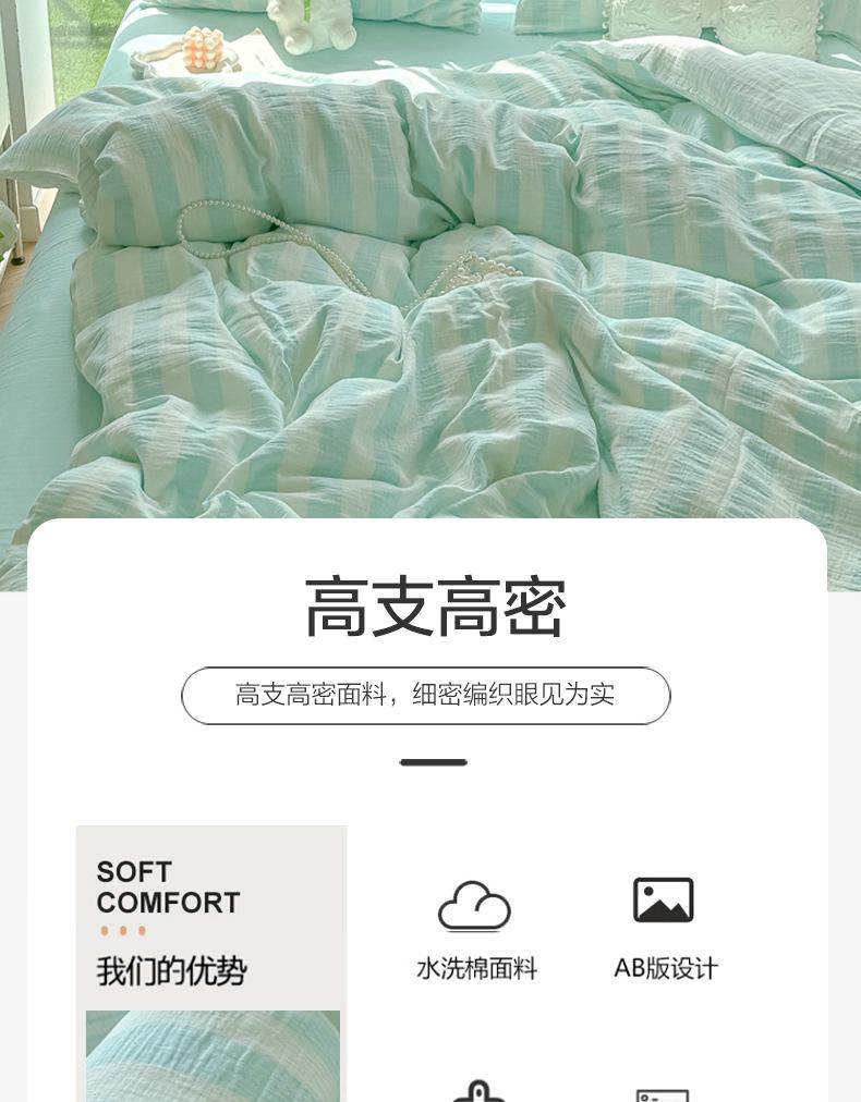 Juego de sábanas de cuatro piezas Algodón lavado de verano 2025 Nuevo Dormitorio Individual Funda de edredón Estilo Sábana Ajustable Ropa de cama de tres piezas