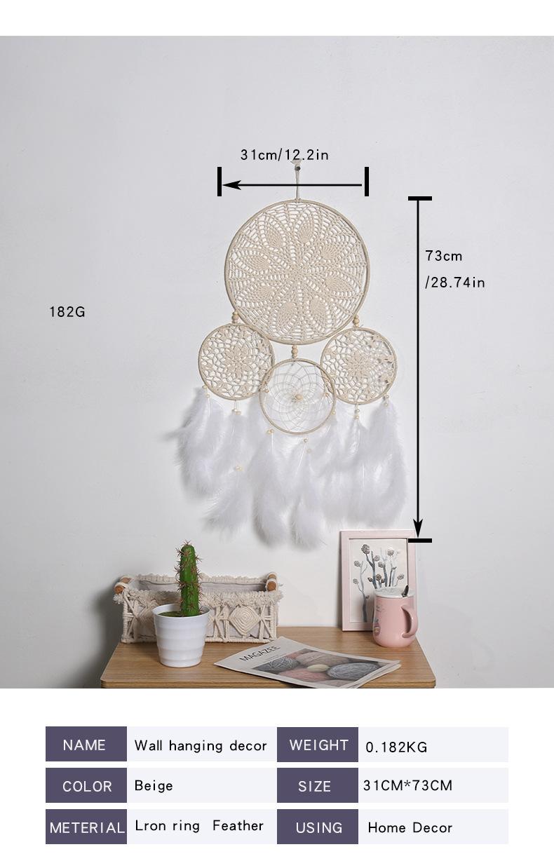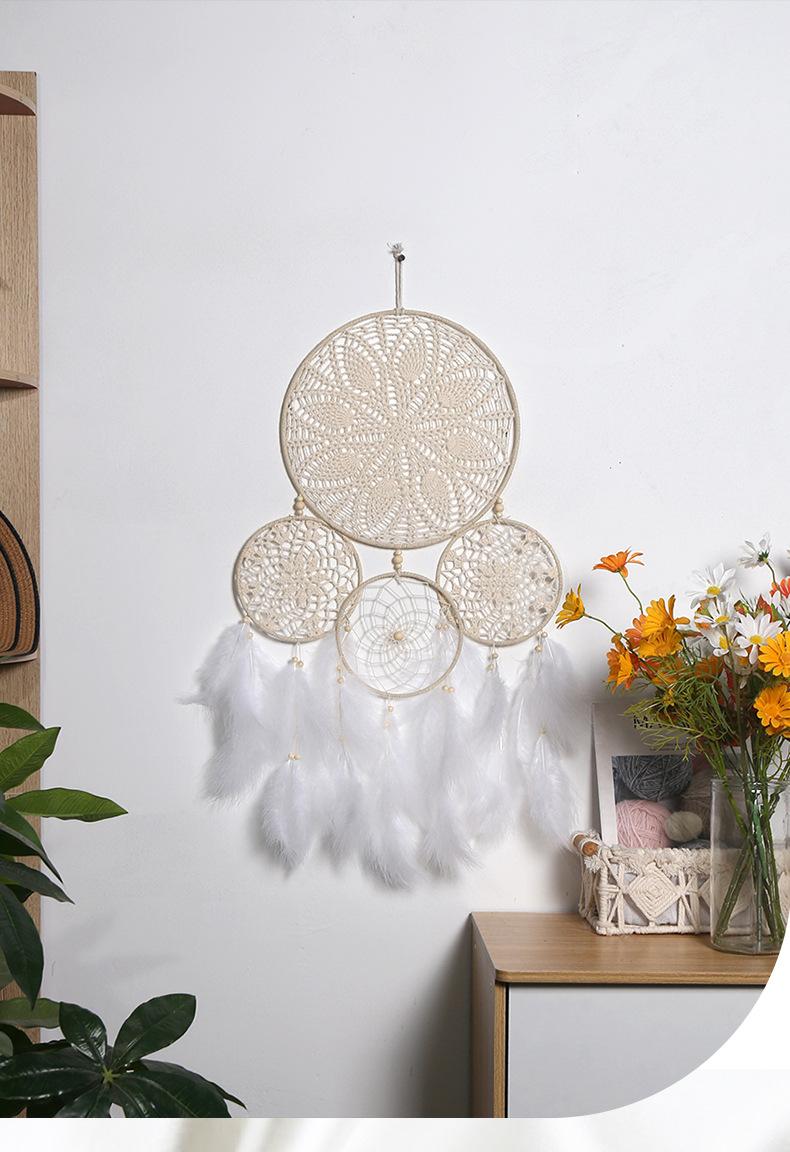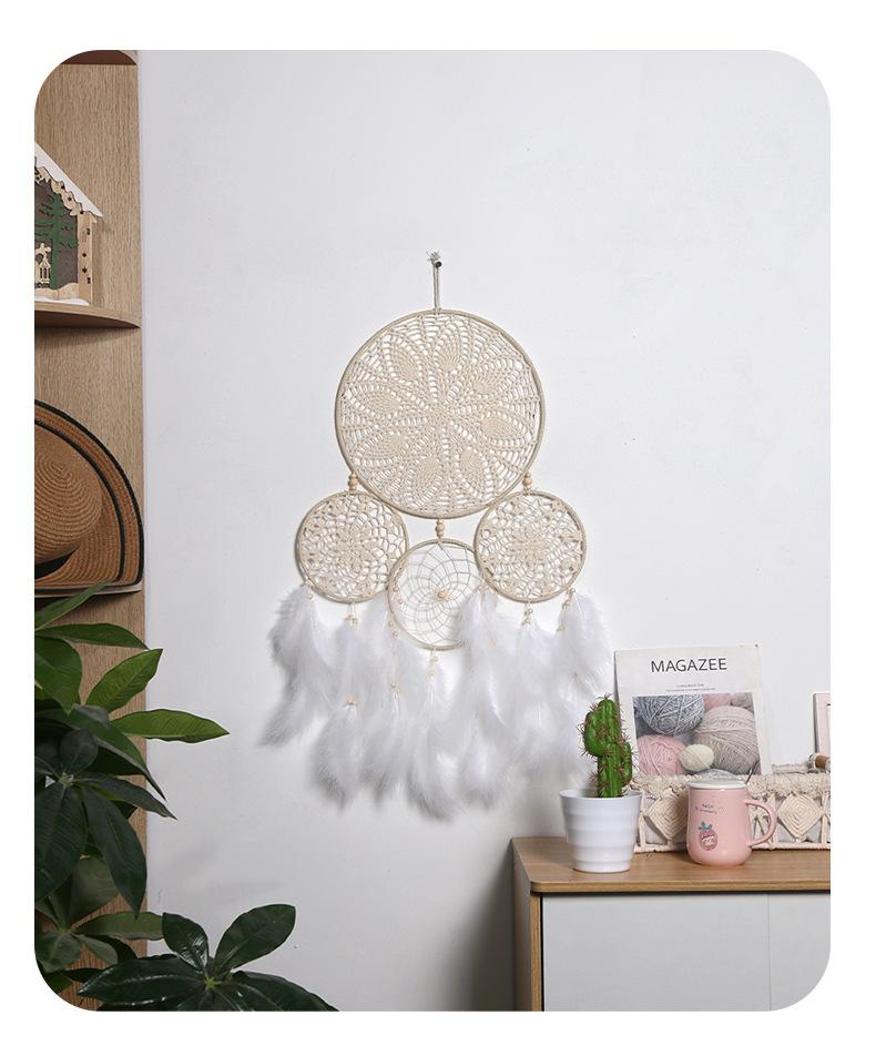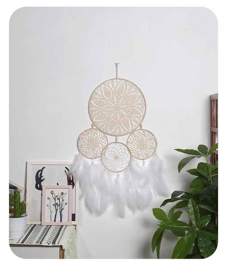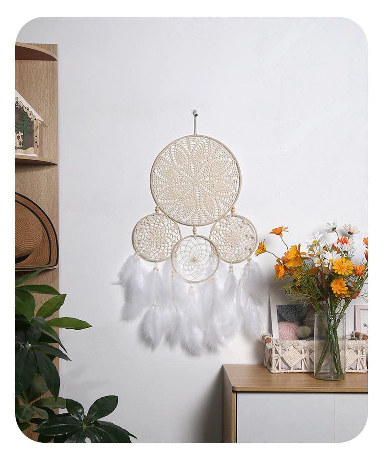 Atrapasueños de Estilo Bohemio de Cuatro Aros de Venta Caliente Transfronteriza Colgante Decorativo Atrapasueños de Plumas Blancas Colgante Decorativo para Pared