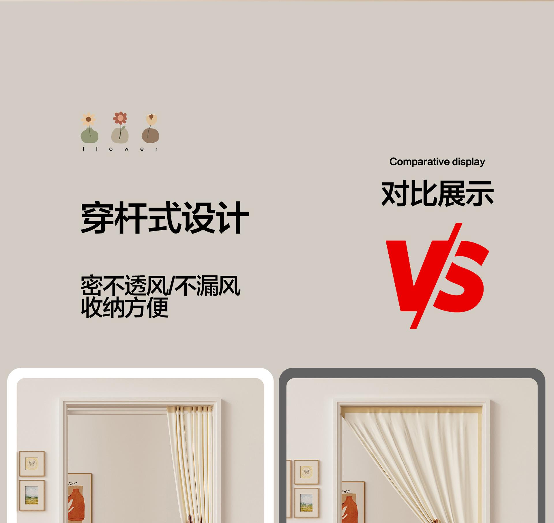 Suitable for door width 53-75CM [Curtain width 100*height 180]