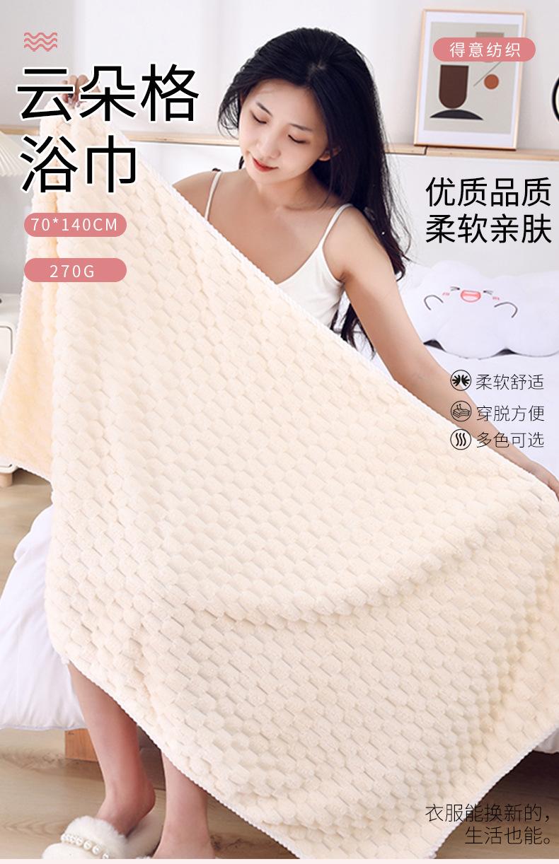Toalla de baño de celosía de nube sacude la misma toalla absorbente de secado rápido sin pelusa gruesa toalla de playa vellón coral toalla de baño grande