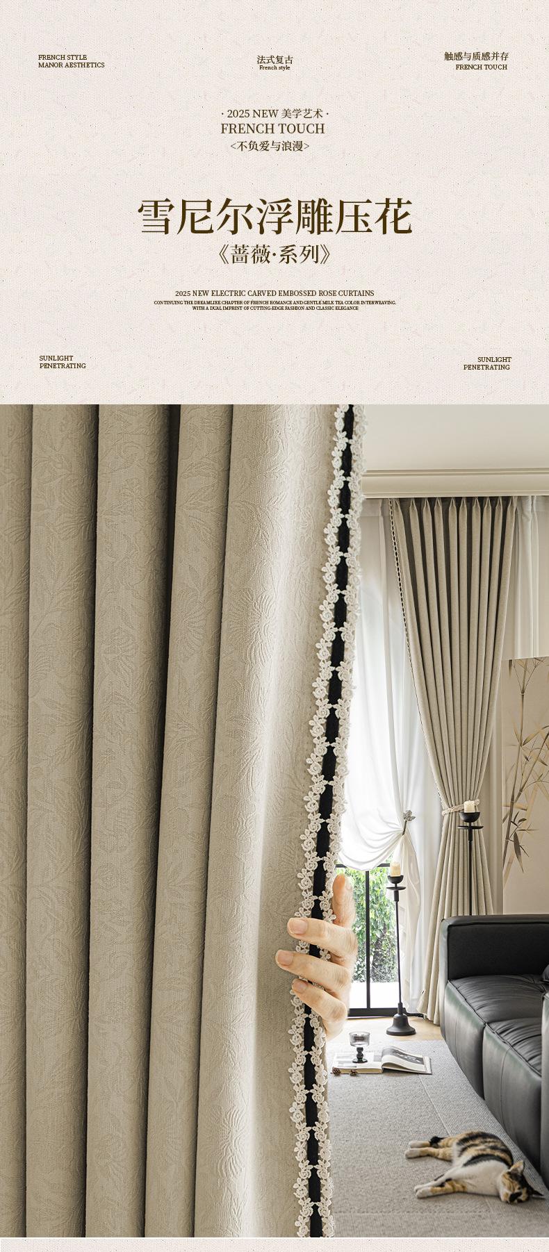 Cortinas Francesas Vintage Electrograbado Relieve Rosa Chenilla Cortinas Blackout Espesadas Cortinas Blackout Dormitorio Alta Gama
