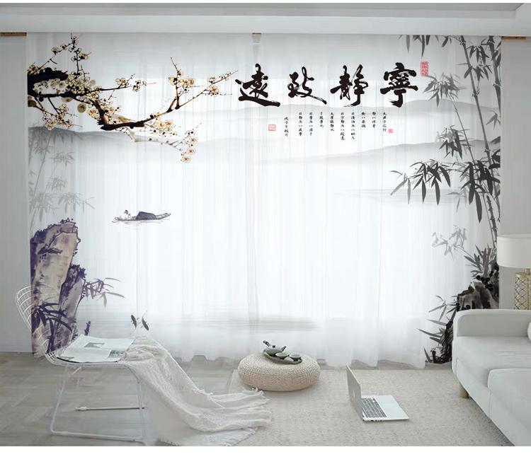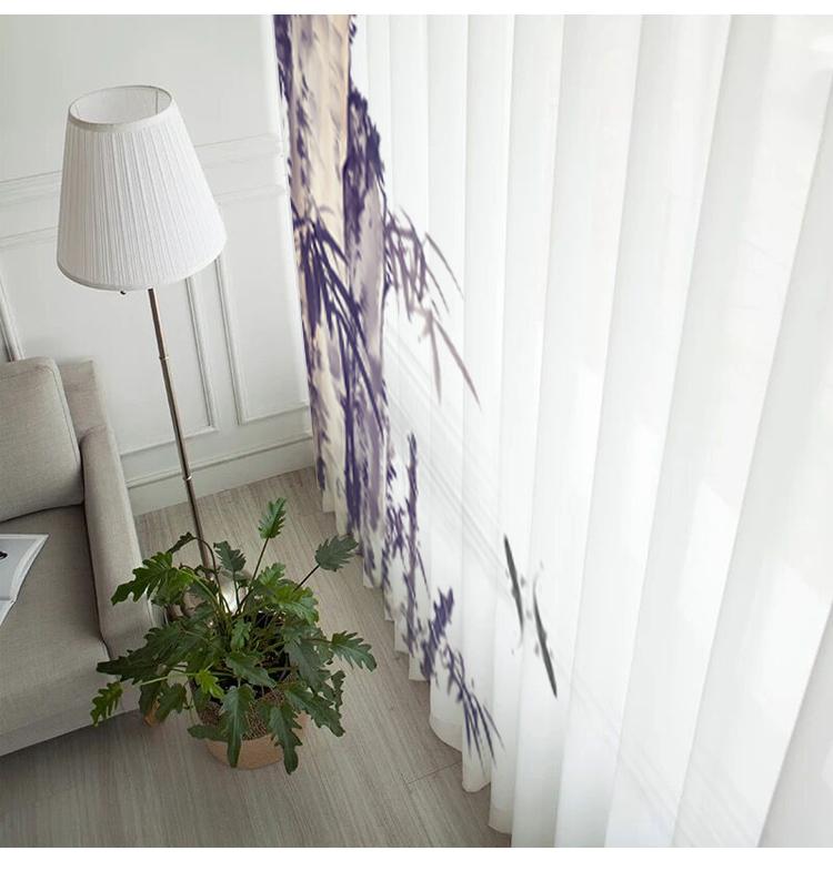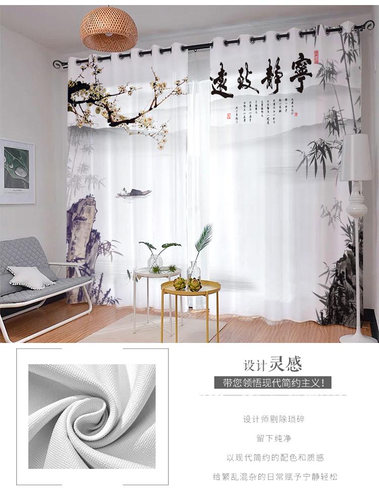 Cortina y Visillo Integrado de Doble Capa Blackout Estilo Nuevo Chino Simple Cortina Transparente para Sala de Estar, Dormitorio y Balcón Cortina Semicortavientos