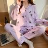 Compra Pijamas para Mujer Otoño y Primavera Nueva Colección Algodón Nube Manga Larga Pantalón Largo Solapa Lindo Dibujo Animado Femenino Dulce Ropa de Casa al por mayor en Joom.pro