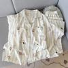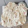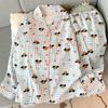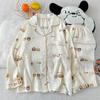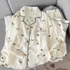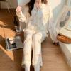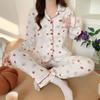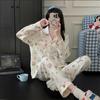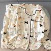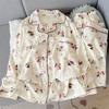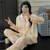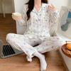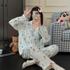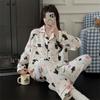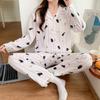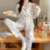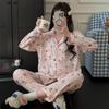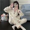 Pijamas para Mujer Otoño y Primavera Nueva Colección Algodón Nube Manga Larga Pantalón Largo Solapa Lindo Dibujo Animado Femenino Dulce Ropa de Casa
