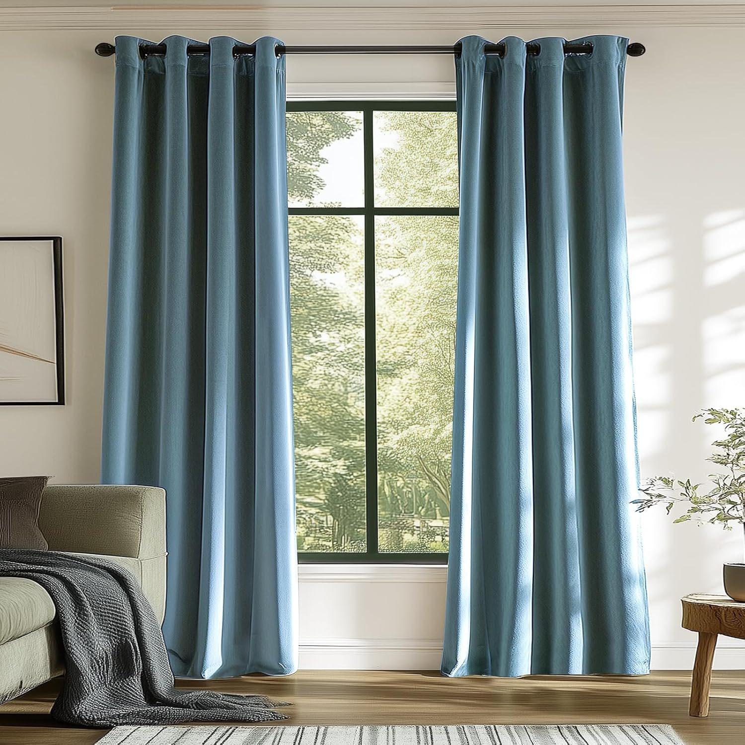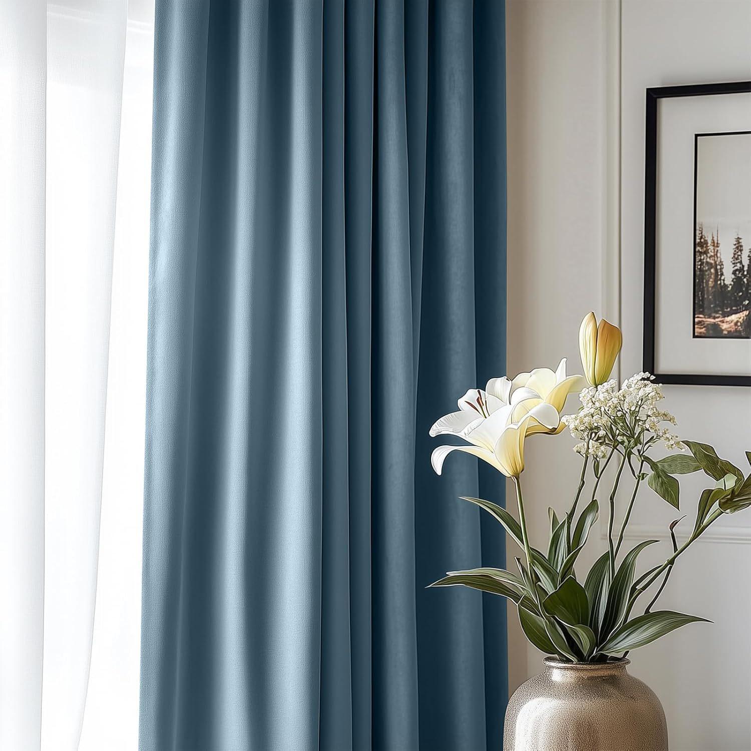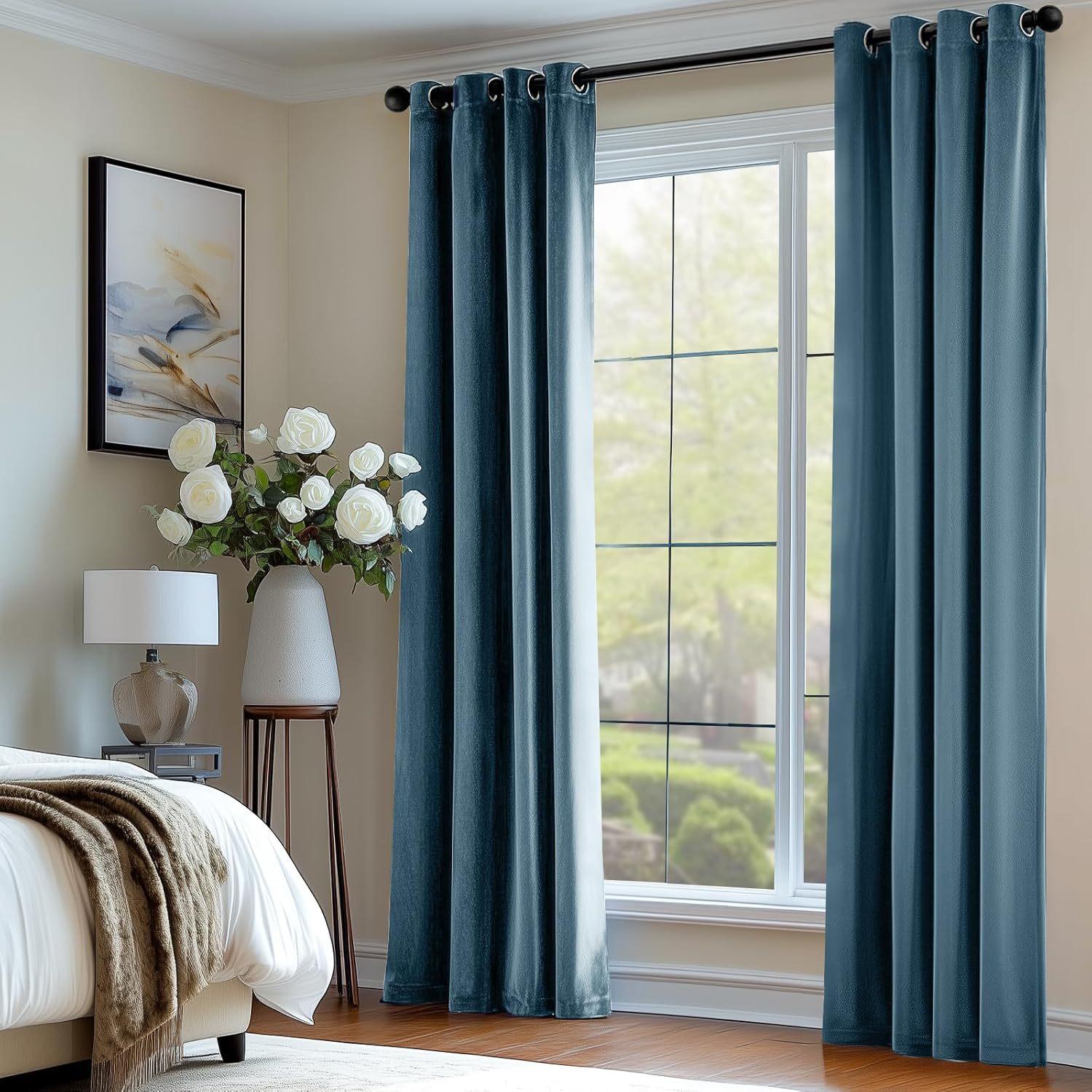 1 Pieza Cortina Perforada de Terciopelo Azul Grisáceo Sala de Estar Dormitorio Cortina Decorativa Barra Decorativa Personalizada Cortina