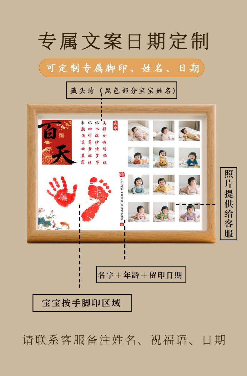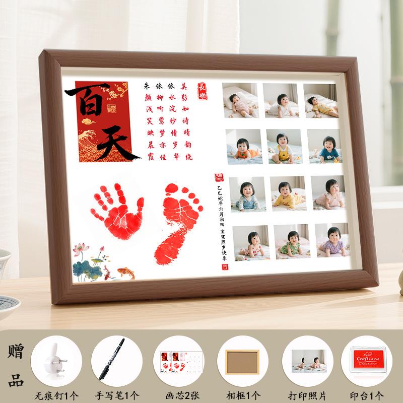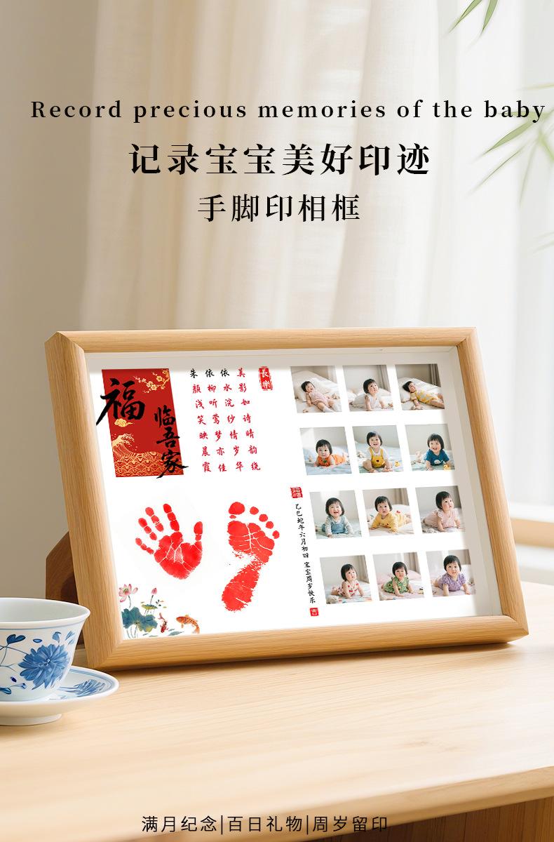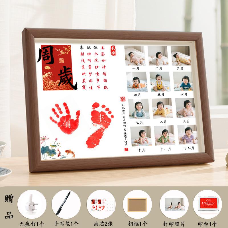 Pintura de Huellas de Manos y Pies del Primer Cumpleaños del Bebé Atmósfera de la Ceremonia de Luna Llena Accesorios Conmemorativos de los Cien Días Poema Acróstico del Bebé Recién Nacido Marco de Fotos