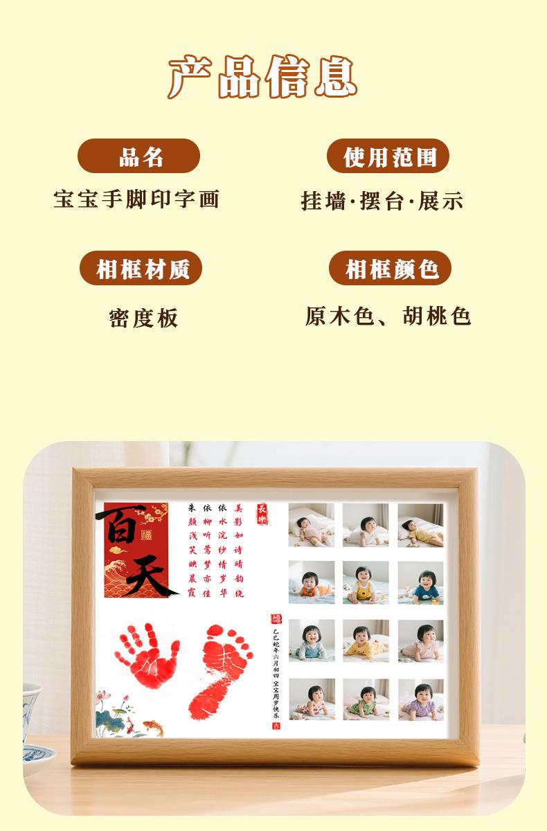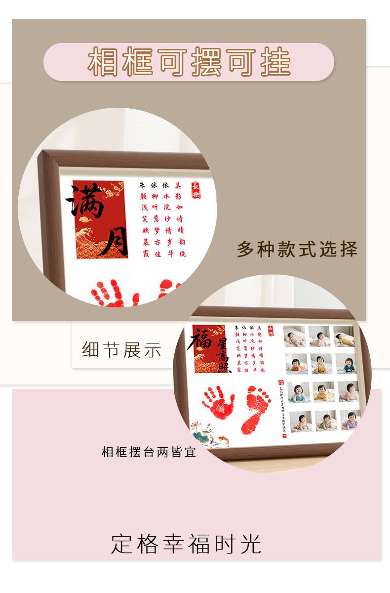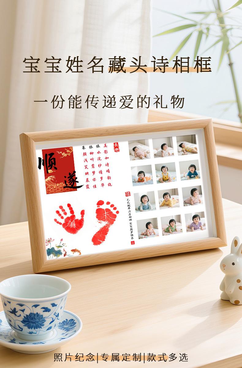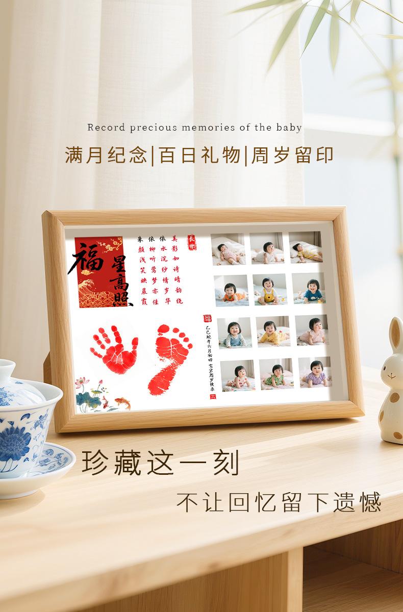 Pintura de Huellas de Manos y Pies del Primer Cumpleaños del Bebé Atmósfera de la Ceremonia de Luna Llena Accesorios Conmemorativos de los Cien Días Poema Acróstico del Bebé Recién Nacido Marco de Fotos