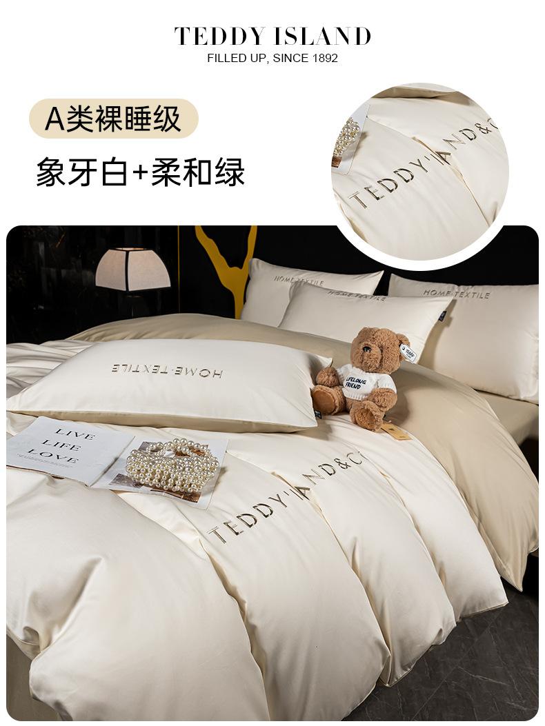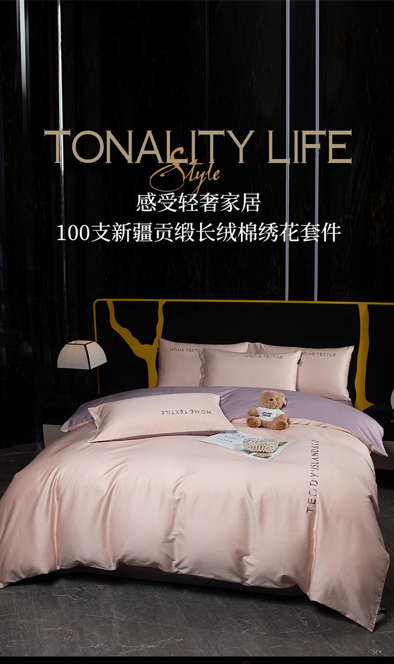 juego de cuatro piezasSet de cuatro piezas con un toque de lujo ligero y de alta gamaJuego de cuatro piezas todo algodón clase AFunda nórdica funda de edredón sábana de algodón puro