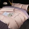 Juego de cuatro piezas de satén de clase A de 100 hilos de funda de edredón de algodón bordado, funda de edredón de algodón de fibra larga para las cuatro estaciones, juego de cuatro piezas de sábanas para cama