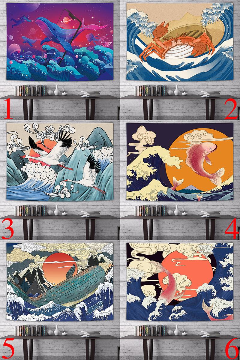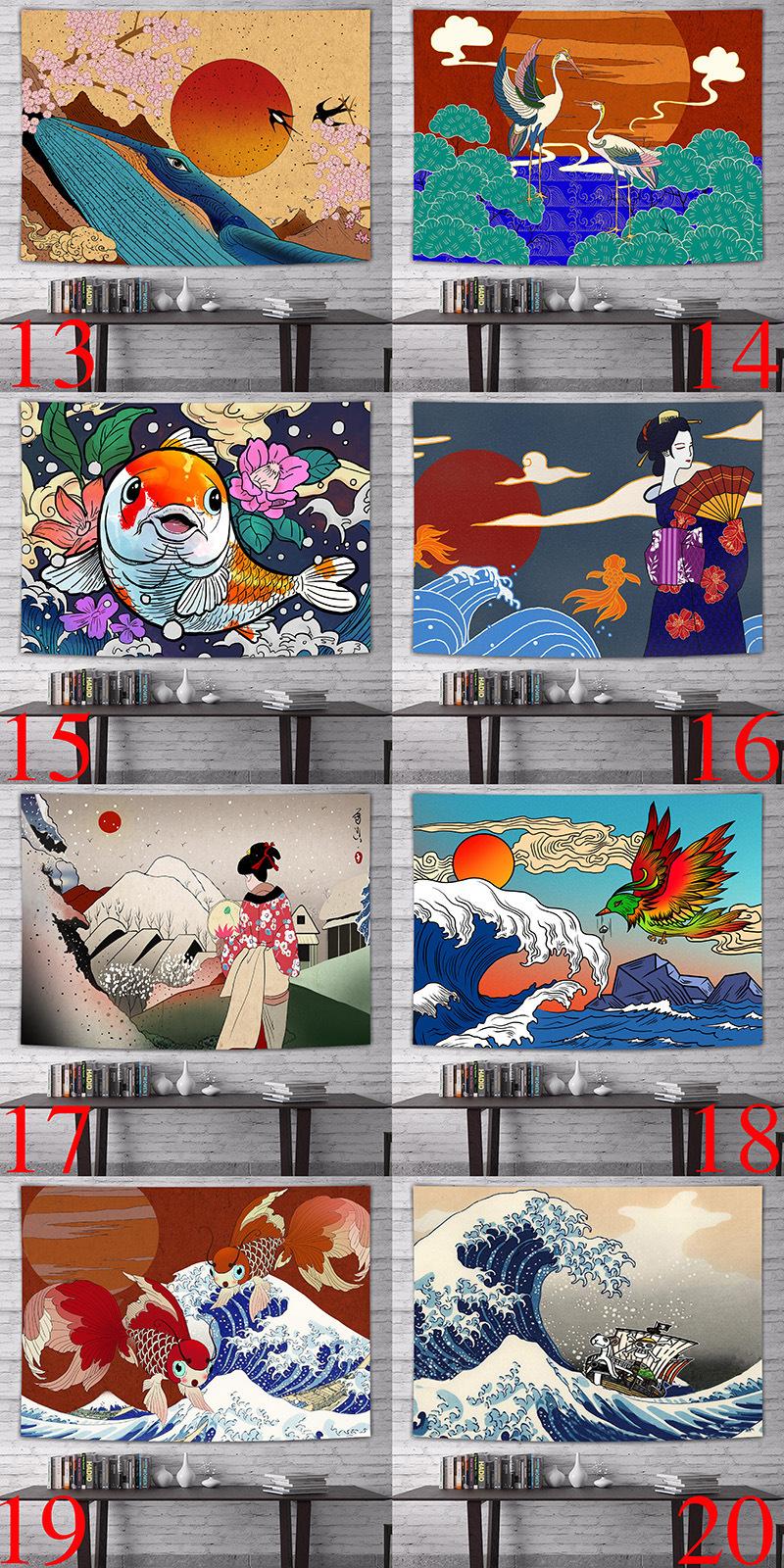 Paño de Fondo de Moda Ins Ukiyo-E Tapiz de Pared Habitación Dormitorio Decoración Japonesa Pared de Fondo Cabecero Colgante