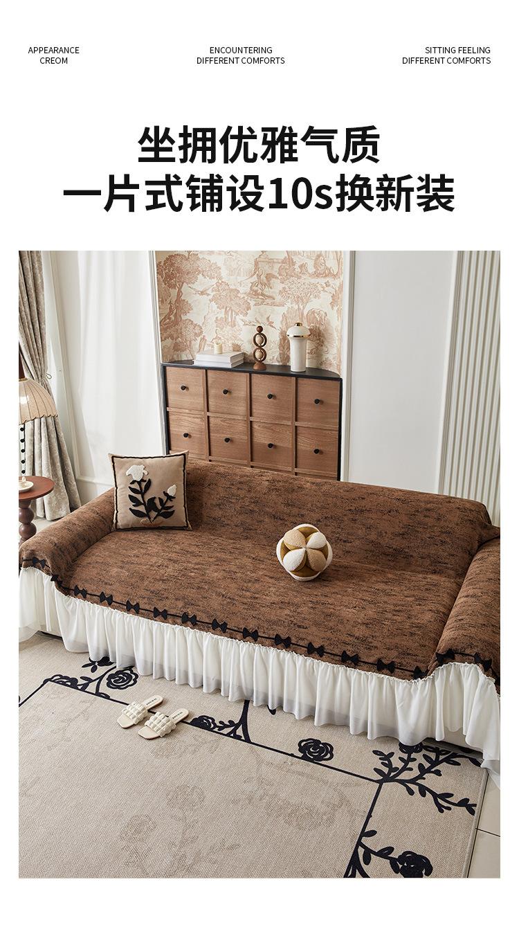 Cubierta de Sofá Retro con Volantes Franceses Verano 2025 Nuevo Cojín de Sofá Toalla de Sofá Universal para Cuatro Estaciones Cubierta Completa de Alta Gama