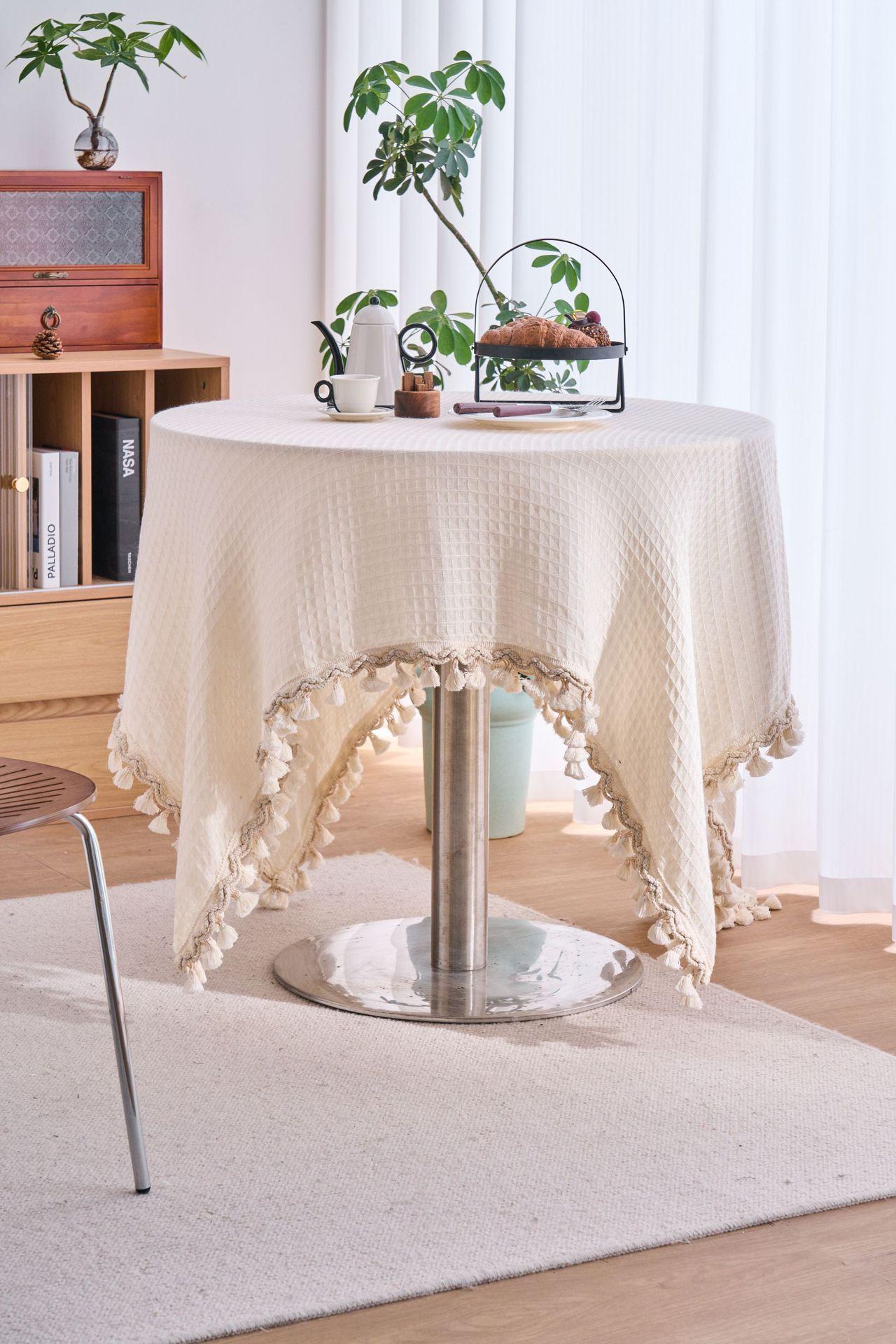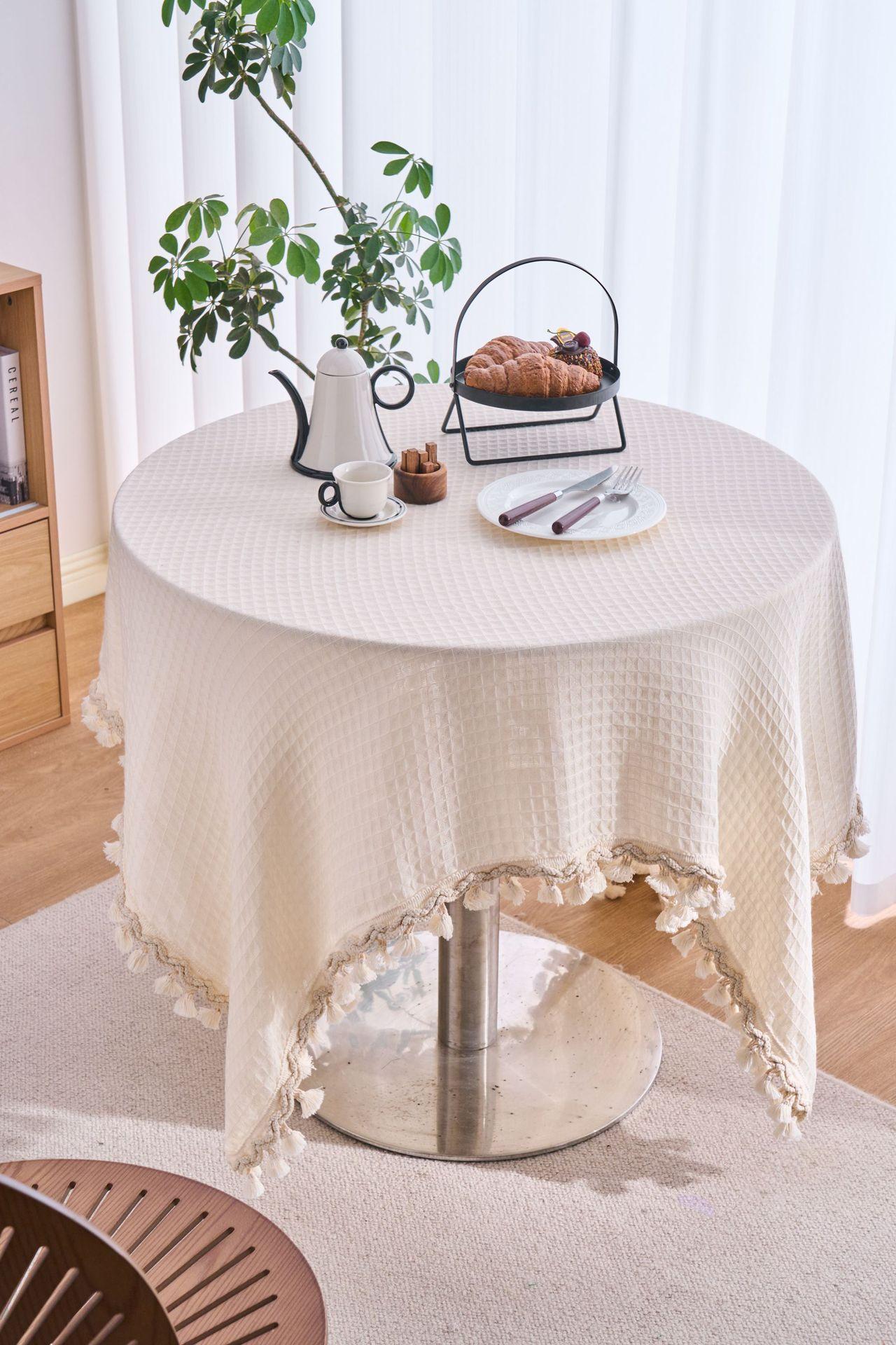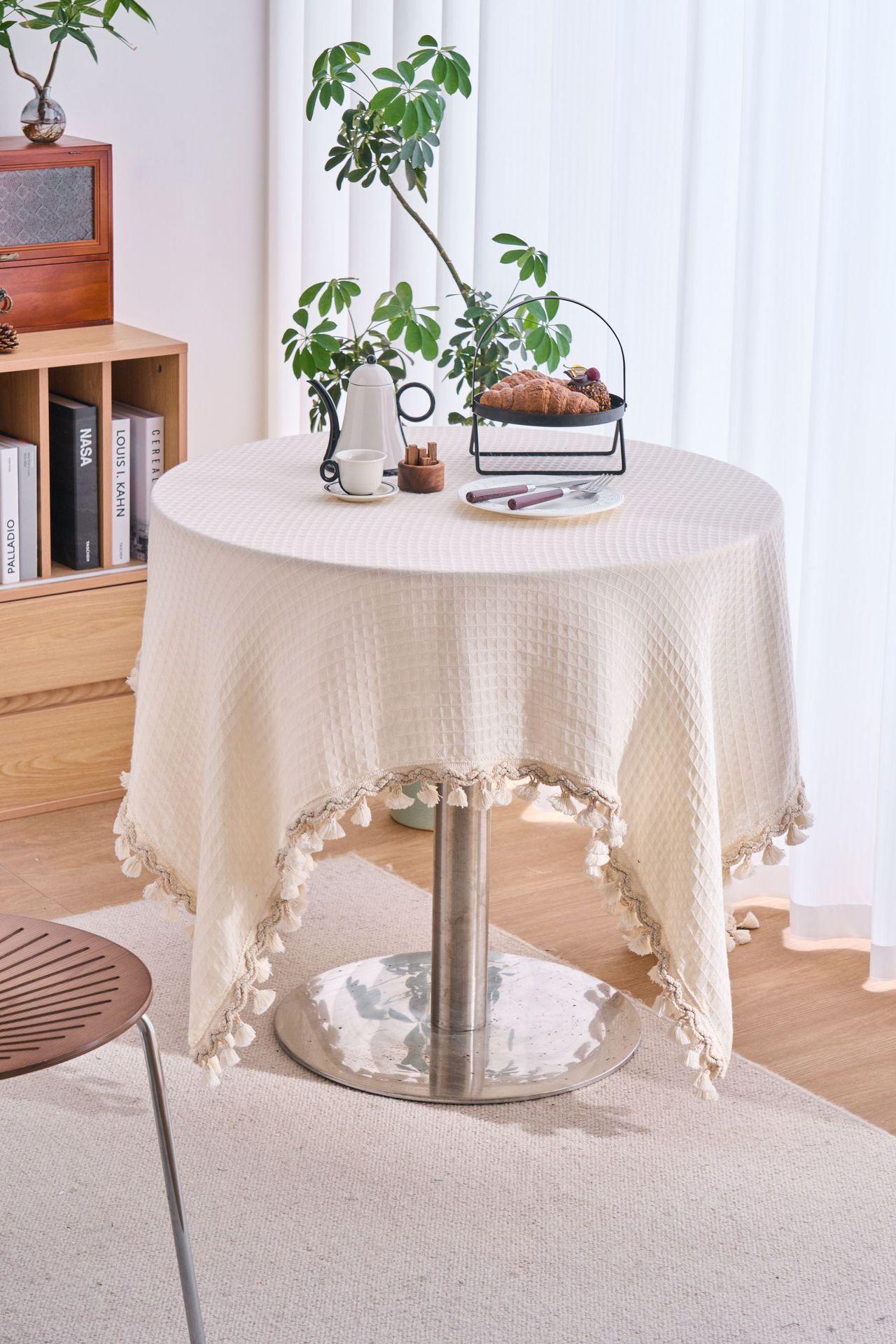 Imanki Yun Mantel Estilo Americano Tejido Waffle Blanco Roto Mantel Grueso Color Sólido Directo de Fábrica