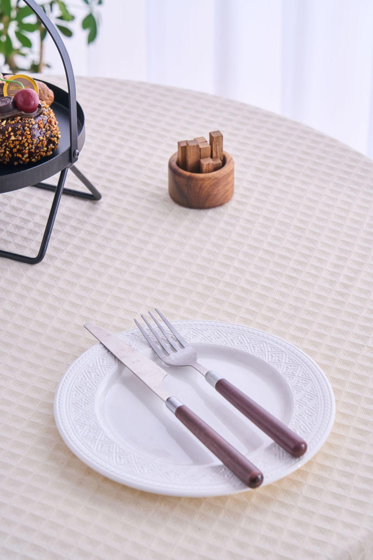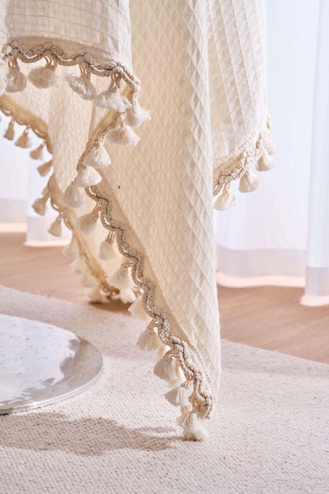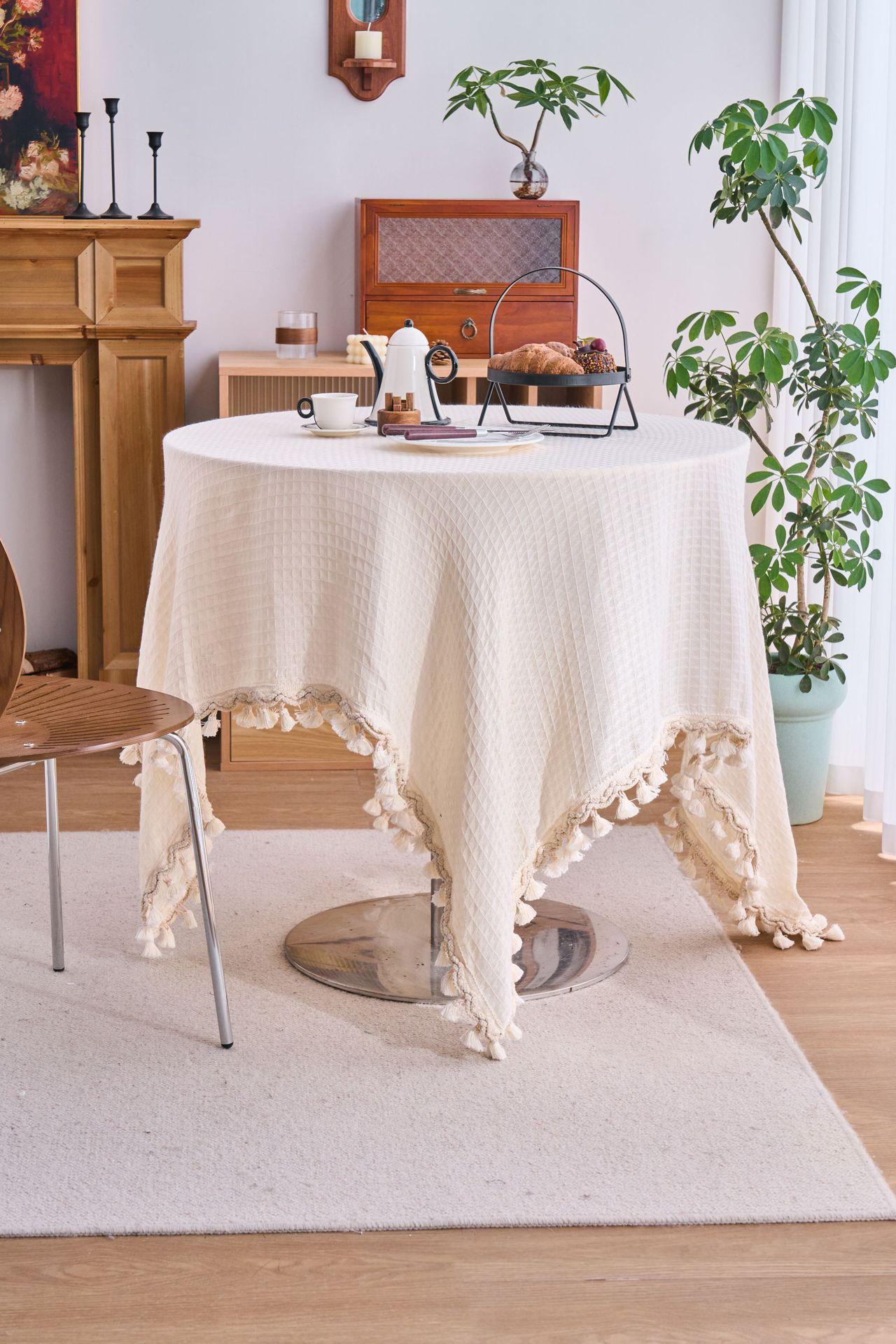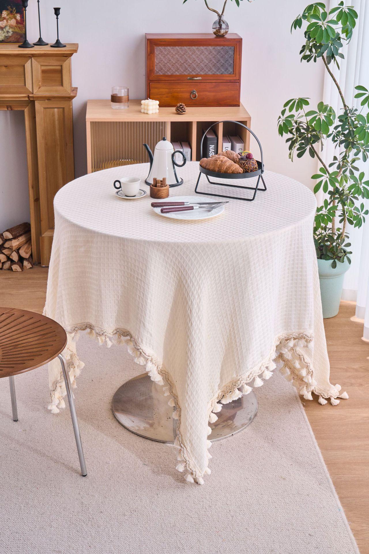 Imanki Yun Mantel Estilo Americano Tejido Waffle Blanco Roto Mantel Grueso Color Sólido Directo de Fábrica