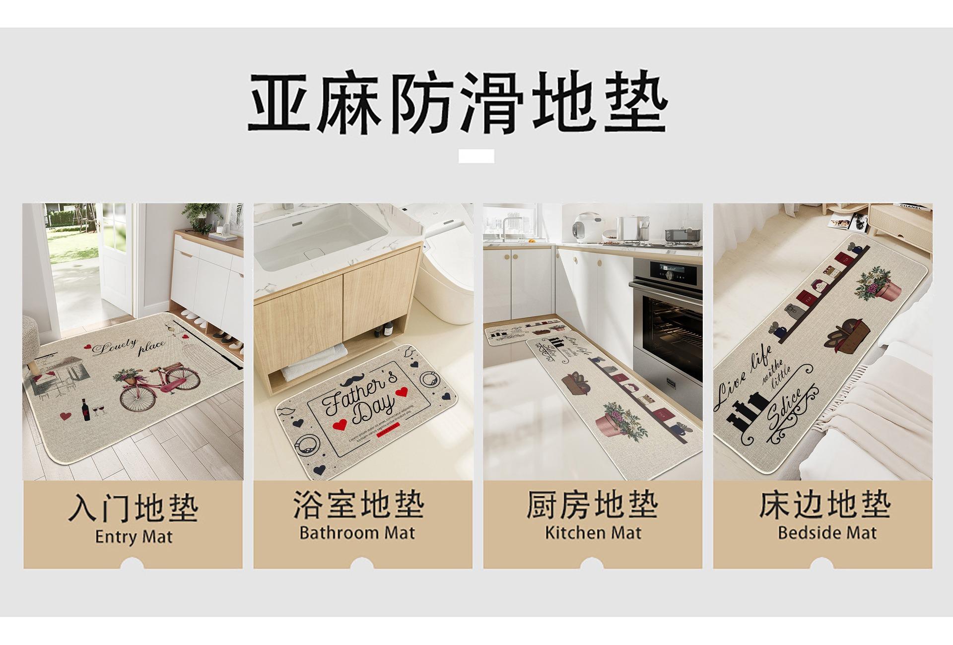 Alfombra de Cocina de Lino Dropshipping Transfronterizo Absorbente Antideslizante para Hogar Personalizable Sala de Estar Entrada Alfombra para Puerta Alfombra de Piso para Baño
