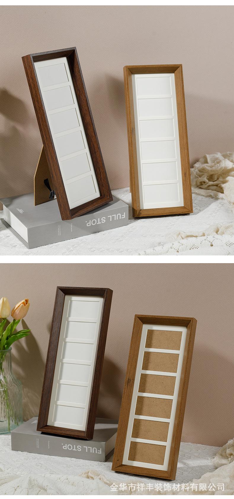 Marco de fotos color nogal seis huecos RMB mesa marco de fotos decorativo de madera largo adornos color madera fabricantes mayoreo