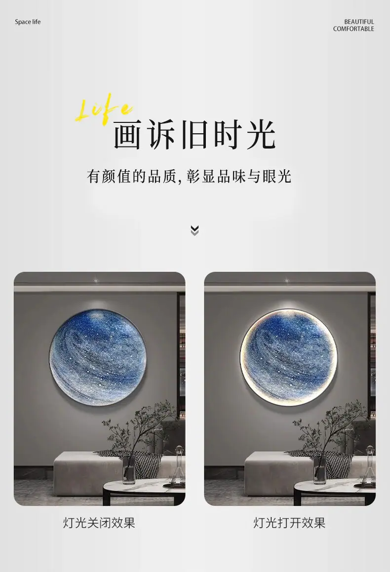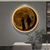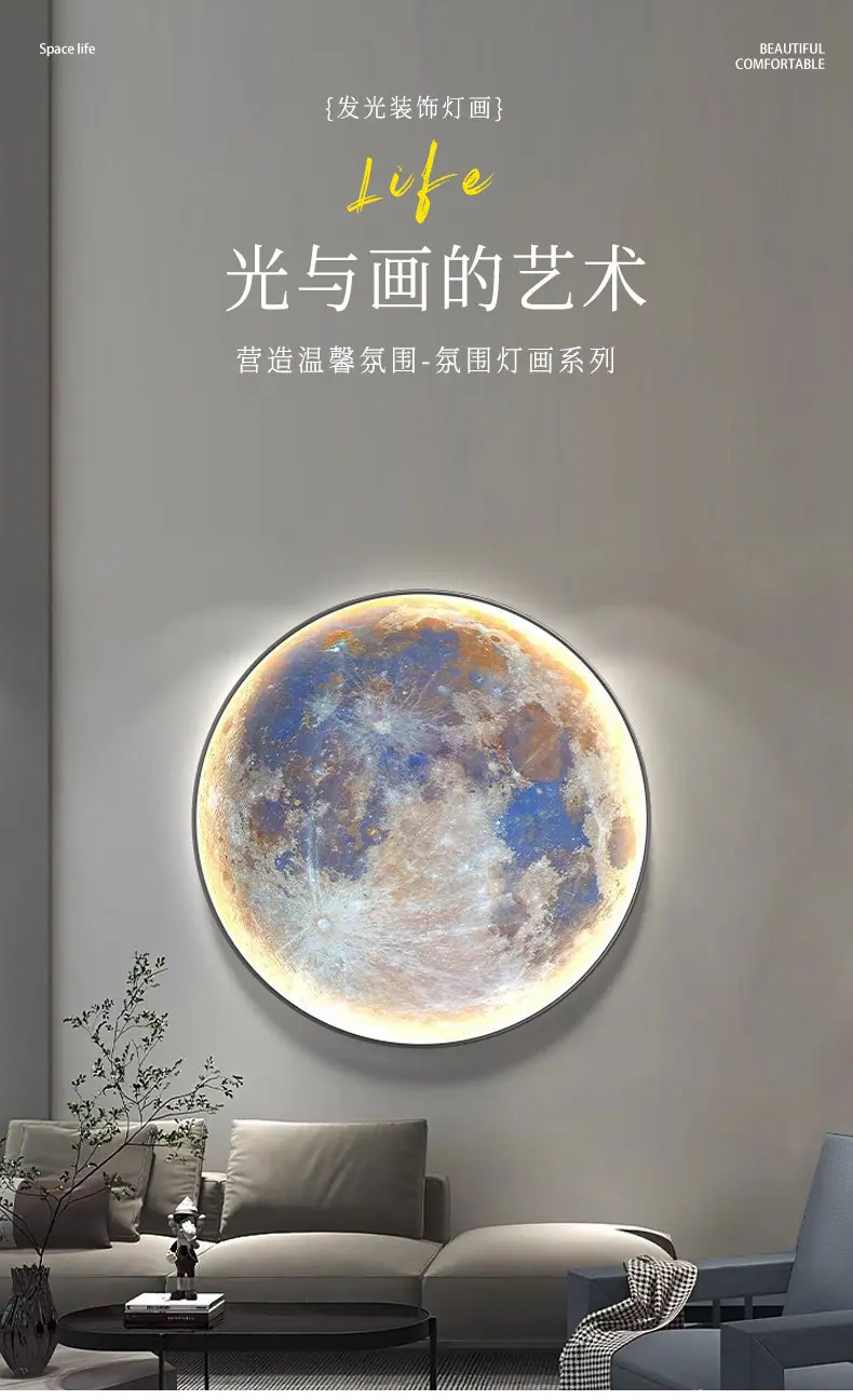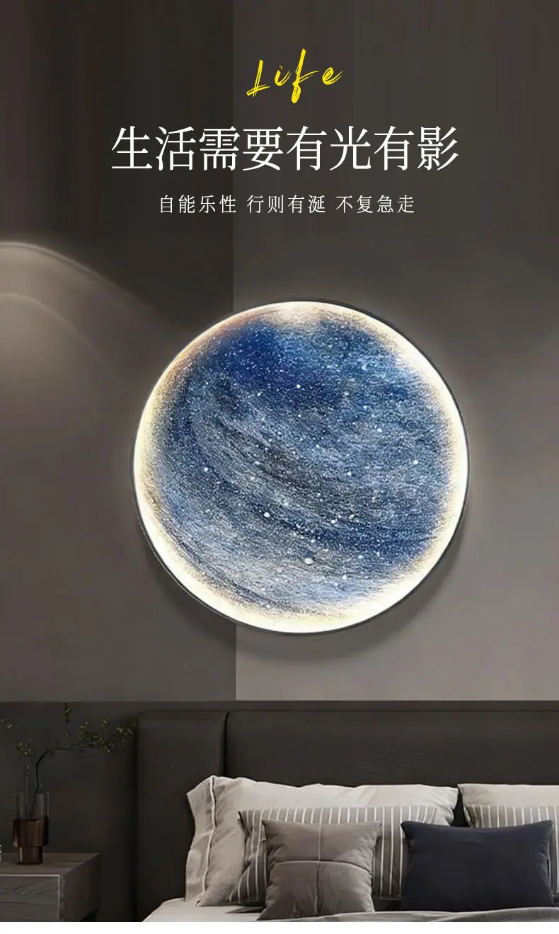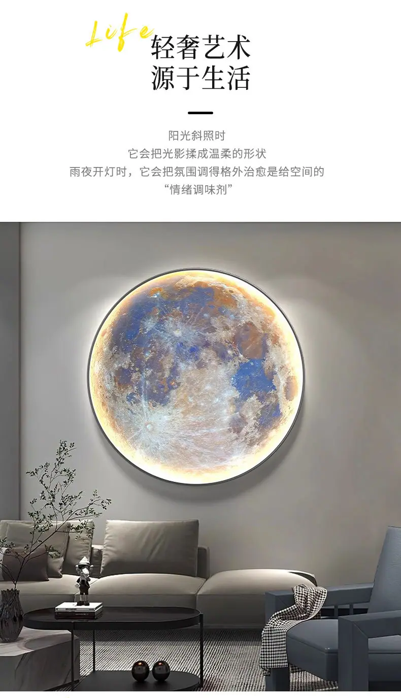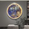 Pintura Decorativa Redonda Moderna de Lujo Ligero Luna Planeta Entrada Dormitorio Sala de Estar Sofá Pared de Fondo Mural con Luz LED