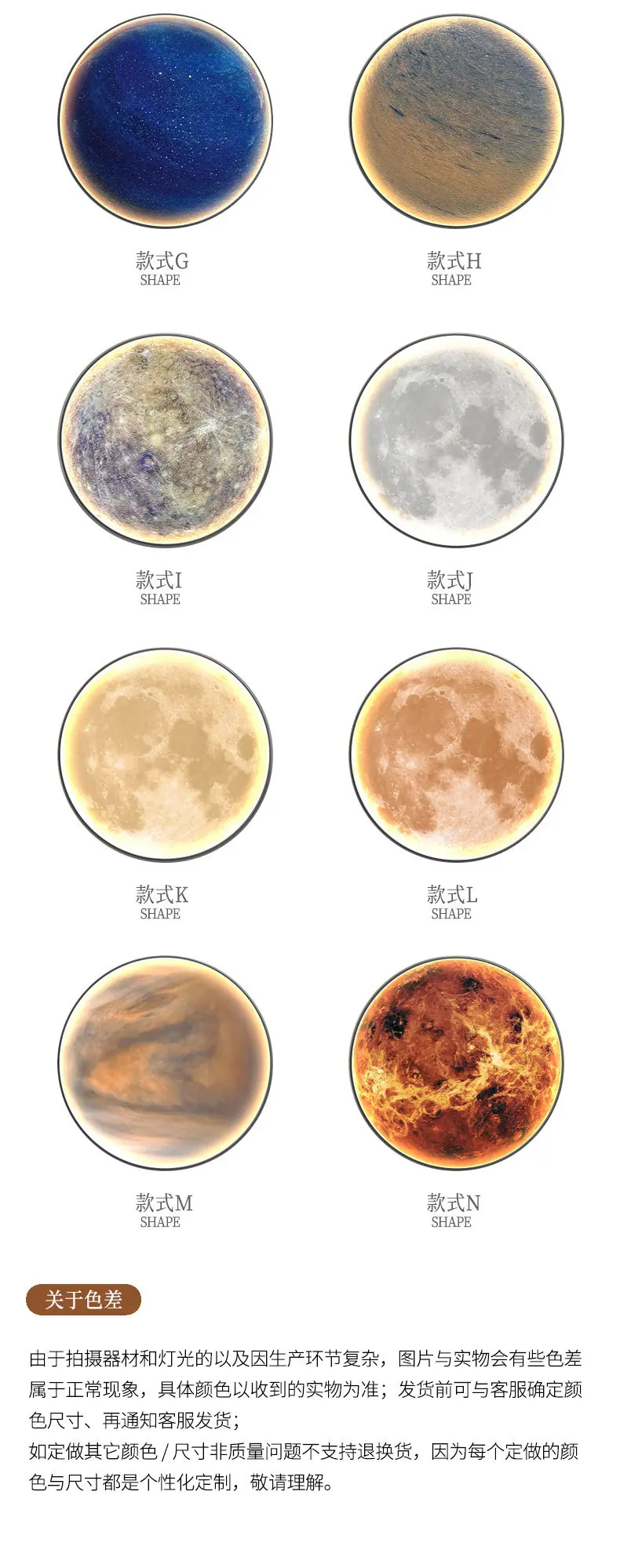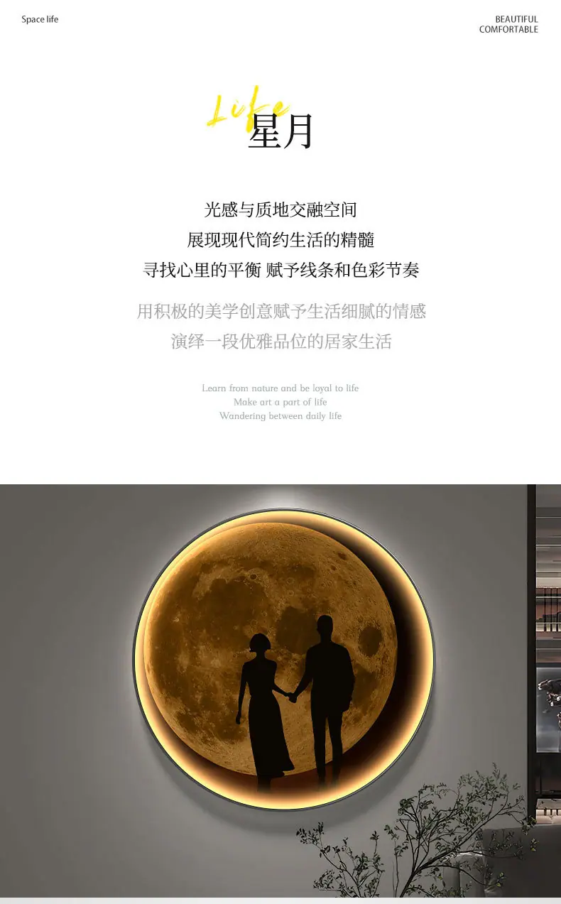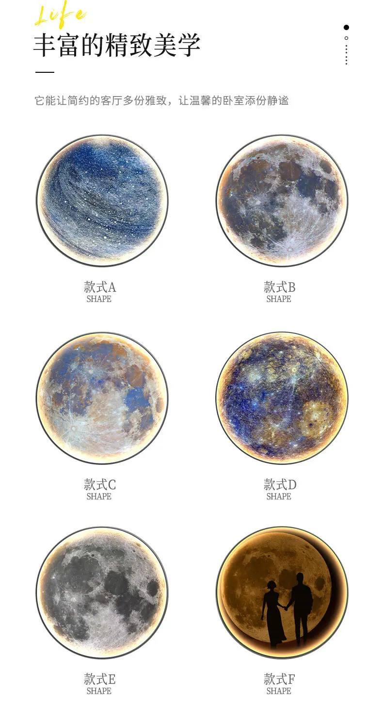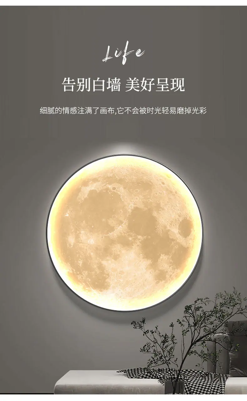 Pintura Decorativa Redonda Moderna de Lujo Ligero Luna Planeta Entrada Dormitorio Sala de Estar Sofá Pared de Fondo Mural con Luz LED
