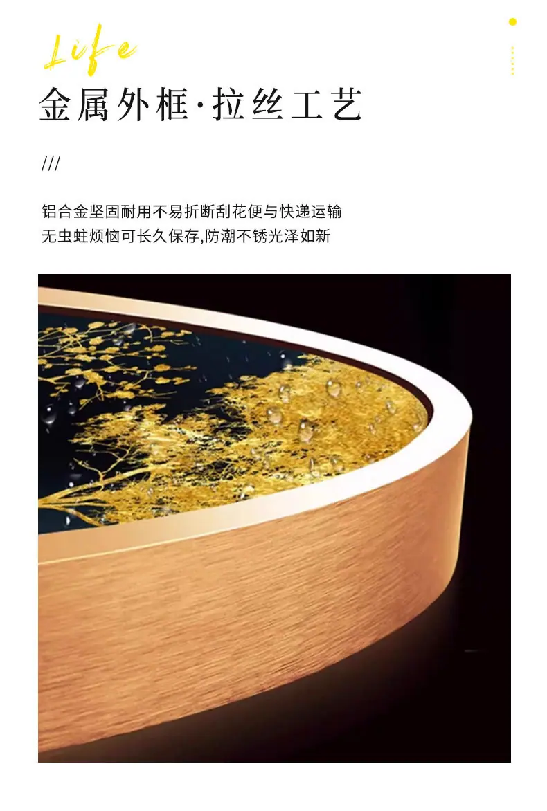 Diameter 50cm LED Light Painting/Plug-in Remote Control Type [Aluminum Alloy Gold Frame + Crystal Porcelain Surface]