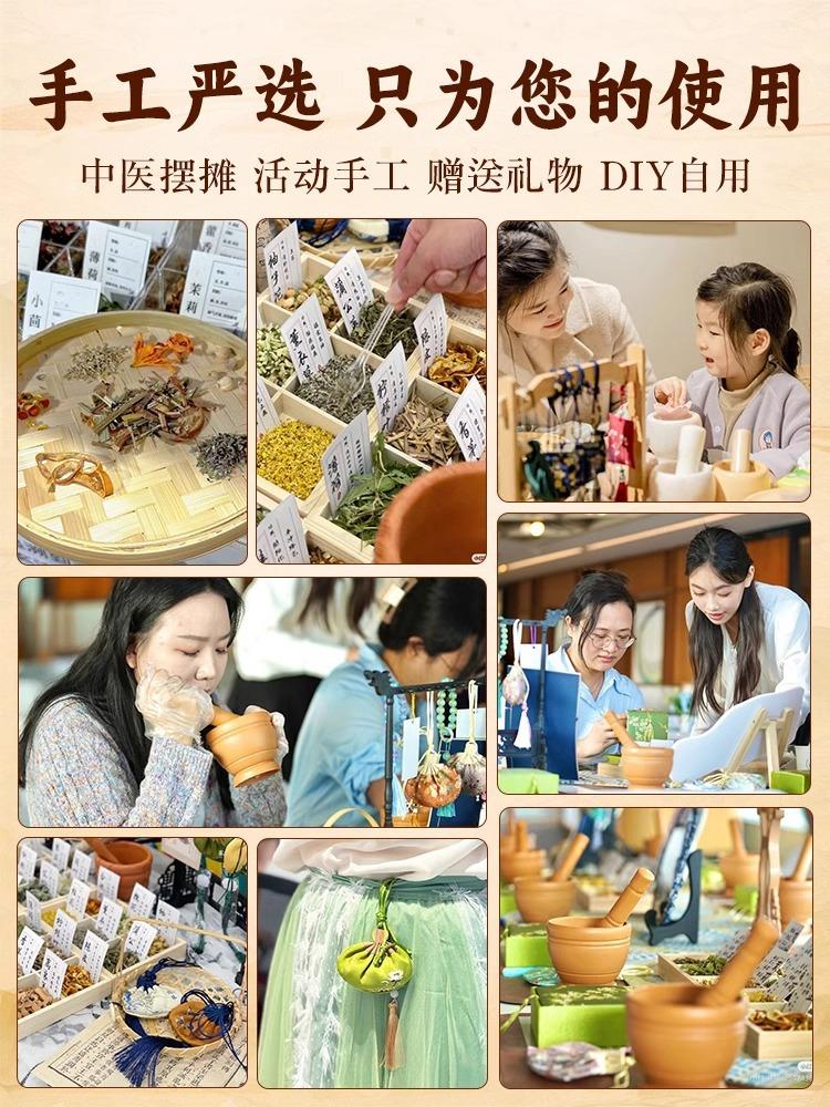 Relleno de saquito del Festival del Bote del Dragón con materias primas herbales como artemisa, hojas de artemisa y lavanda para actividades de saquitos hechos a mano DIY