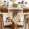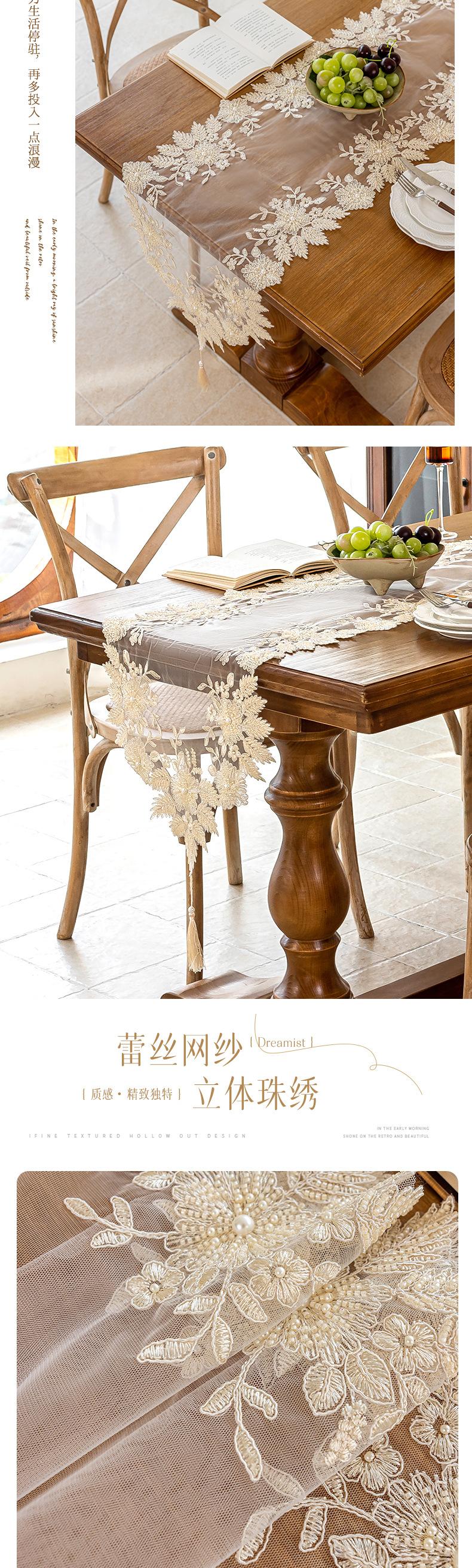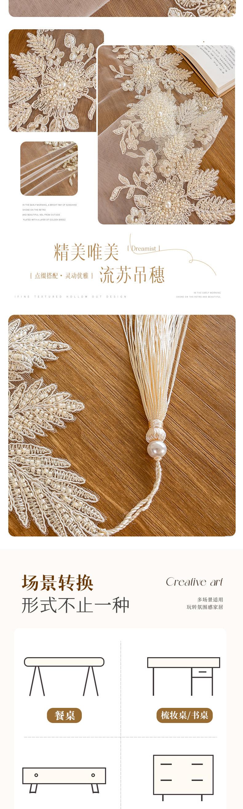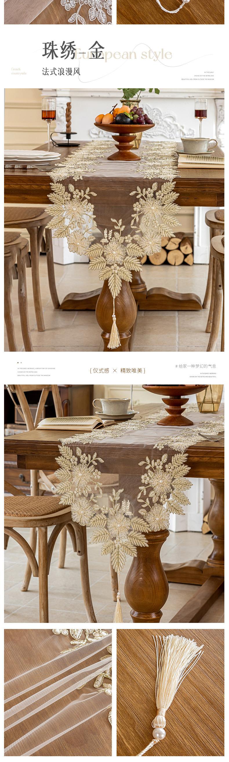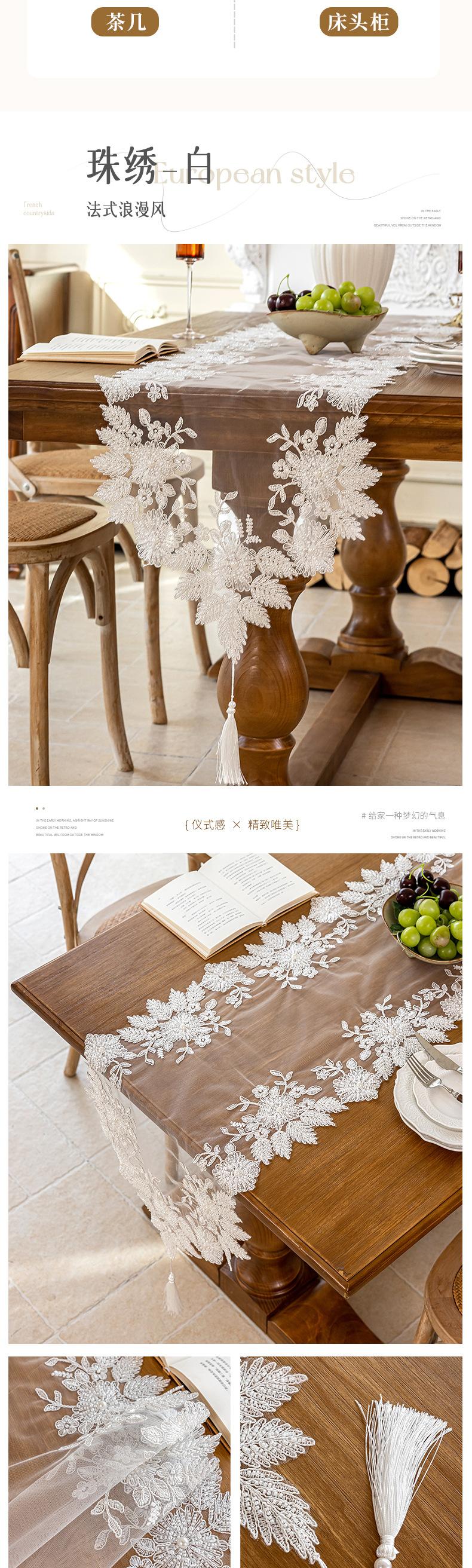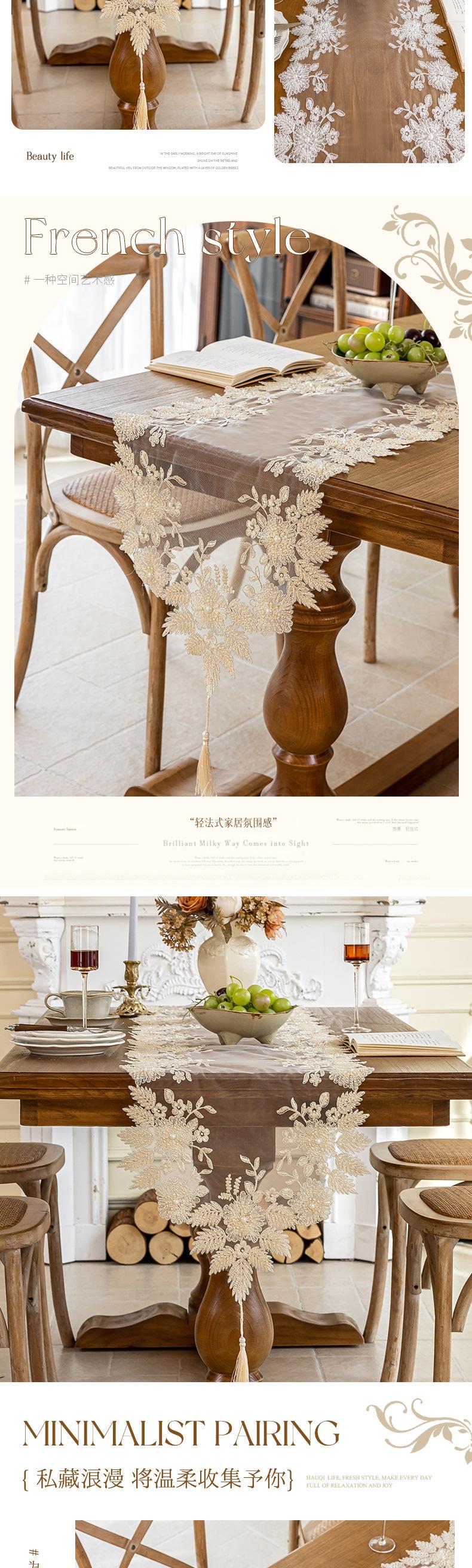 Mantel de Mesa Hueco de Tela Estilo Europeo Encaje Bordado Perla Mantel Individual Tela Larga Decoración Mantel de Mesa para el Hogar Venta al por Mayor Transfronteriza