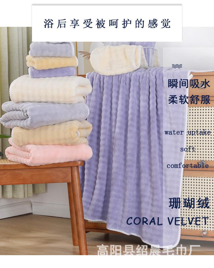 Toalla Gaoyang al por mayor Suave Absorbente Burbuja Terciopelo Extra Gruesa Toalla de Baño Toalla Facial Toalla de Baño Terciopelo Coral Gorro de Baño