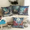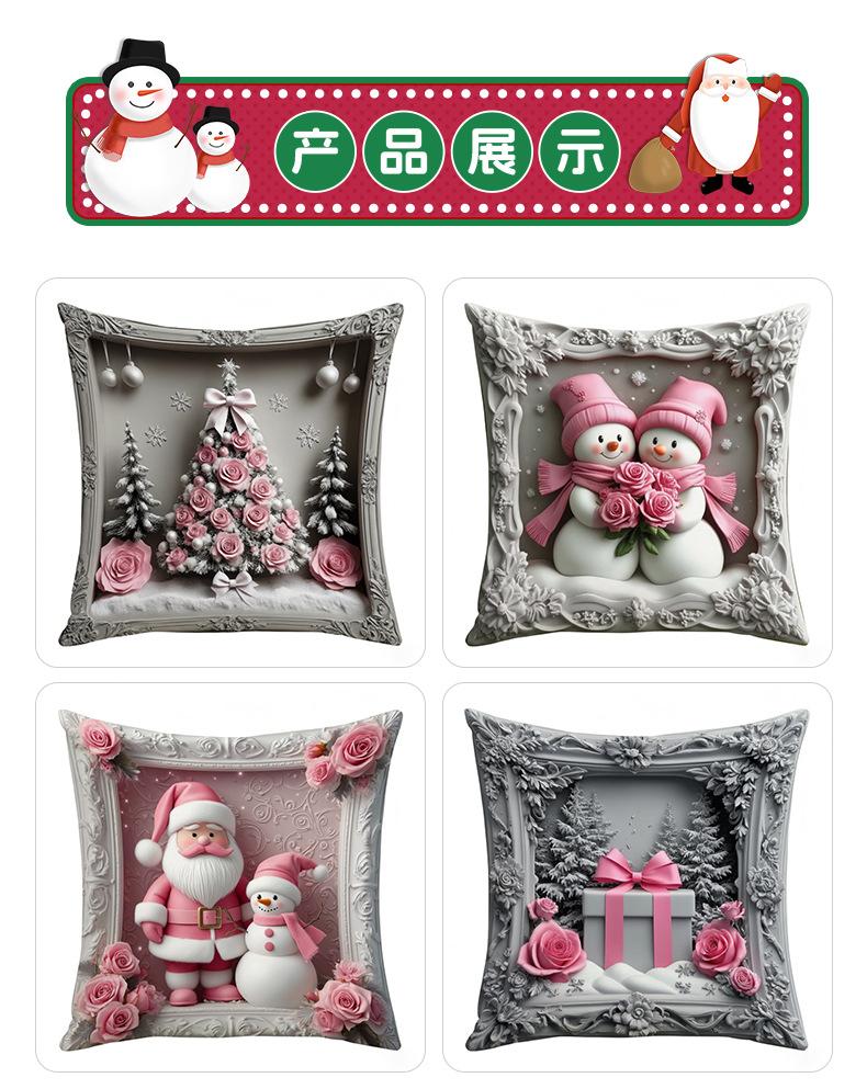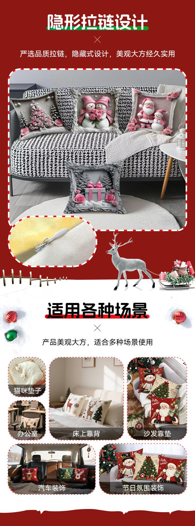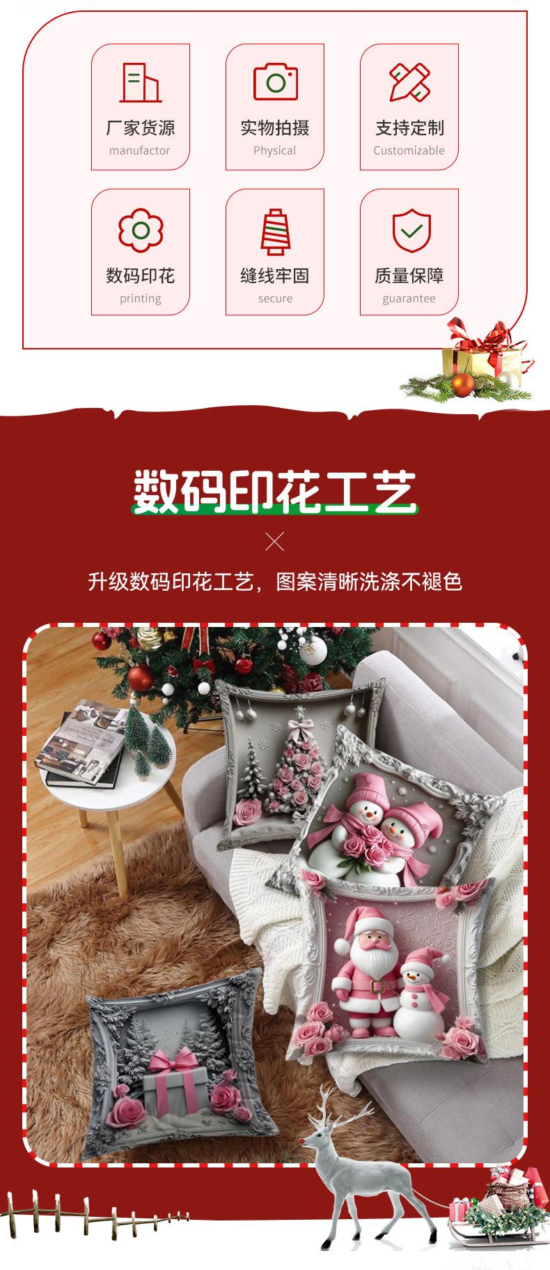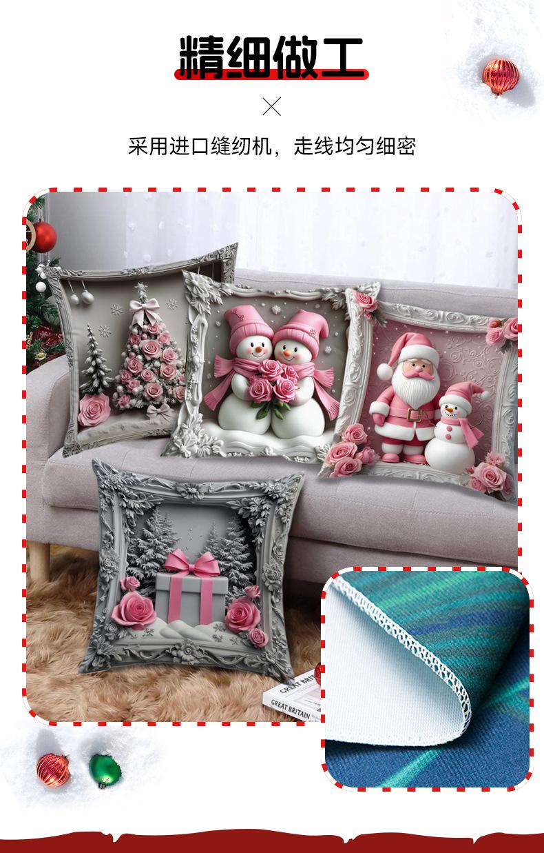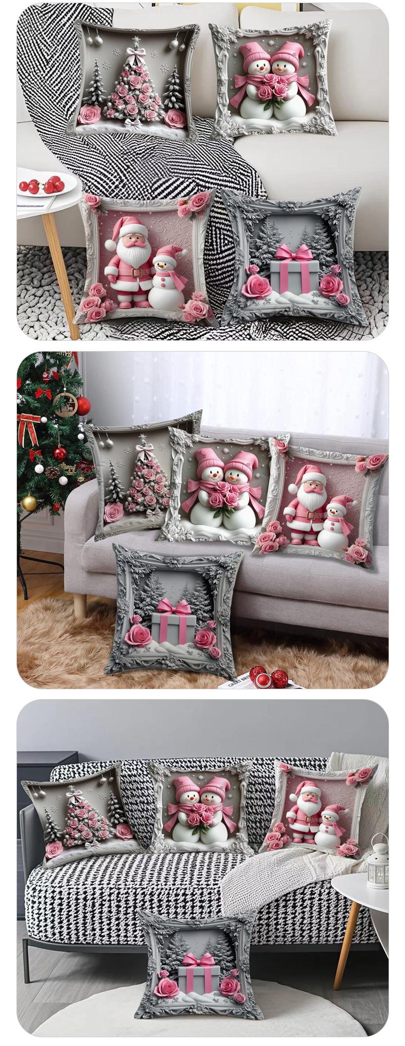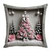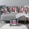 Nueva Funda de Almohada Rosa Navideña Decoración de Ambiente Lino Estampado Hogar Sofá Dormitorio Almohada Lumbar Cojín Almohada