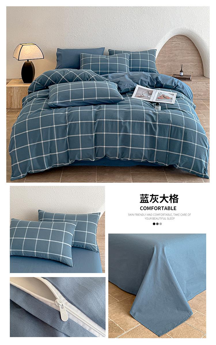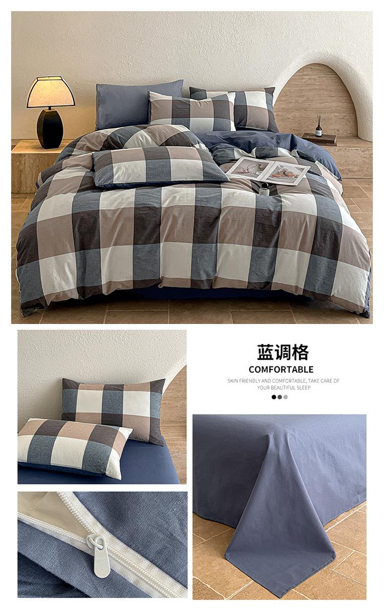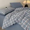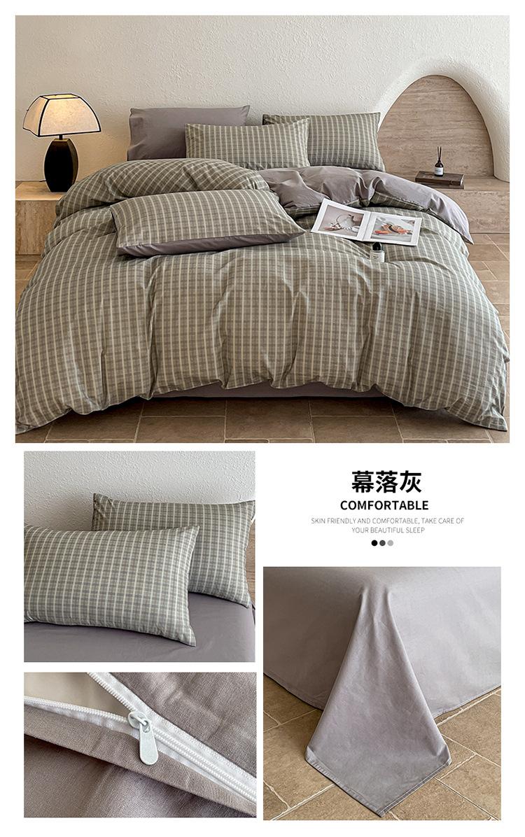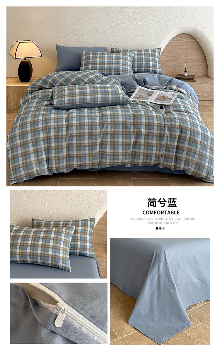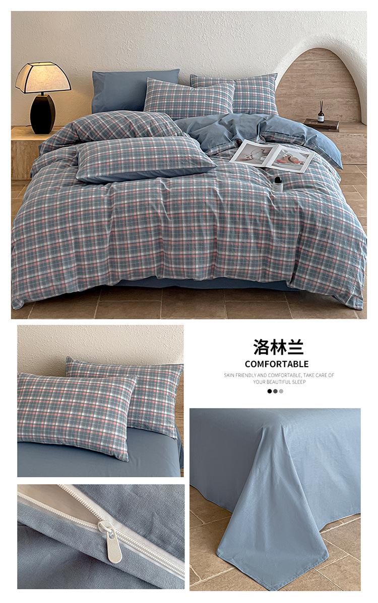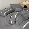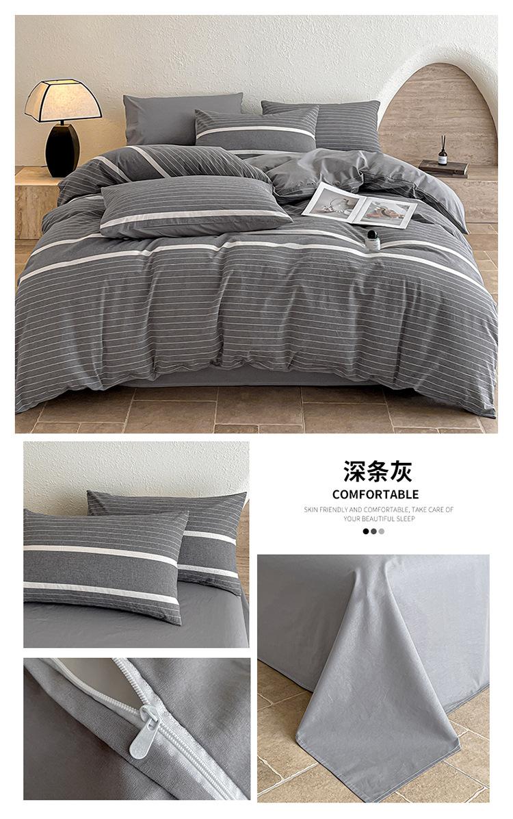 Juego de Cuatro Piezas de Algodón Puro Algodón Lavado Estampado Simple Edredón de Algodón Puro Juego de Tres Piezas para Dormitorio de Estudiantes Cama 4 Sábanas Funda de Edredón Rayas