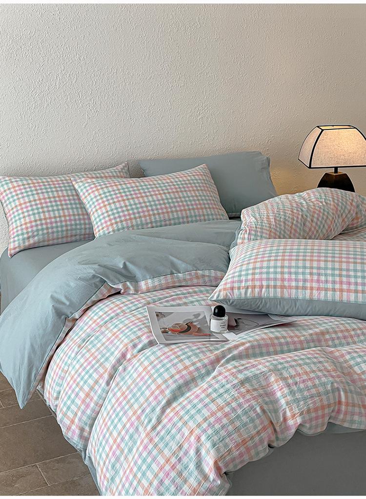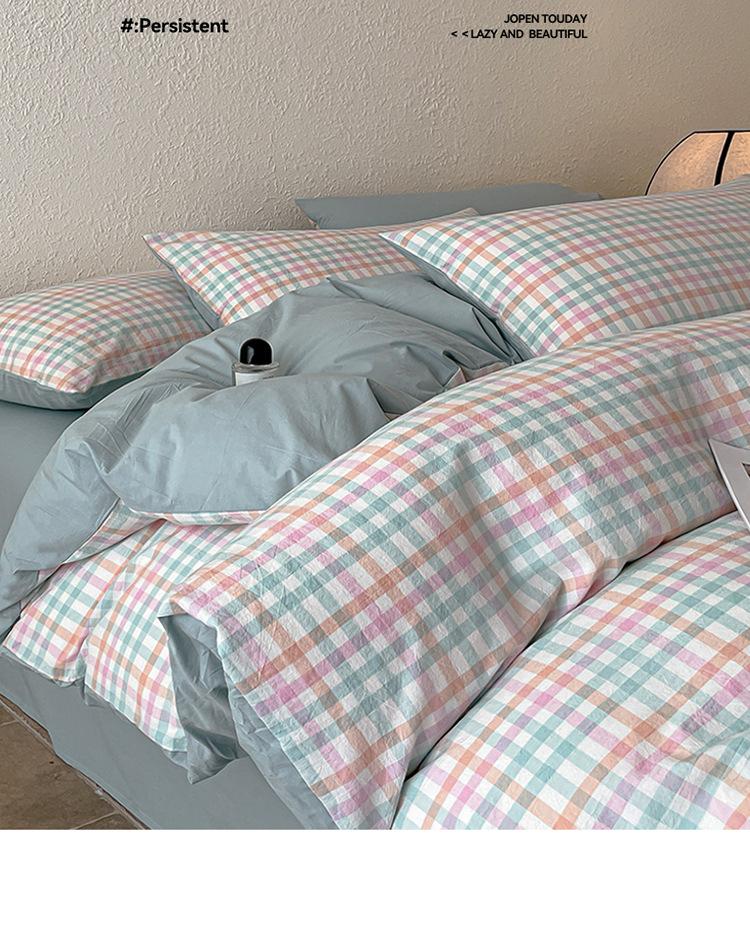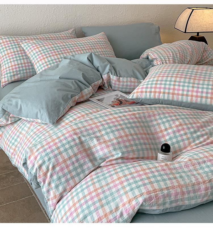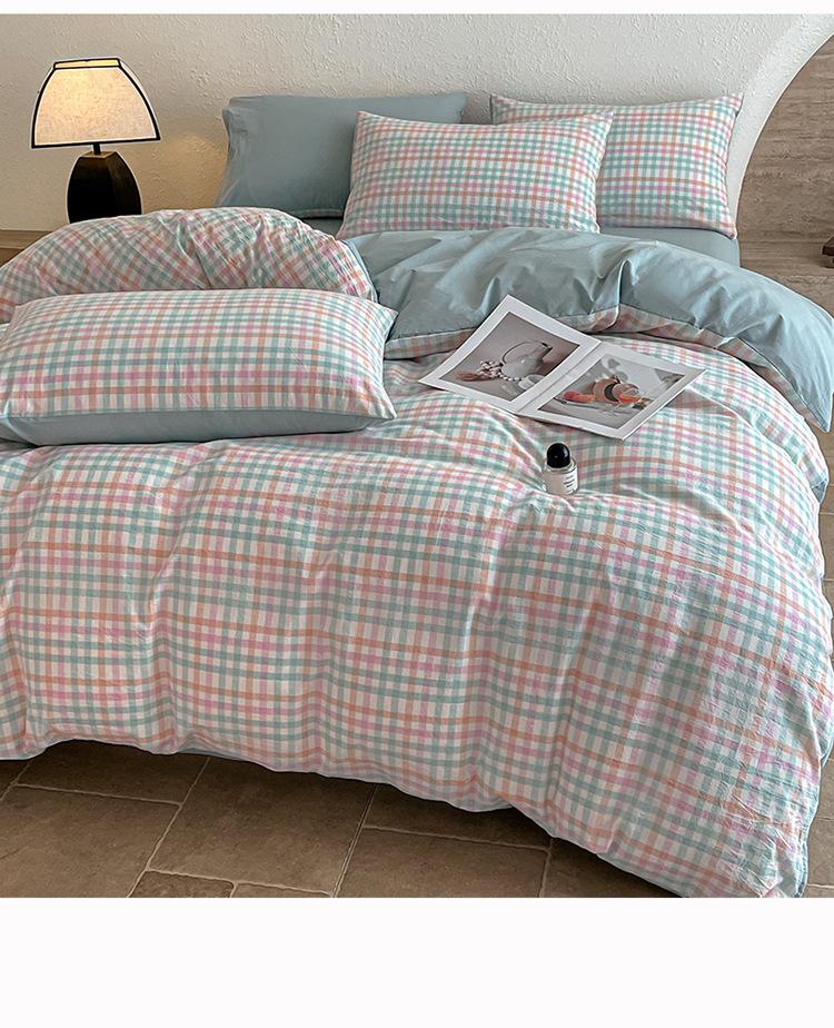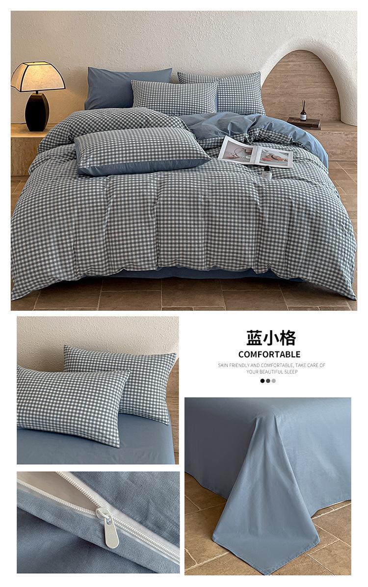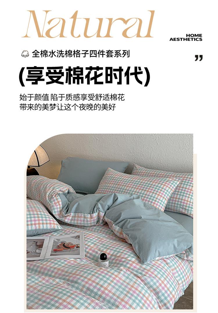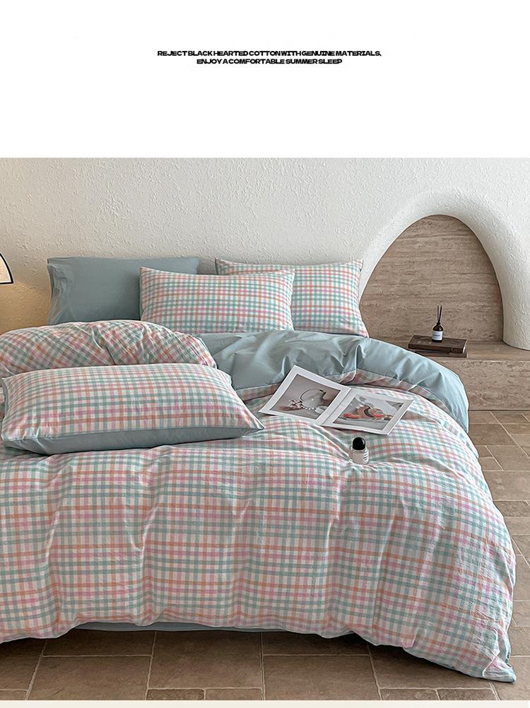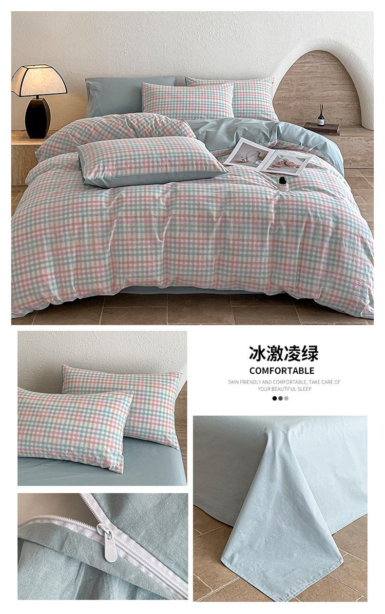 Juego de Cuatro Piezas de Algodón Puro Algodón Lavado Estampado Simple Edredón de Algodón Puro Juego de Tres Piezas para Dormitorio de Estudiantes Cama 4 Sábanas Funda de Edredón Rayas