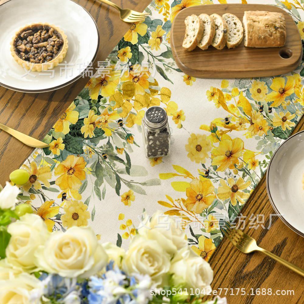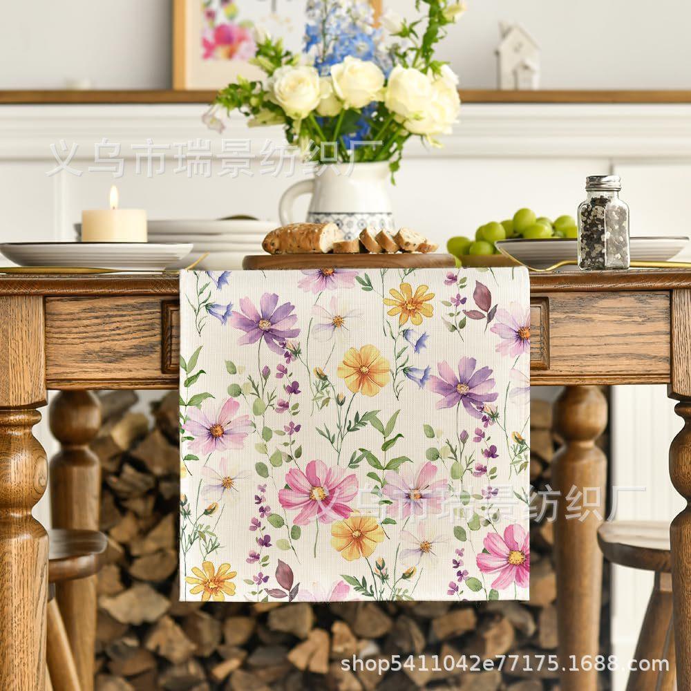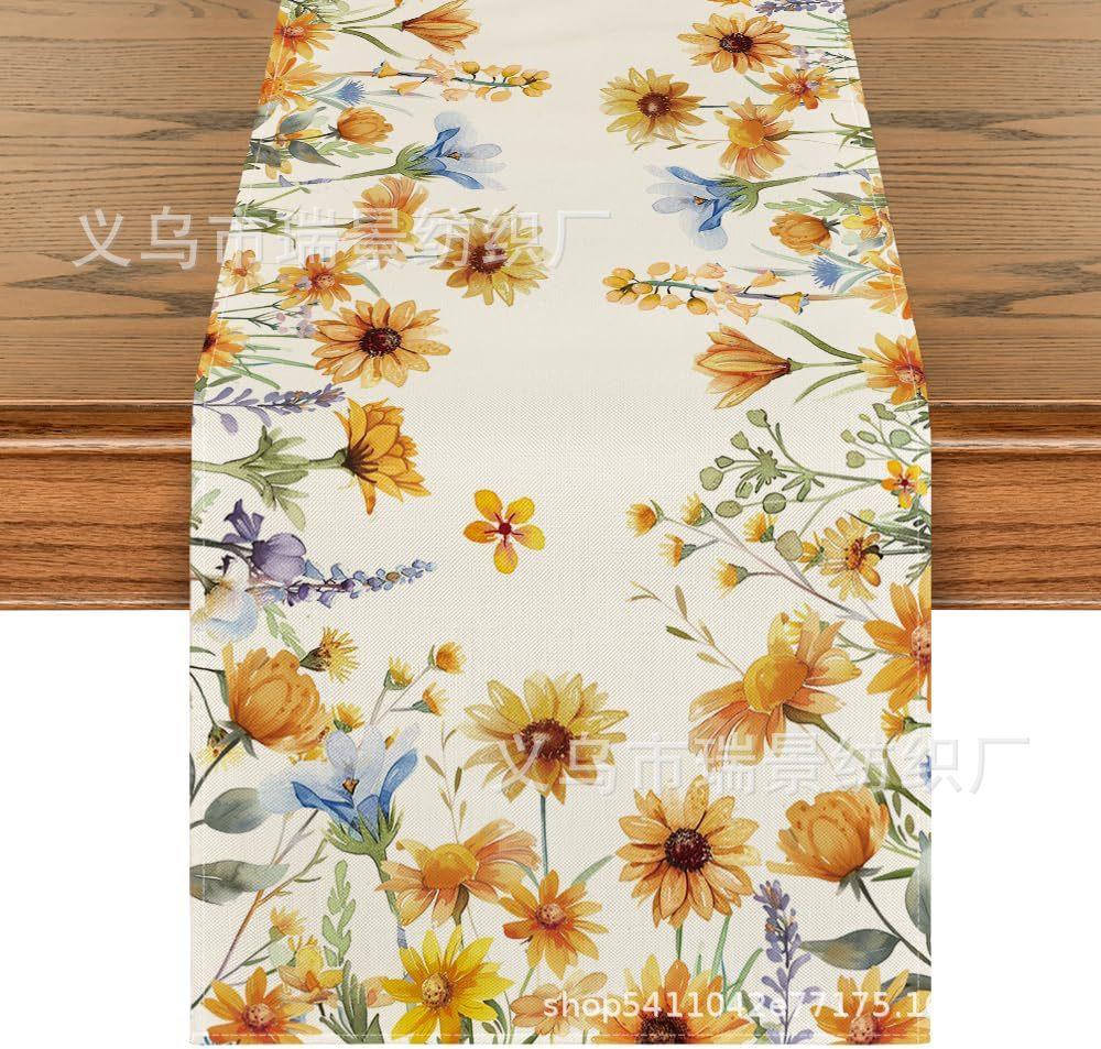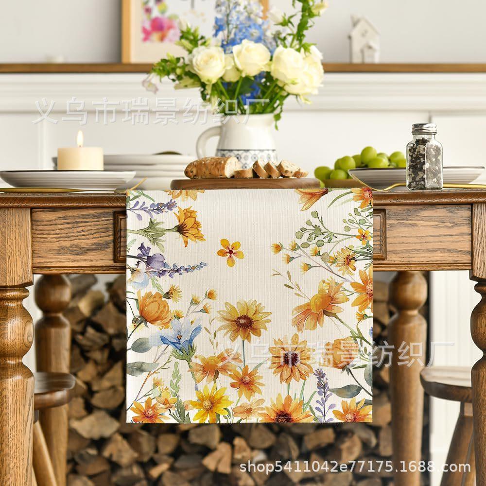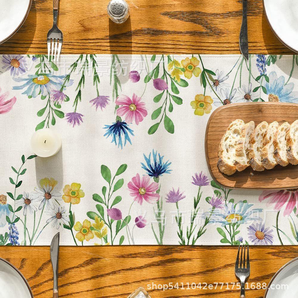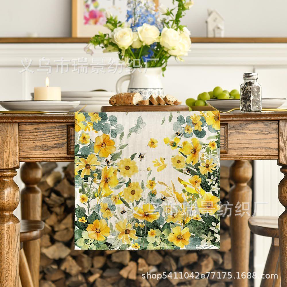 Mantel Transfronterizo Nuevo de Primavera y Verano Serie Flor Margarita Mantel para Mesa de Comedor Mesa de Centro Antimanchas Aislamiento Térmico Lino Camino de Mesa