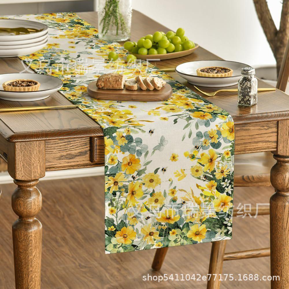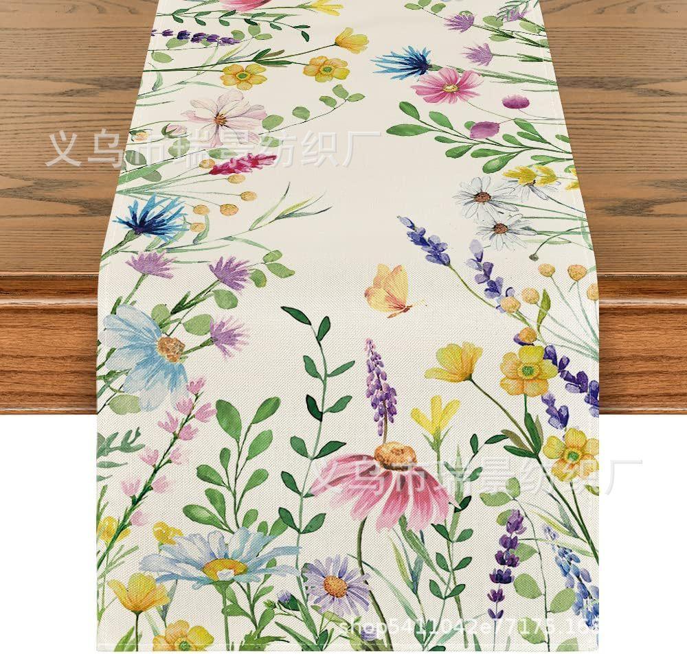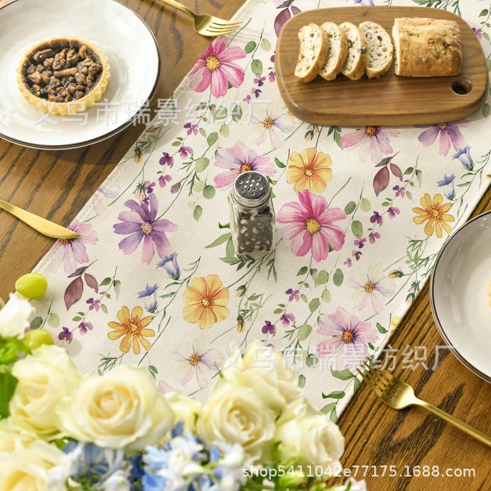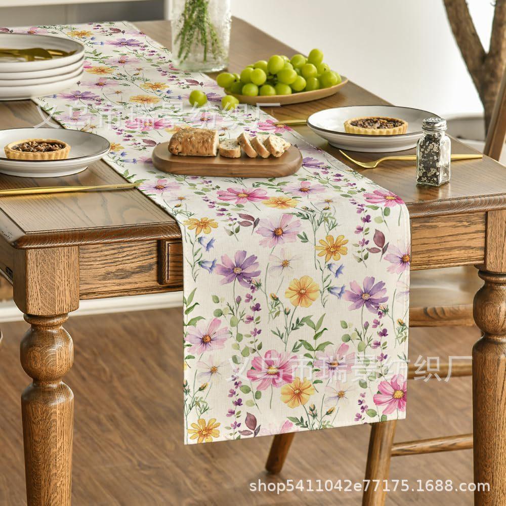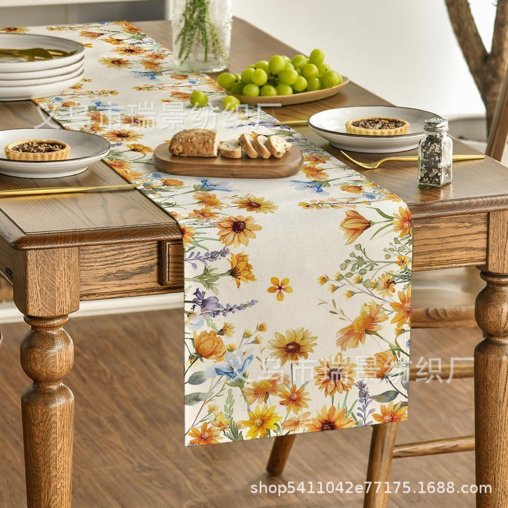 Mantel Transfronterizo Nuevo de Primavera y Verano Serie Flor Margarita Mantel para Mesa de Comedor Mesa de Centro Antimanchas Aislamiento Térmico Lino Camino de Mesa