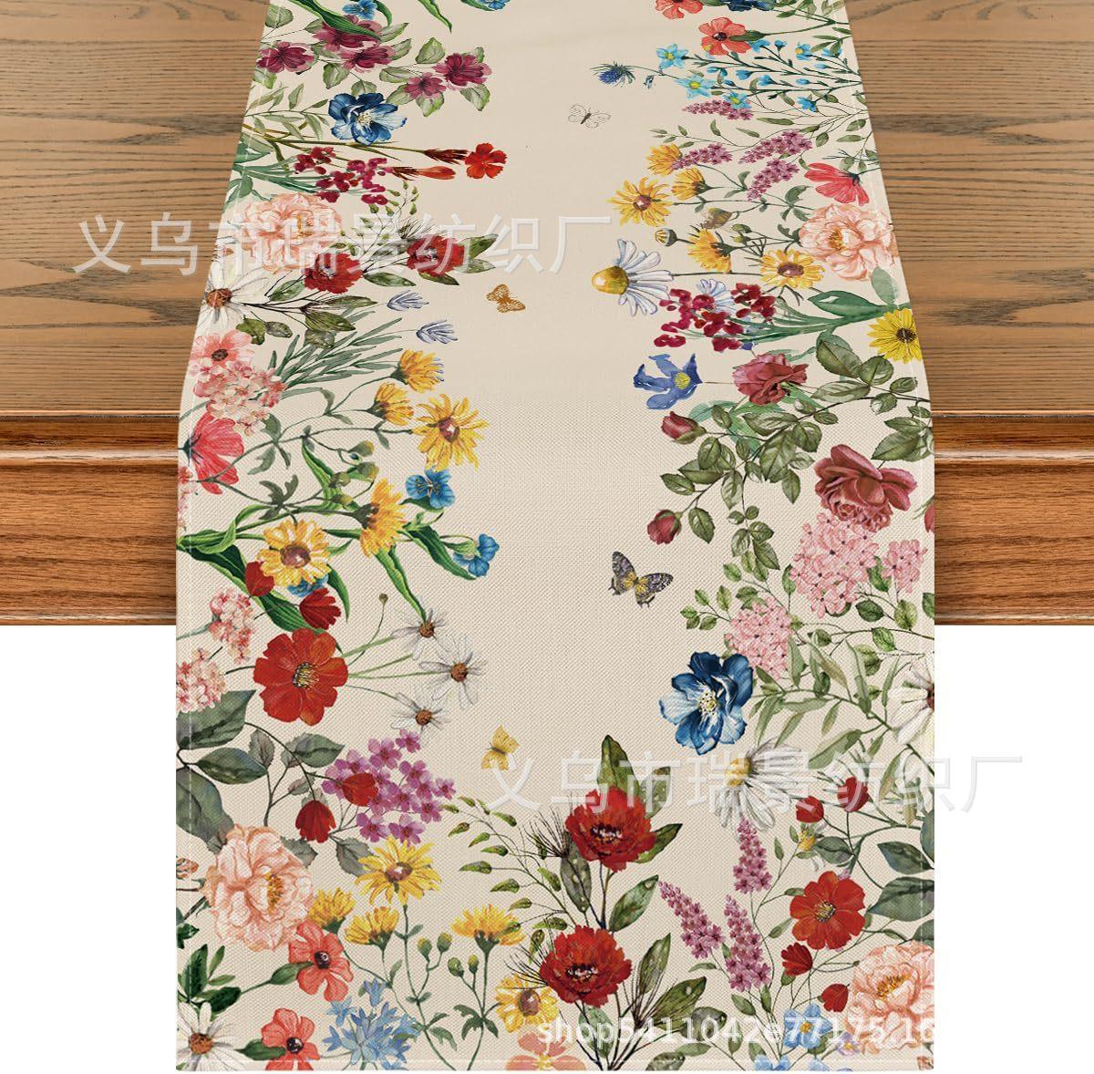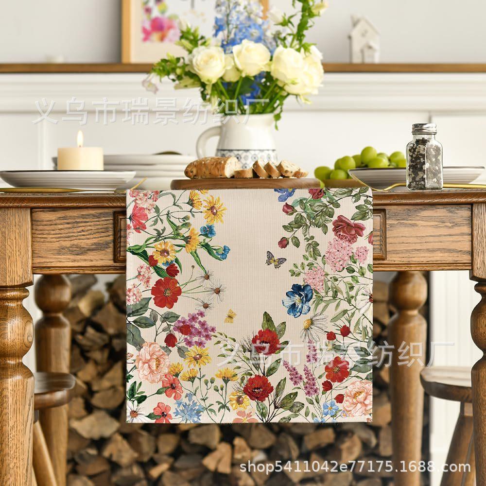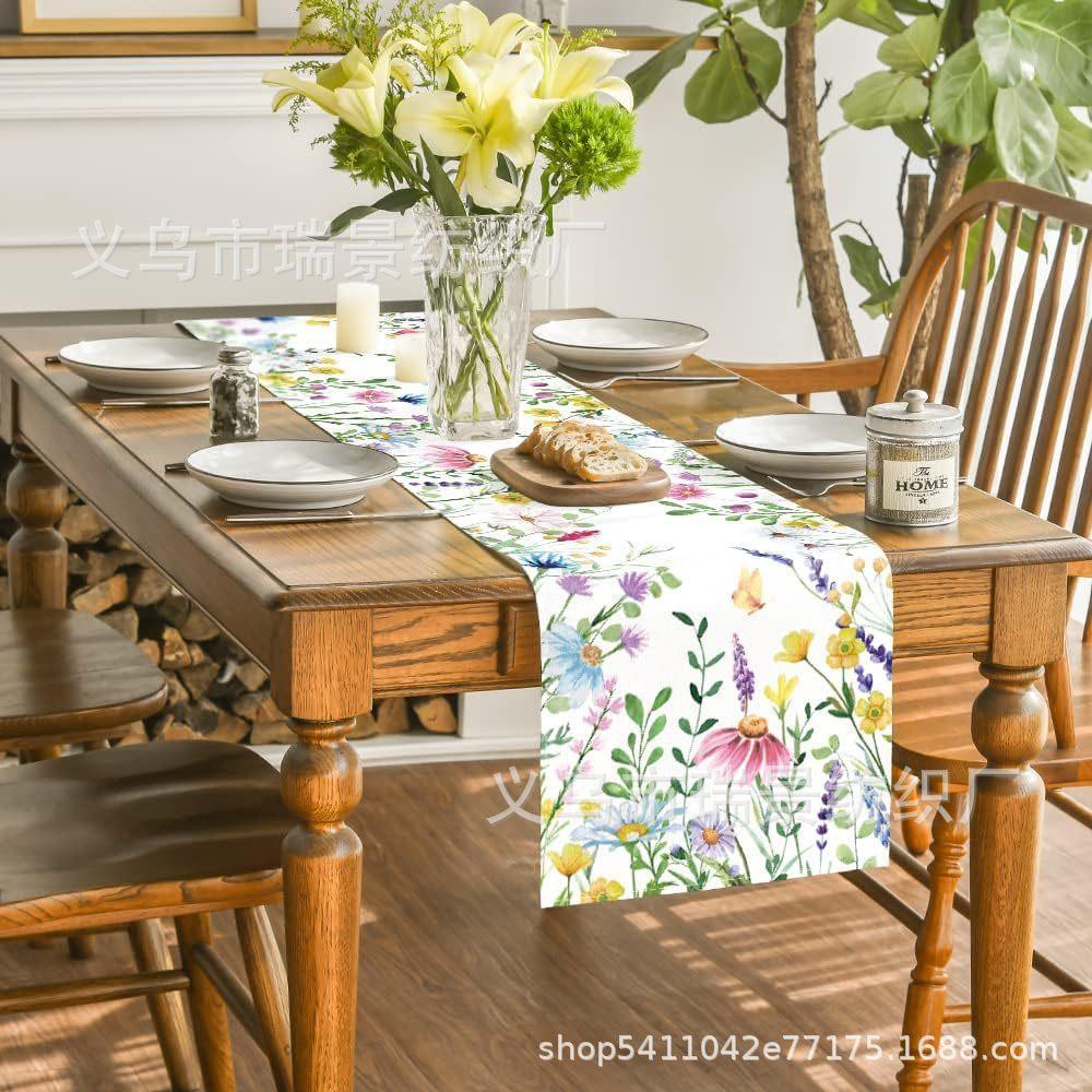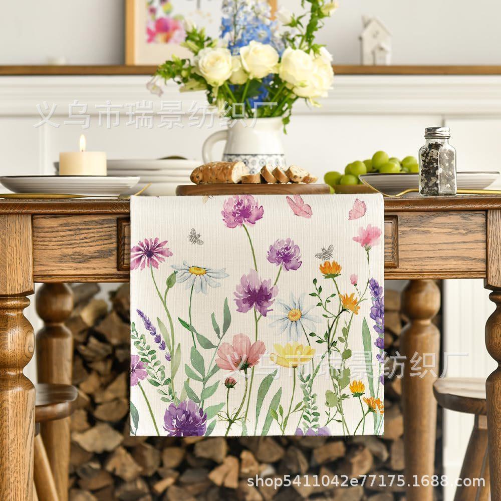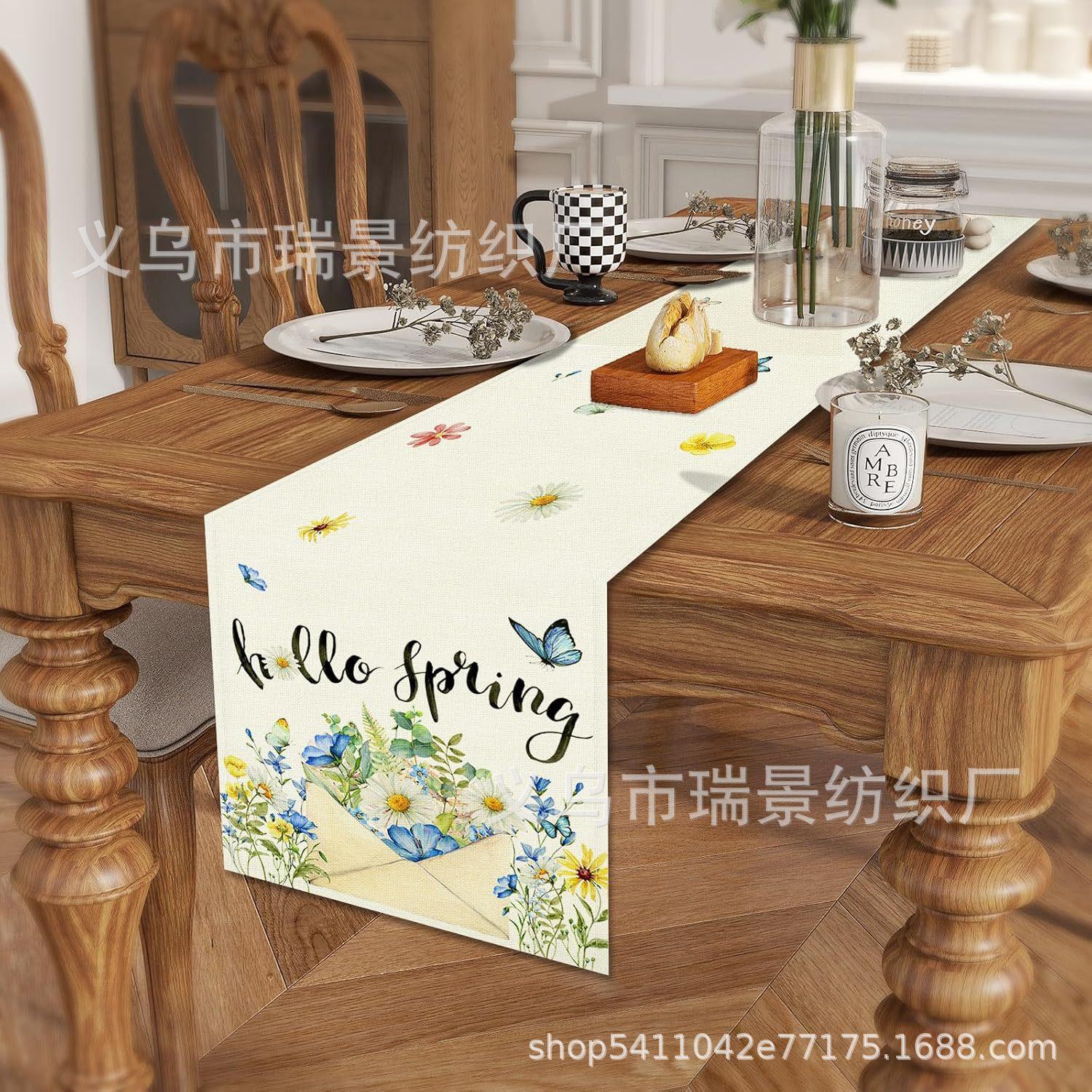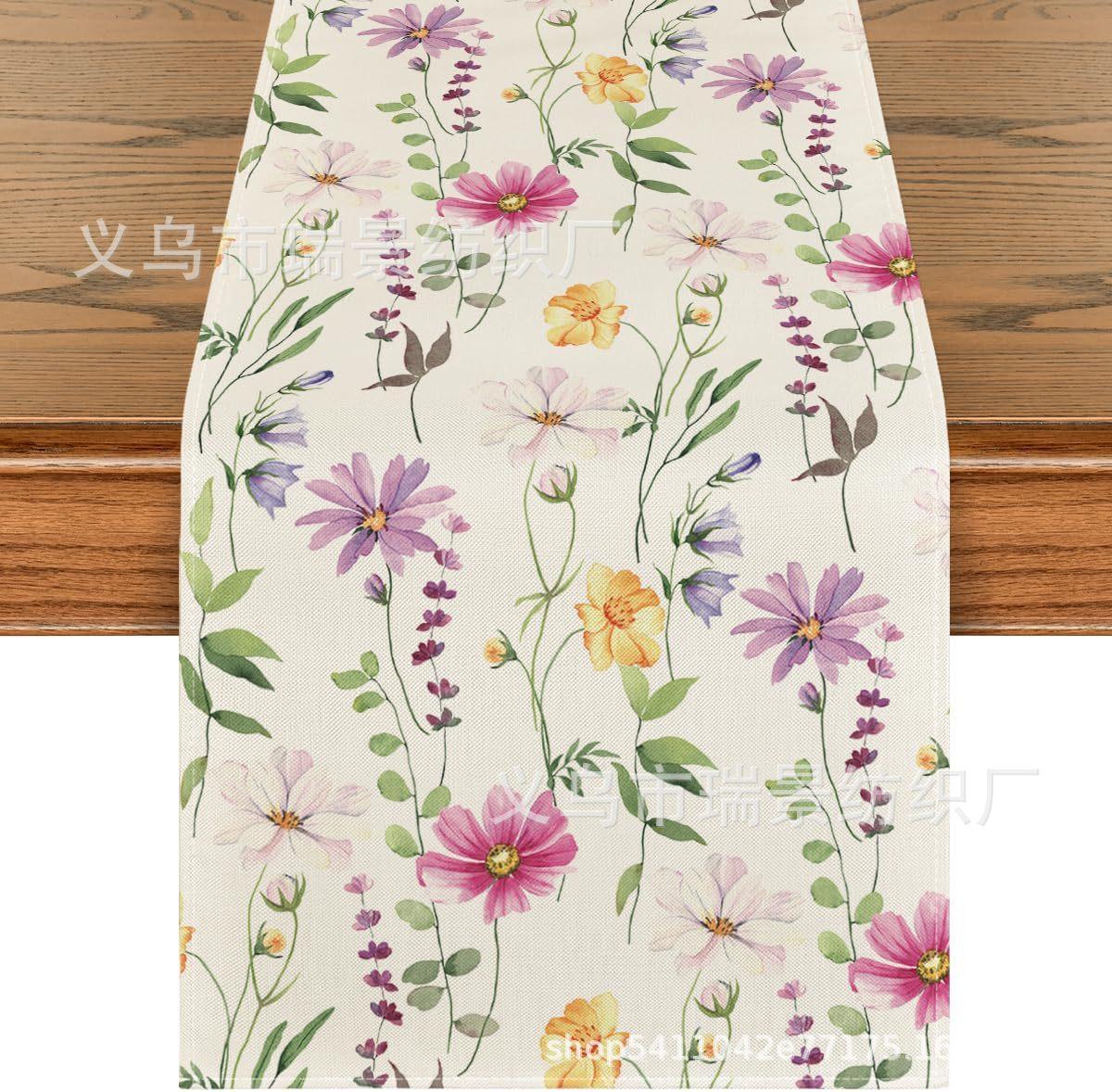 Mantel Transfronterizo Nuevo de Primavera y Verano Serie Flor Margarita Mantel para Mesa de Comedor Mesa de Centro Antimanchas Aislamiento Térmico Lino Camino de Mesa