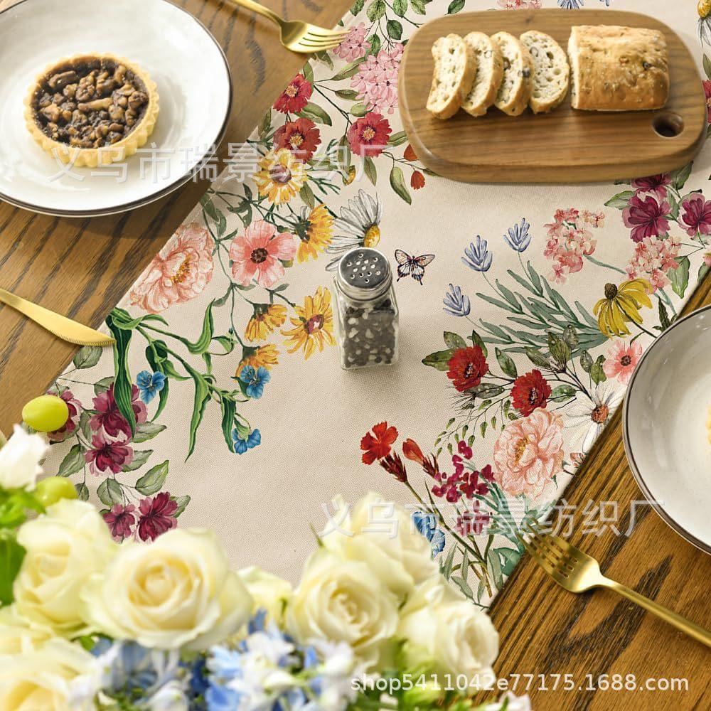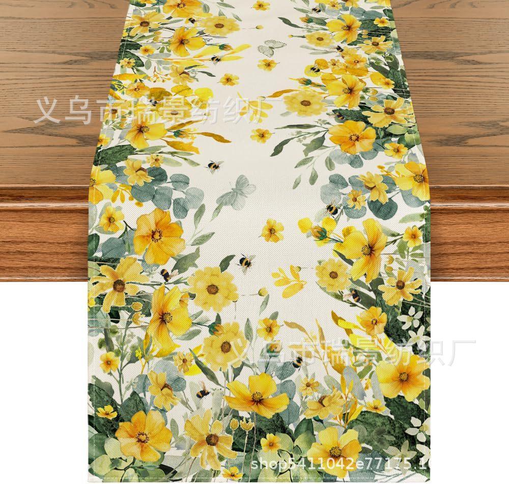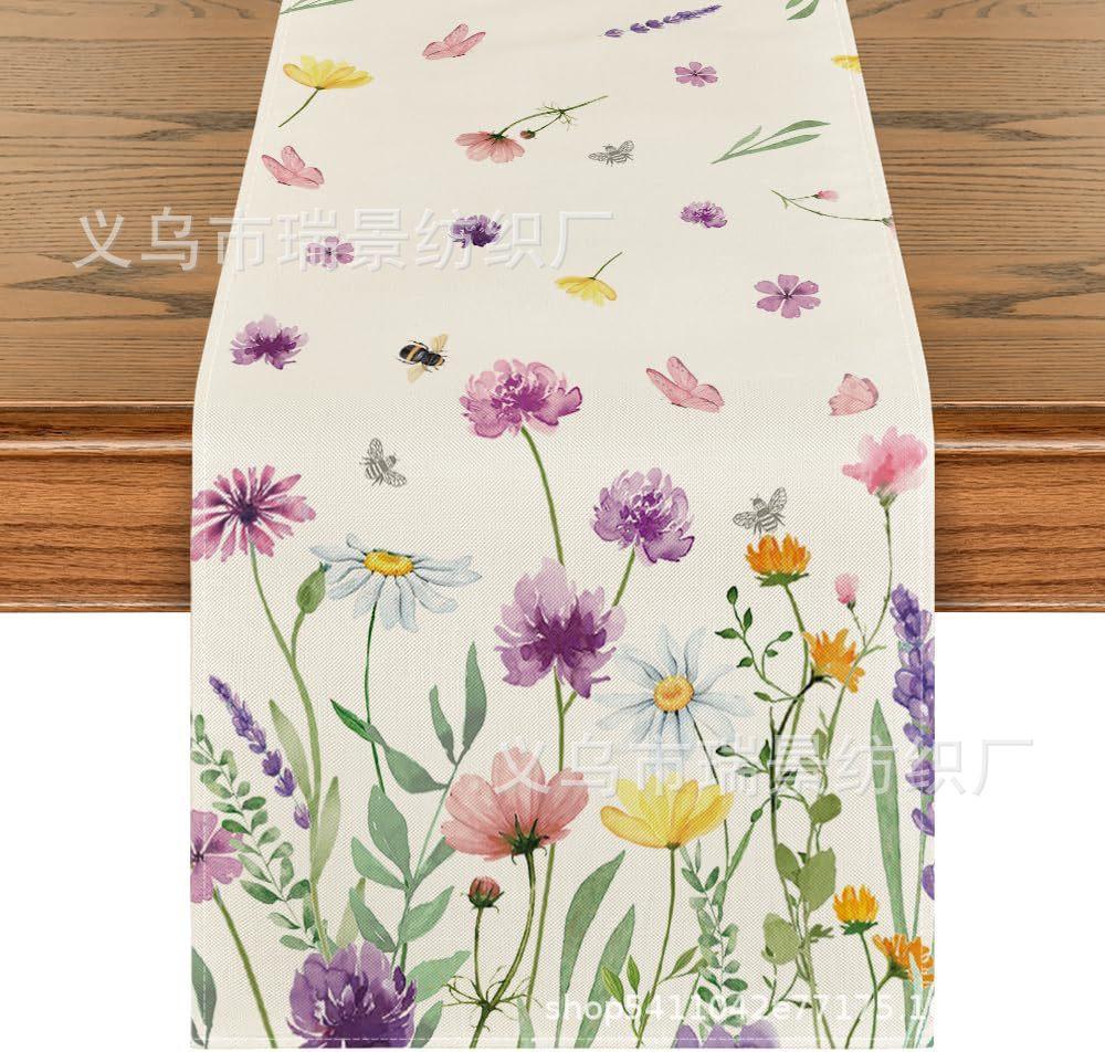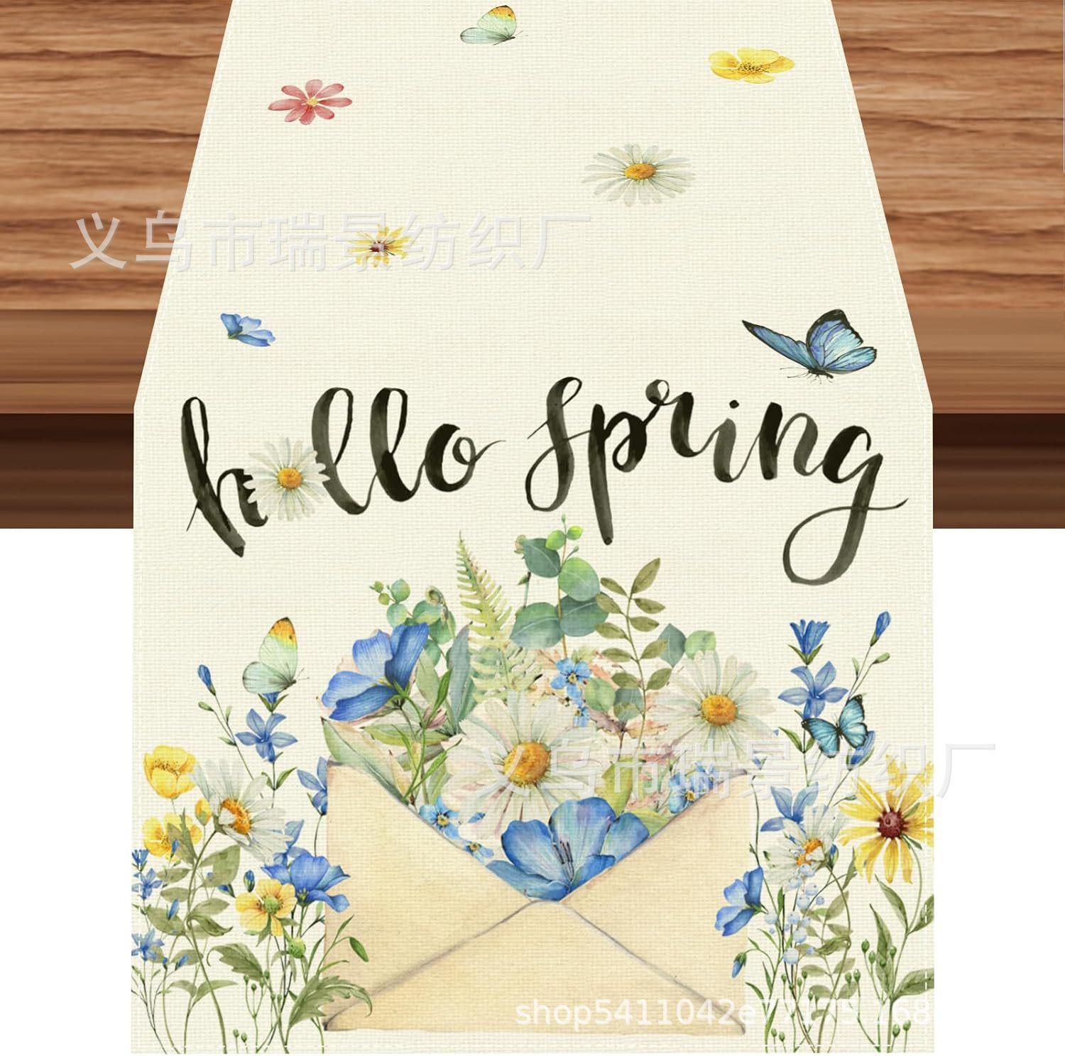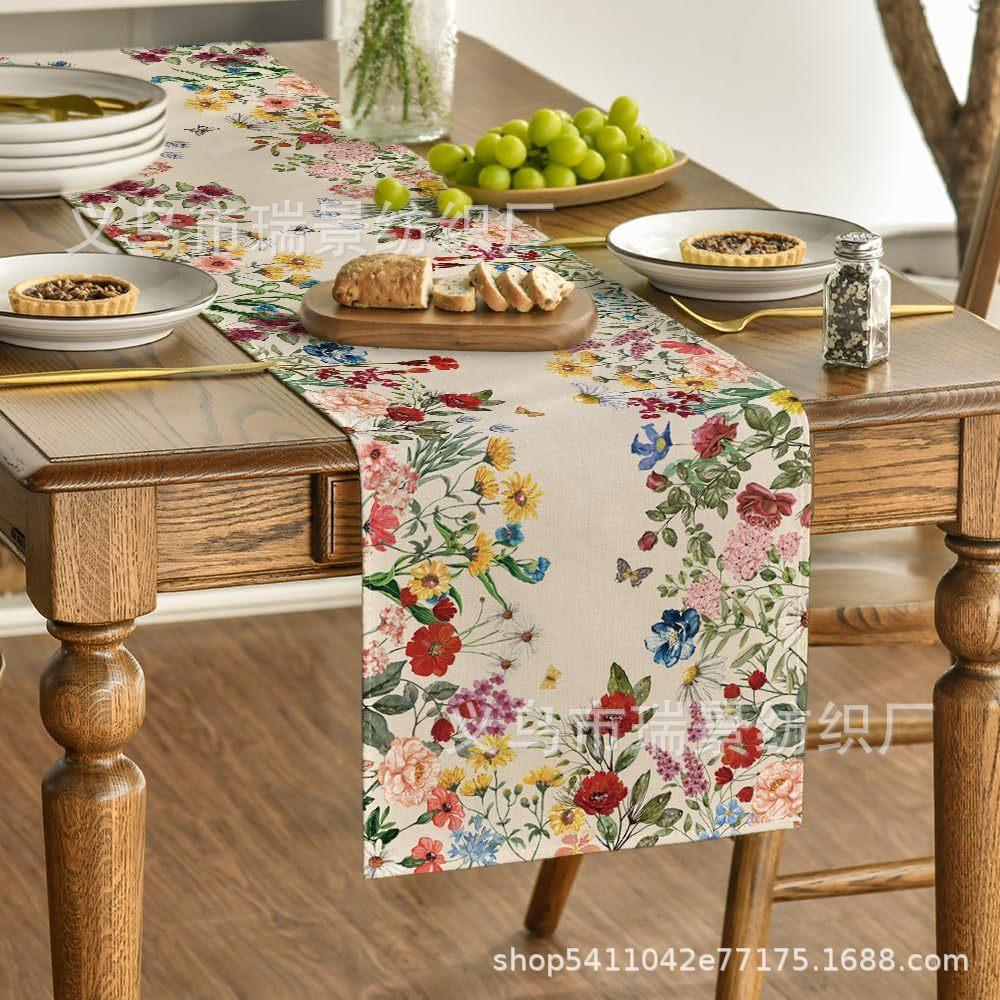 Mantel Transfronterizo Nuevo de Primavera y Verano Serie Flor Margarita Mantel para Mesa de Comedor Mesa de Centro Antimanchas Aislamiento Térmico Lino Camino de Mesa