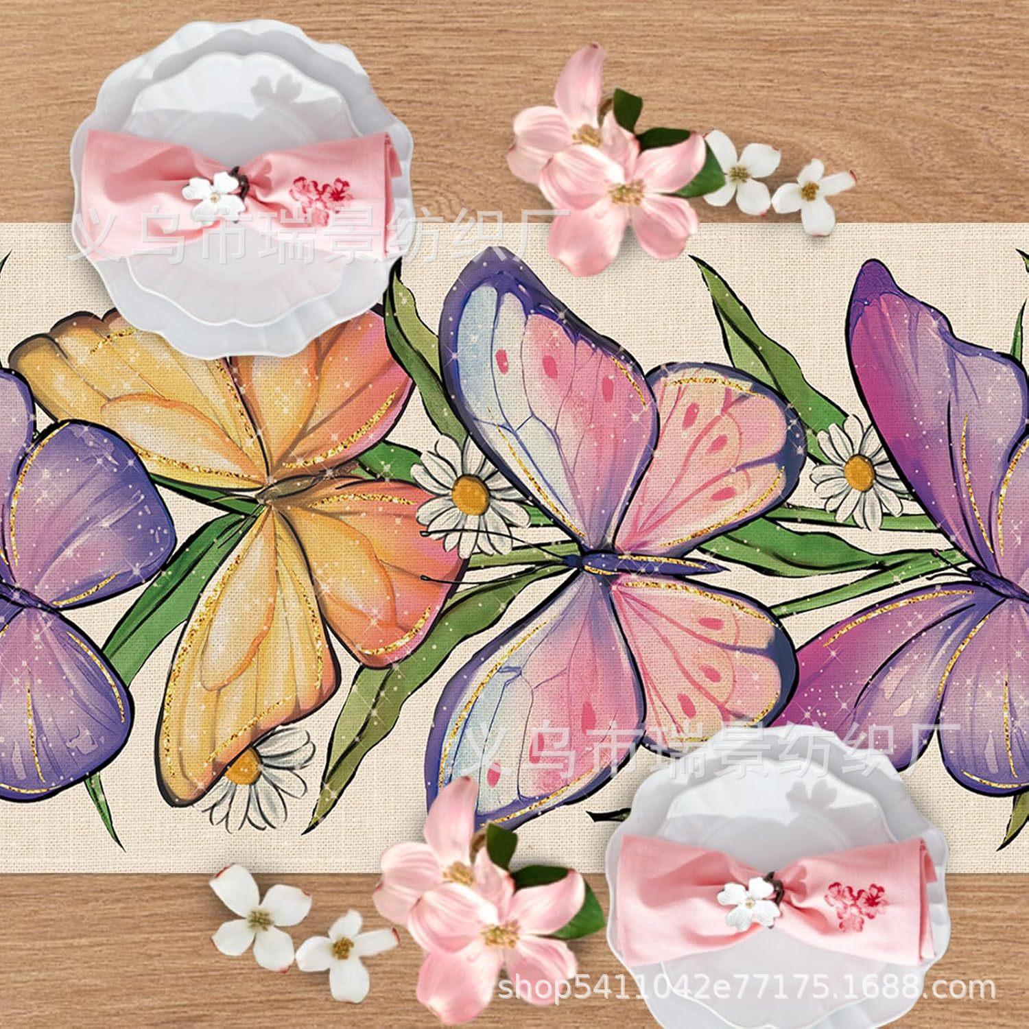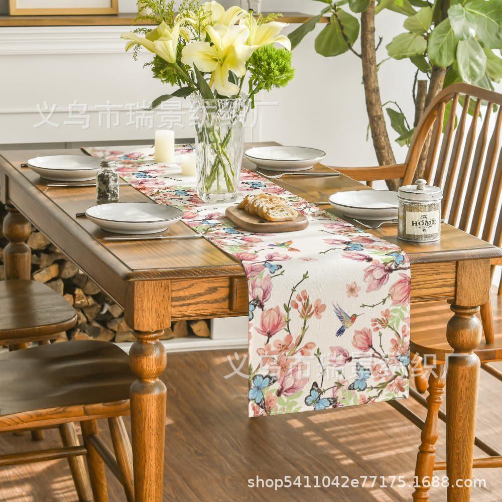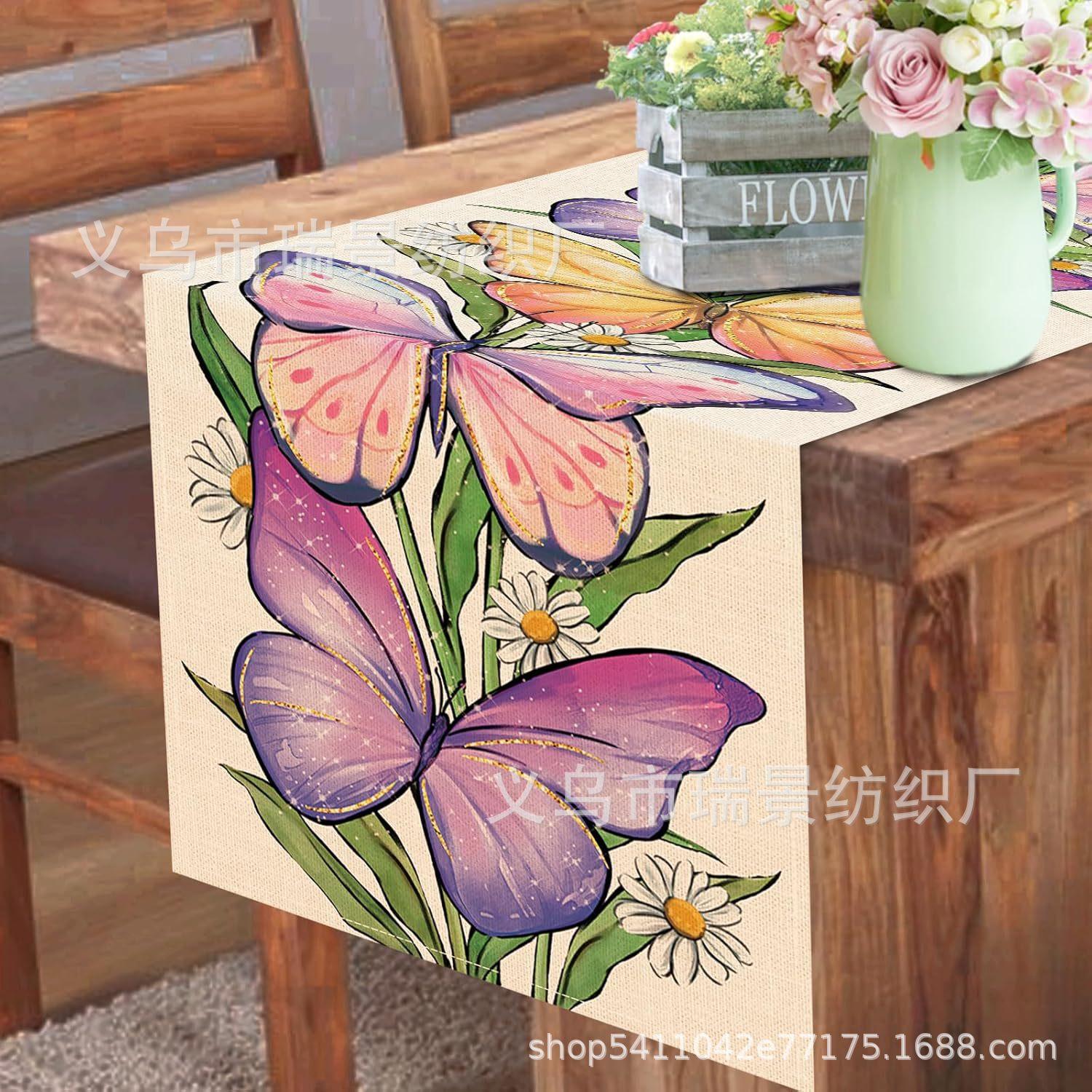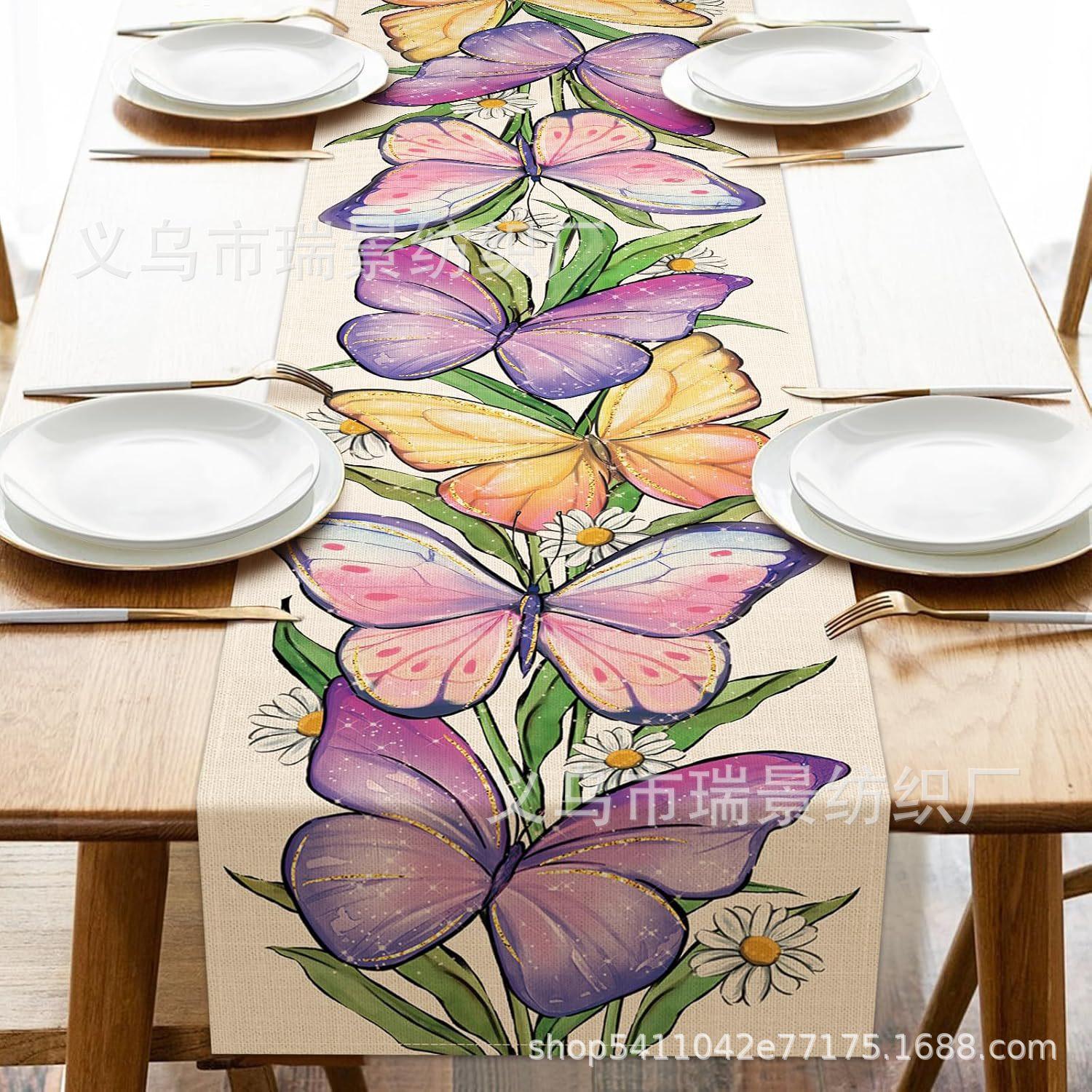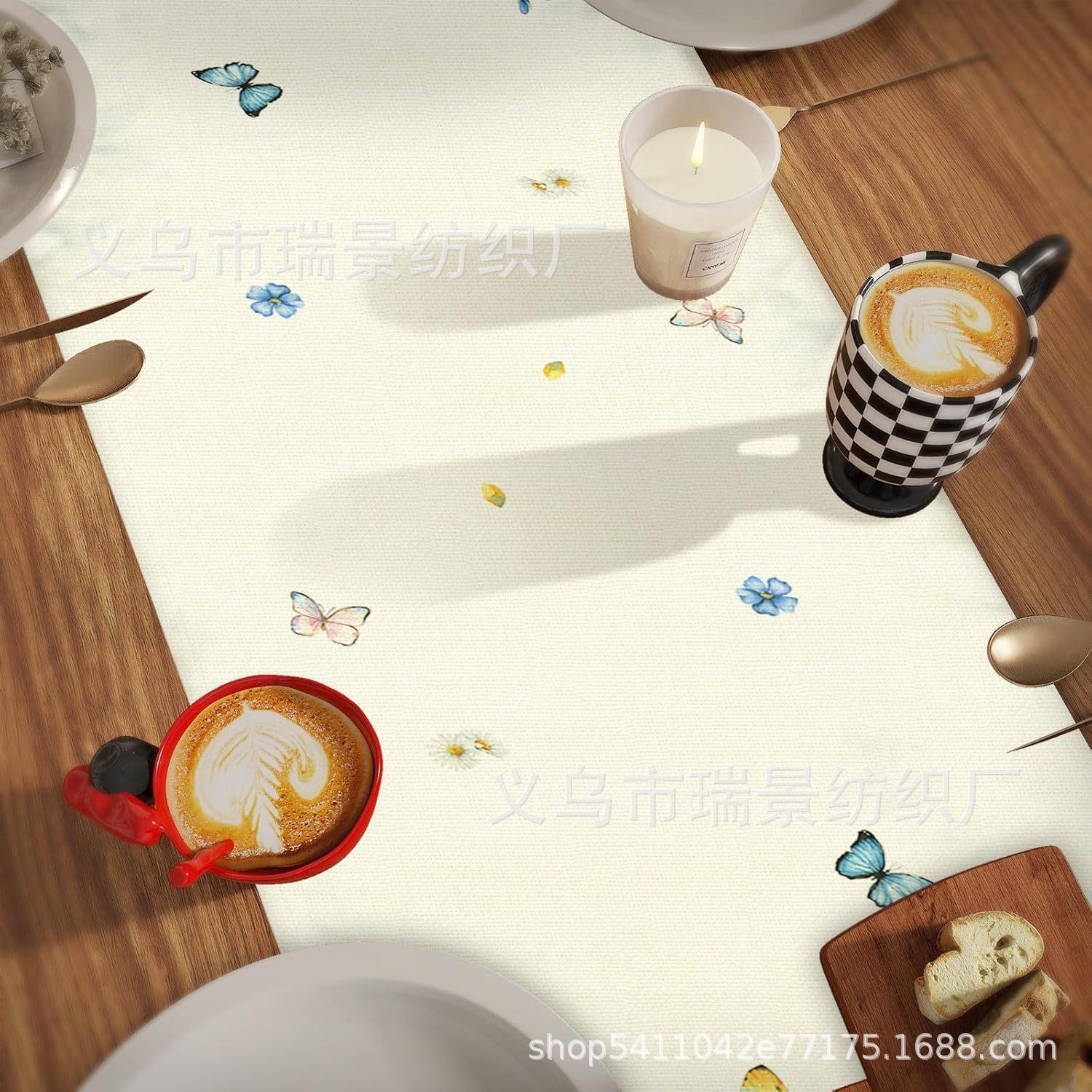Mantel Transfronterizo Nuevo de Primavera y Verano Serie Flor Margarita Mantel para Mesa de Comedor Mesa de Centro Antimanchas Aislamiento Térmico Lino Camino de Mesa