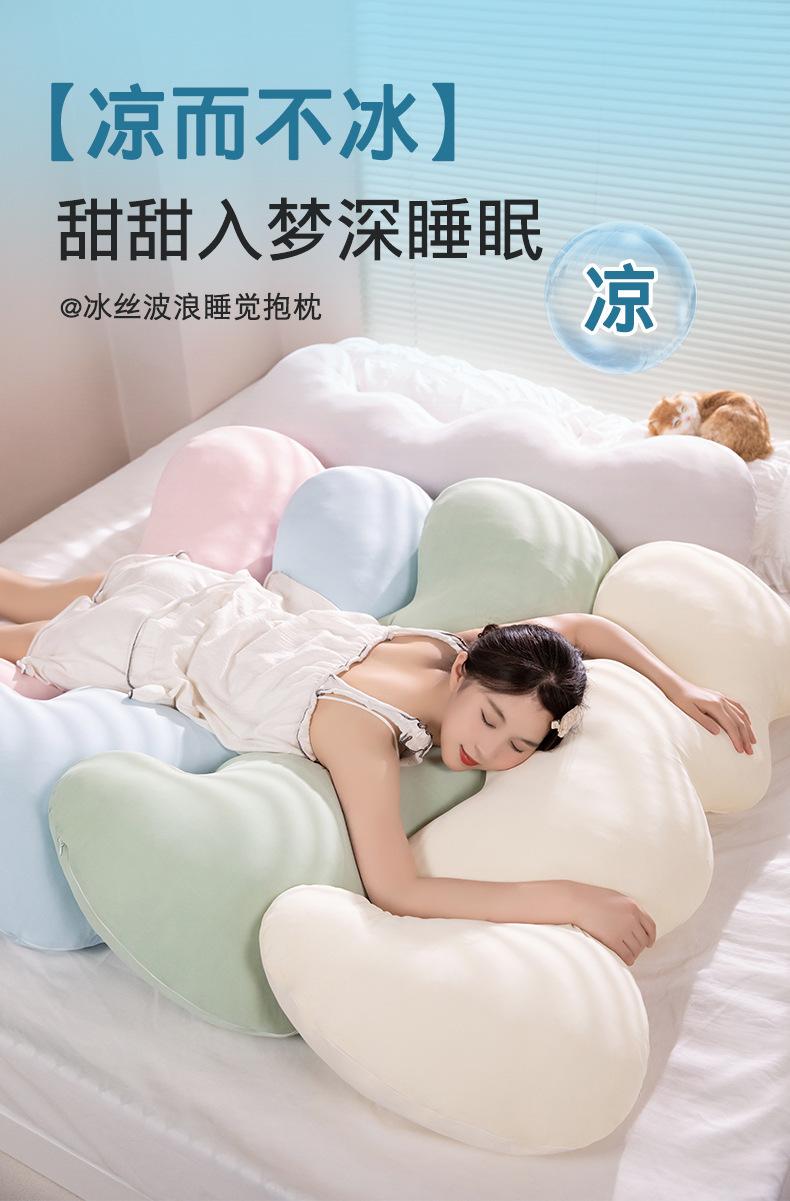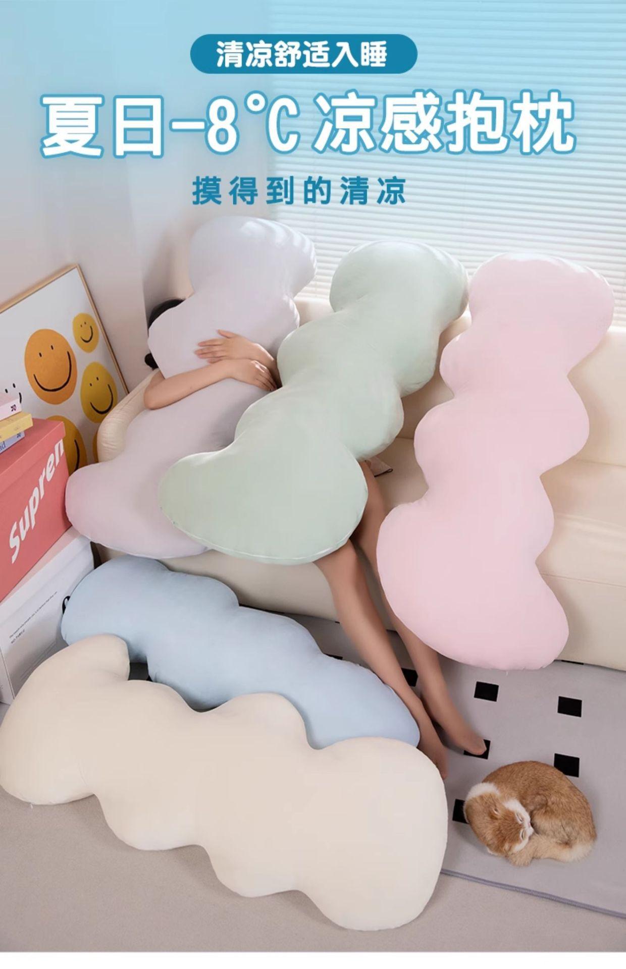 Almohada Larga de Seda de Hielo Fresca de Verano, Almohada de Nube Ondulada, Almohada de Cabecera, Almohada para Piernas de Cama de Dormitorio, Almohada de Sofá