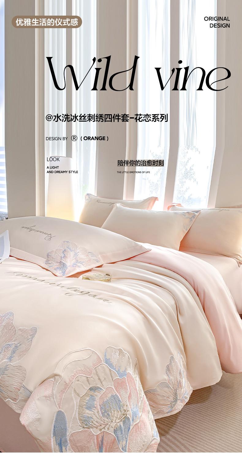 Juego de Cama de Seda de Hielo Fresco de Verano de Cuatro Piezas Lujo Accesible Cama de Alta Gama Sábanas Funda de Edredón Nuevo Juego de Cama de Tres Piezas 2025