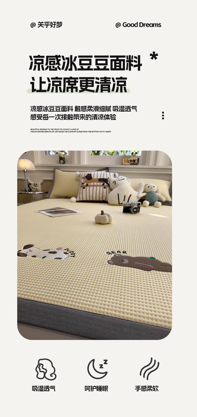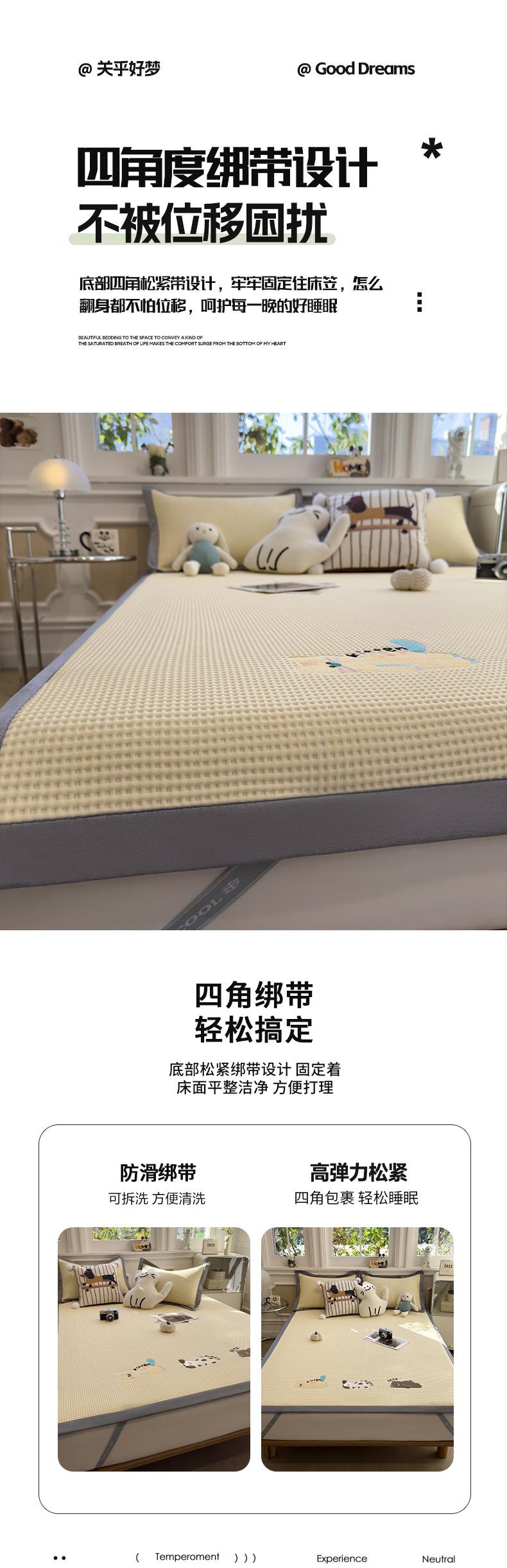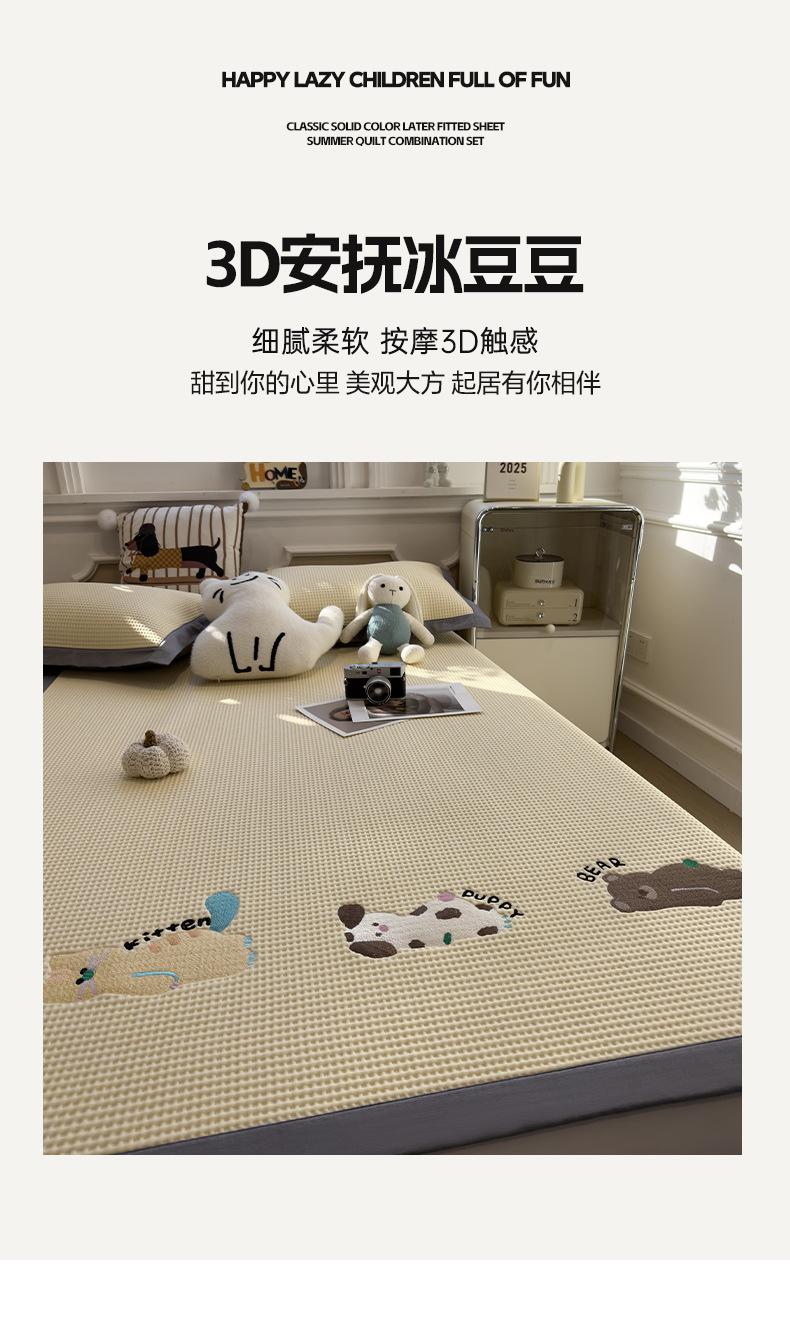 2025 Nuevo Protector de Colchón Refrescante de Seda de Hielo Waffle Juego de Sábanas con Funda de Edredón de Dibujos Animados