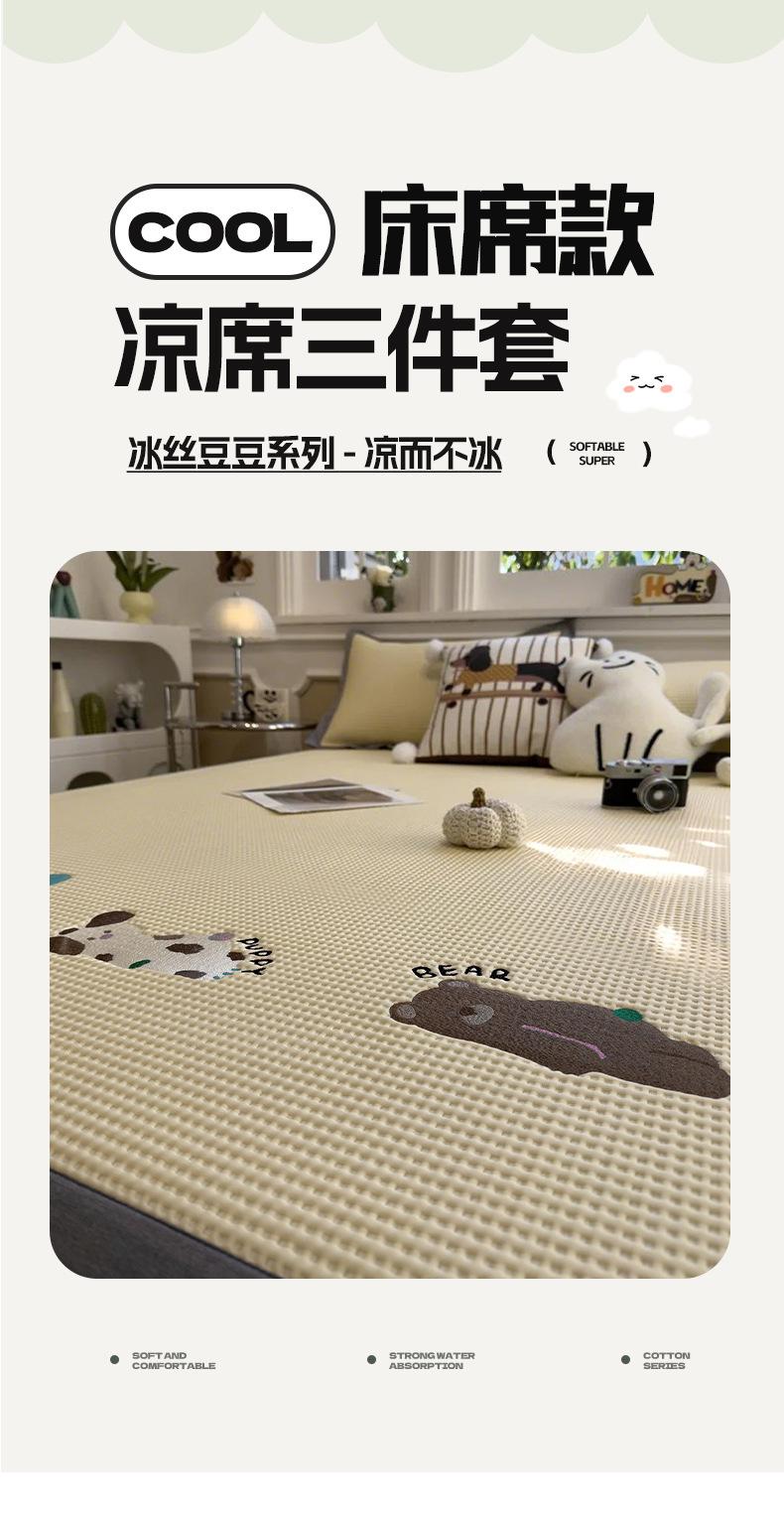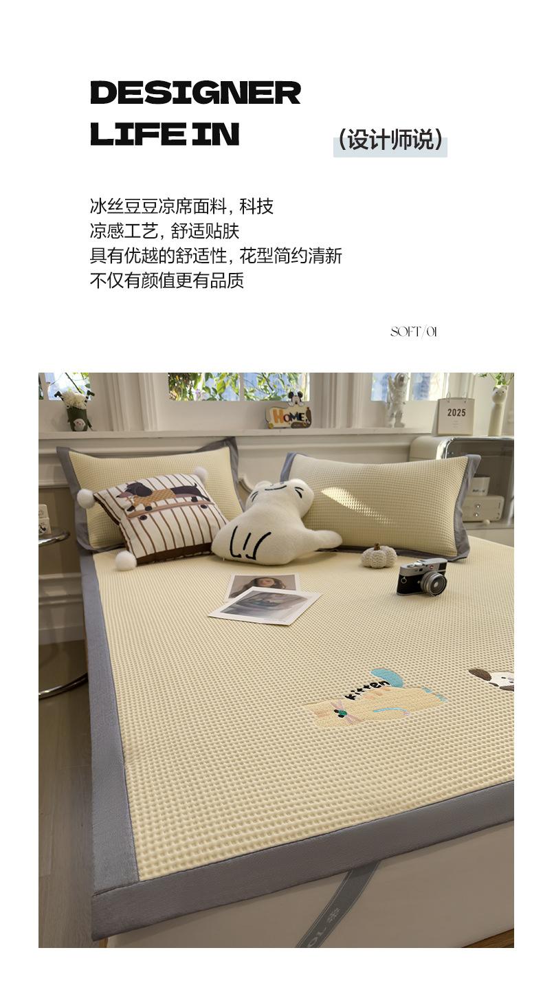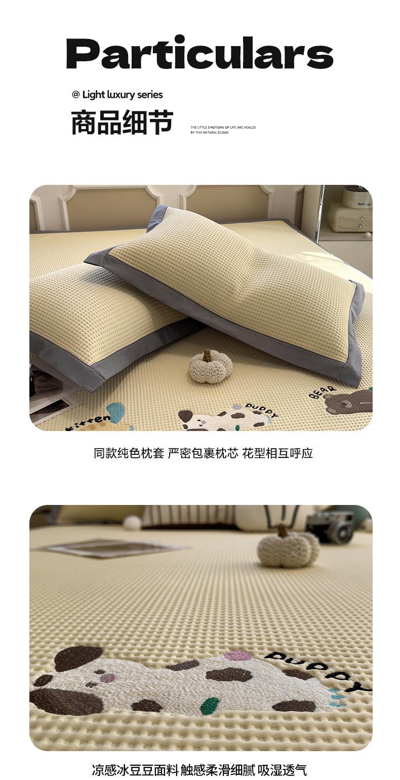 2025 Nuevo Protector de Colchón Refrescante de Seda de Hielo Waffle Juego de Sábanas con Funda de Edredón de Dibujos Animados