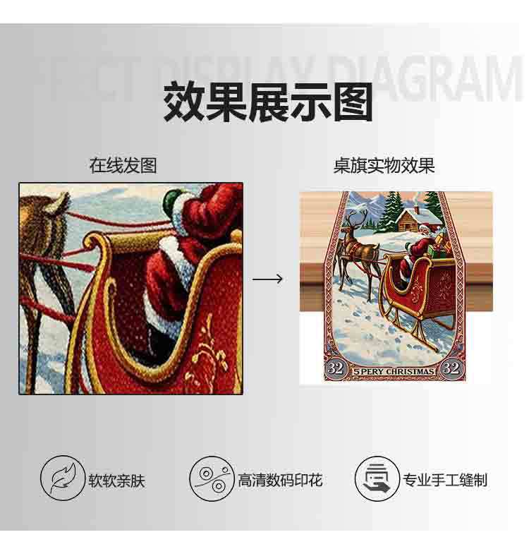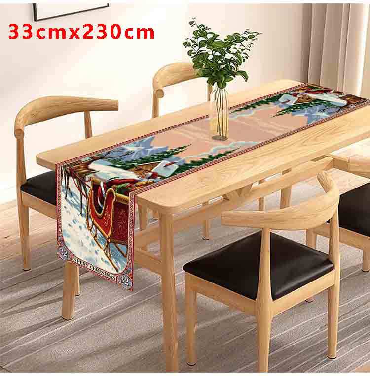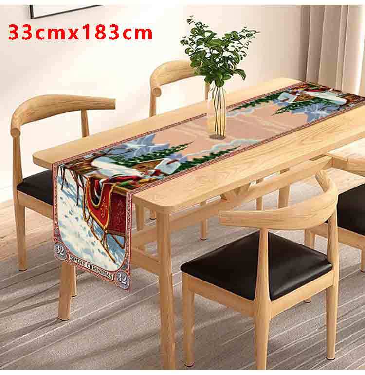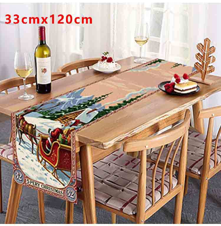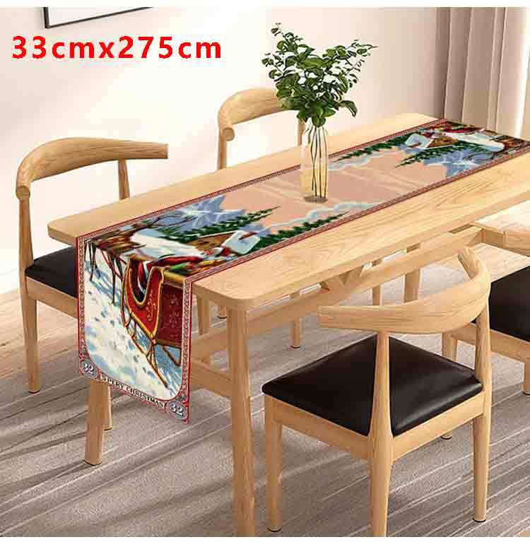 Nuevo Camino de Mesa Navideño Transfronterizo Papá Noel Reno Impresión Pintura al Óleo Mantel Decoración Fiesta Navideña Tapete de Mesa