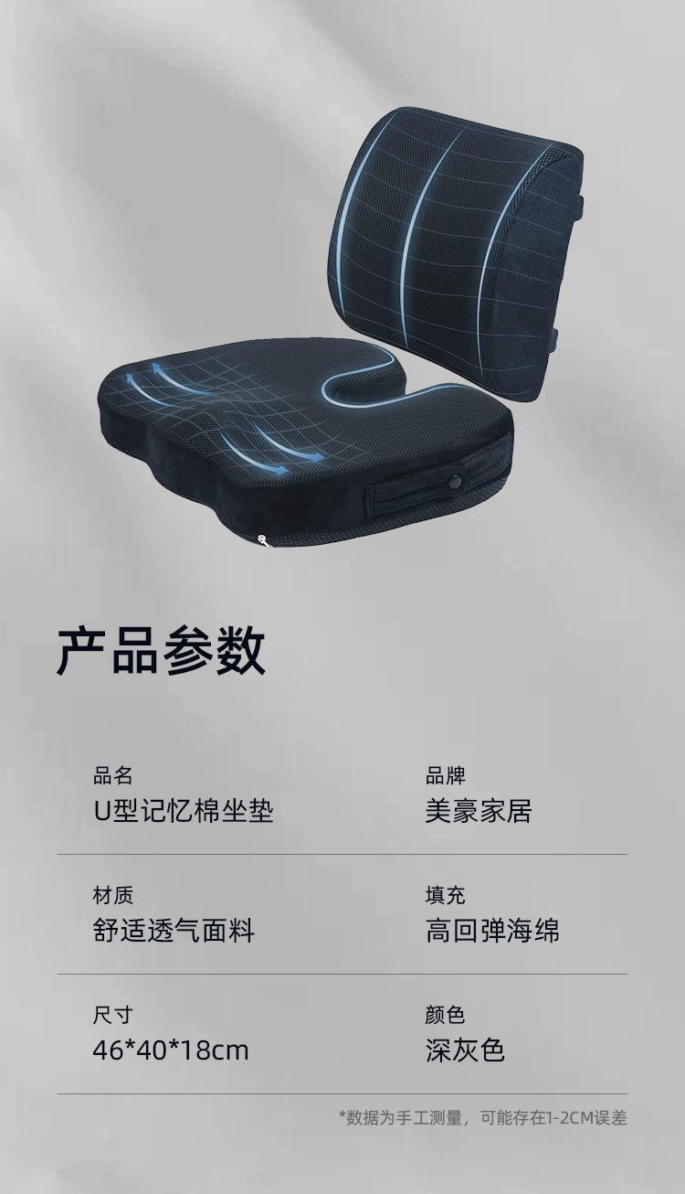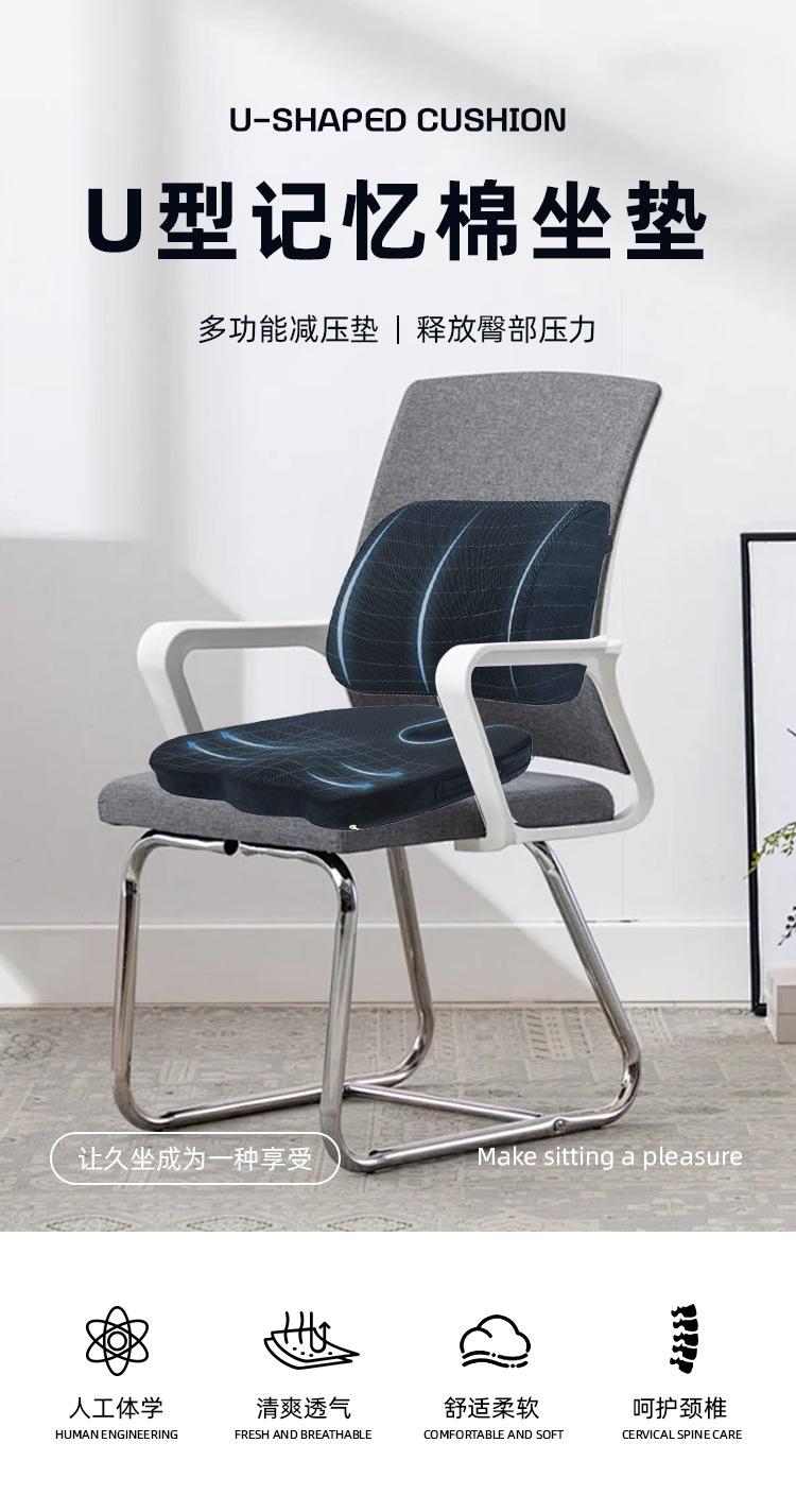 Cojín de Silla de Espuma Viscoelástica Oficina Sedentario Verano Transpirable Cojín para Glúteos Cojín de Asiento en Forma de U para Glúteos Cojín para Asiento de Taburete