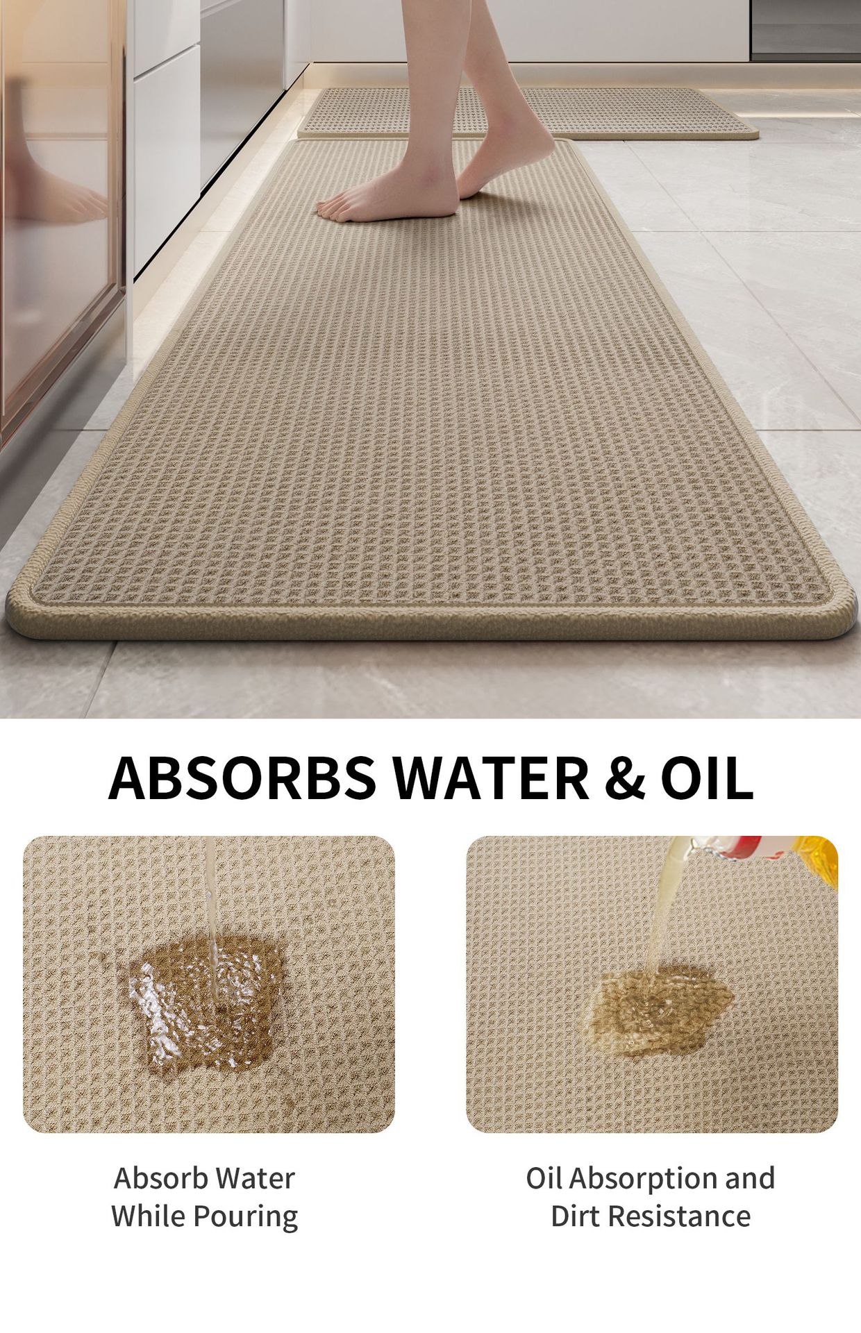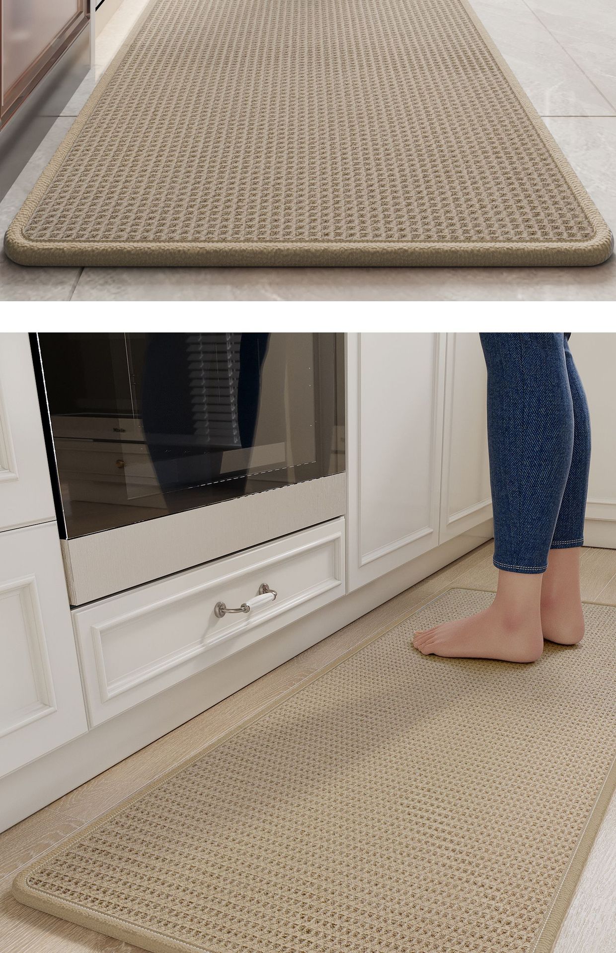 Waffle Weave Kitchen Mat Foam Backing - Brown