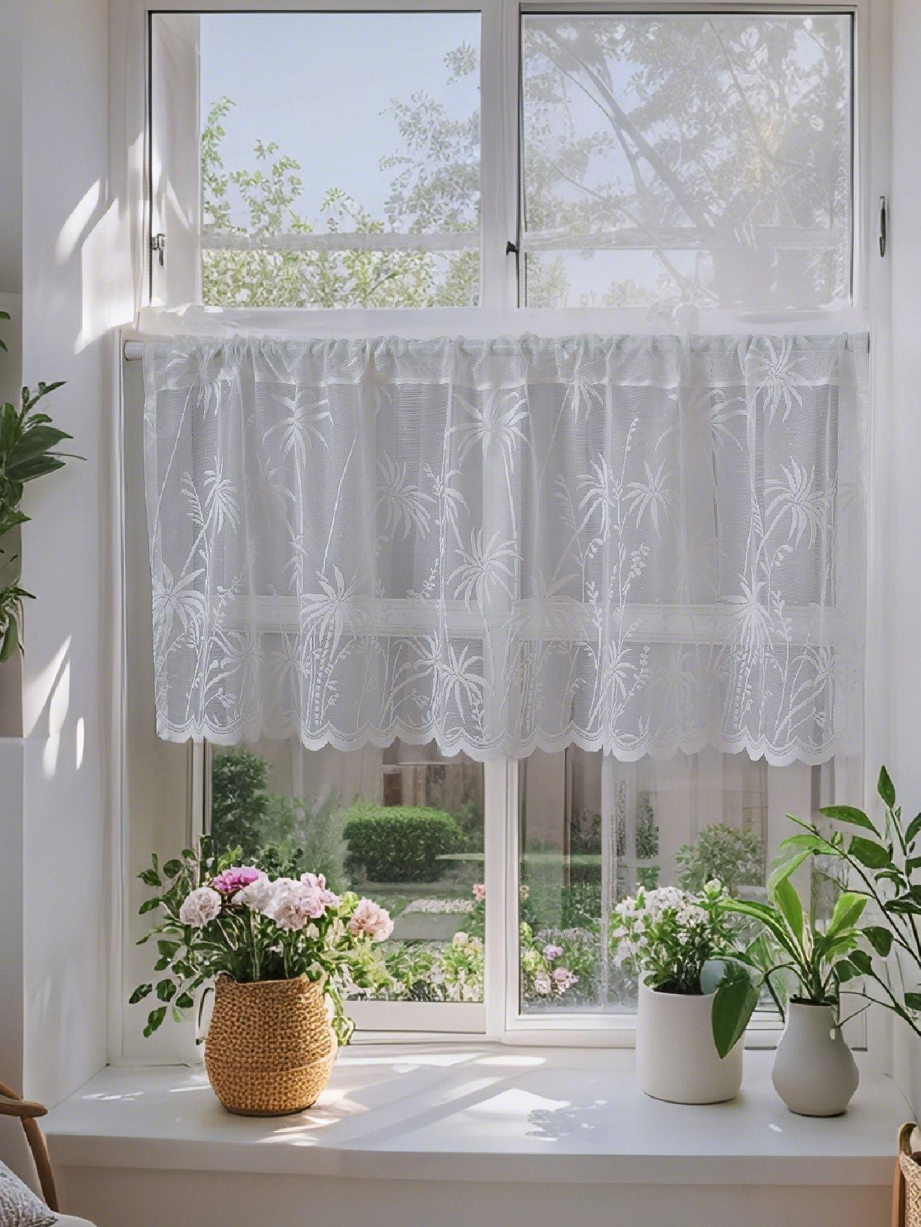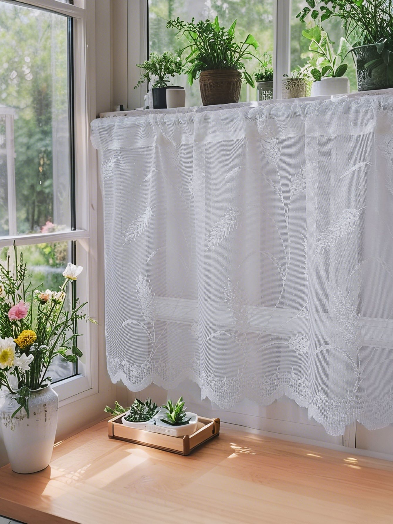 Suministro Directo de Fabricantes de Comercio Exterior: Cortinas de Café de Encaje Blanco, Cortinas Cortas Frescas, Cortinas para Puerta, Media Cortina para Cocina y Dormitorio