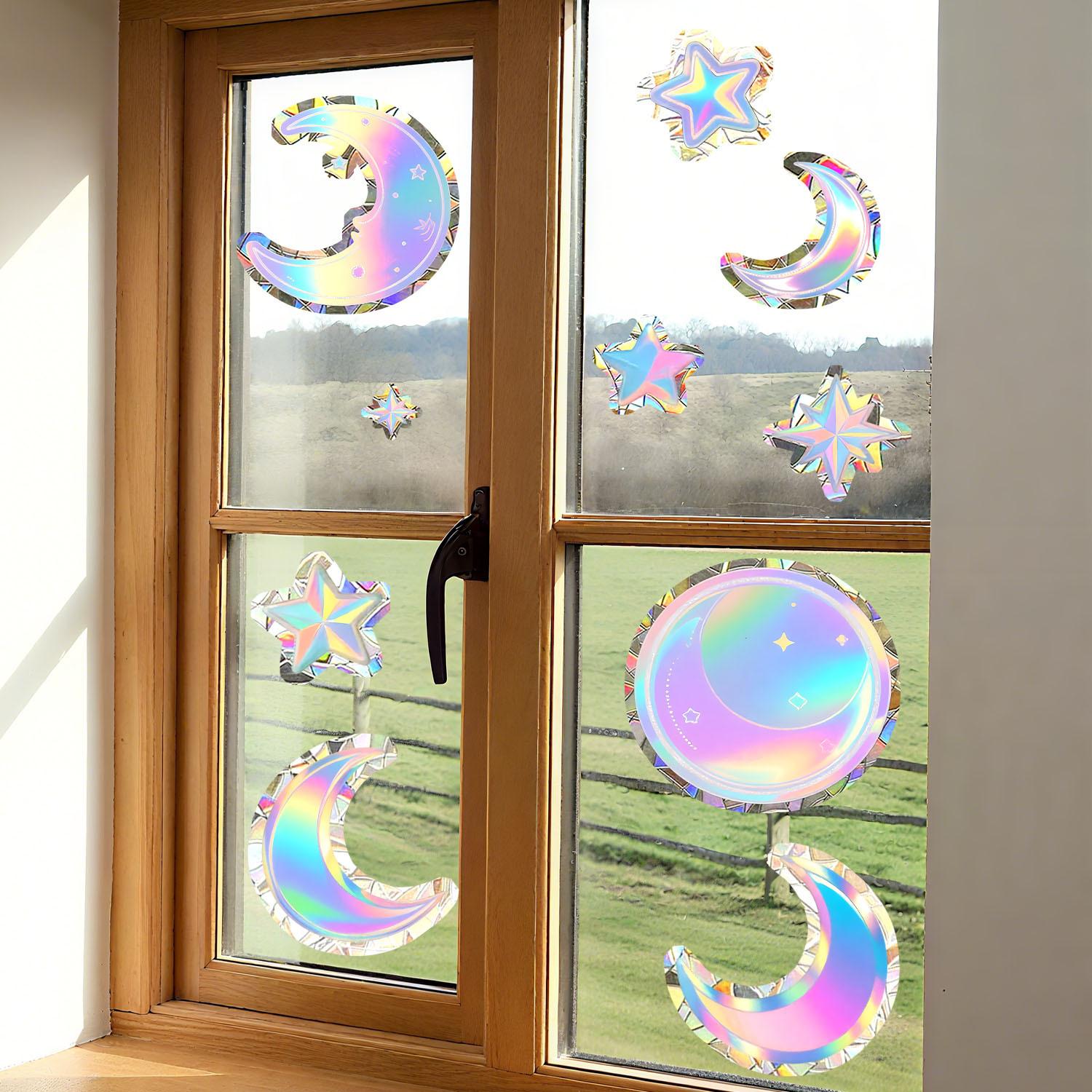 Calcomanías Electrostáticas de Luna Estrella Nueva para Comercio Exterior Transfronterizo Estilo Moderno para Decoración del Hogar Calcomanías para Cristal de Ventana