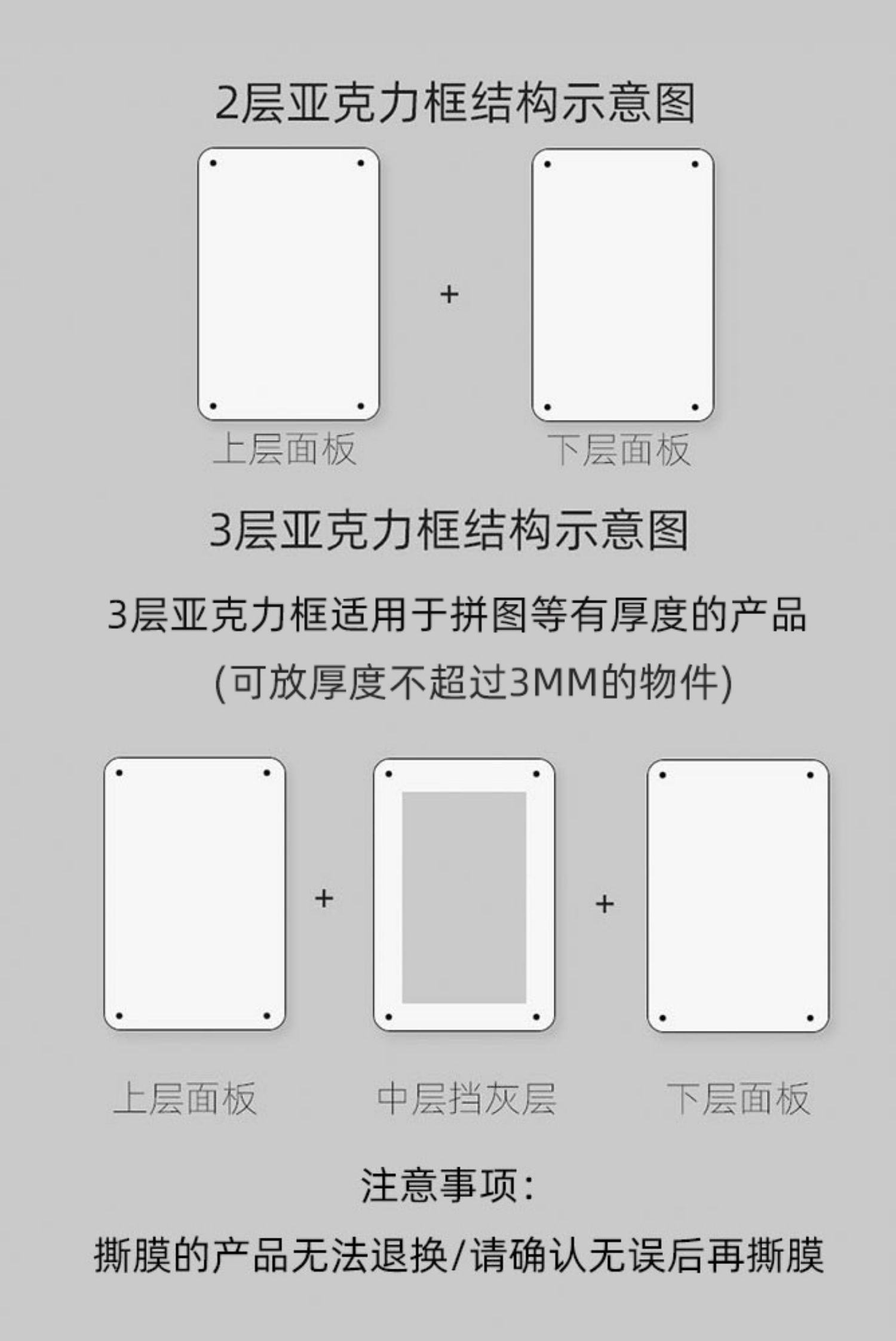 Three-layer transparent acrylic frame, Two-layer transparent acrylic frame