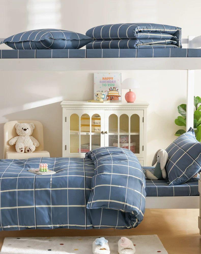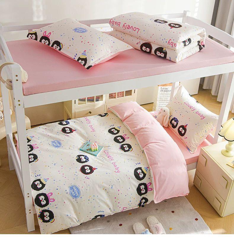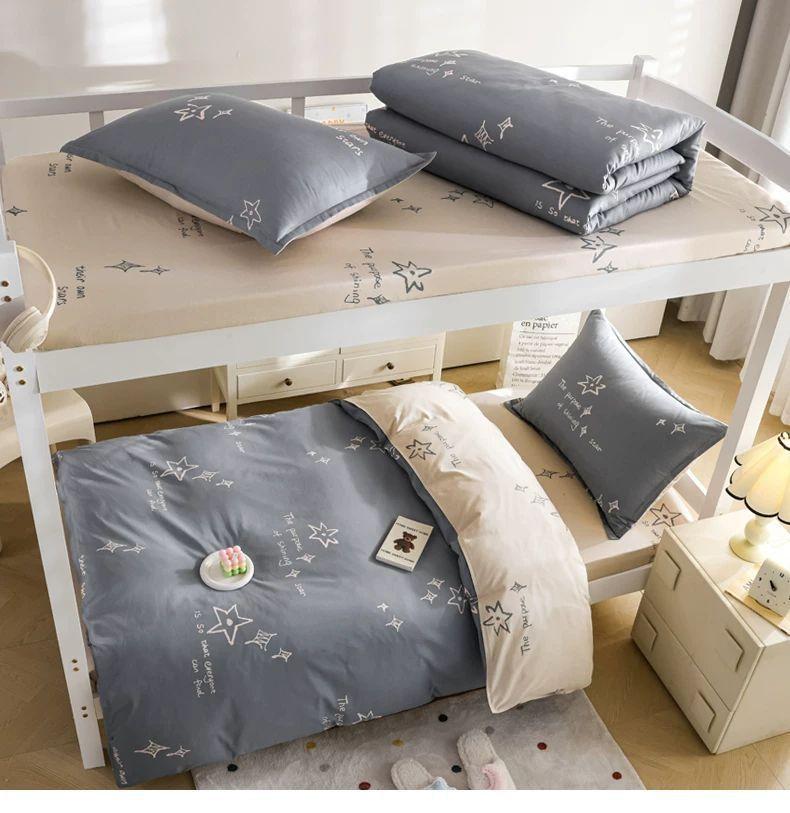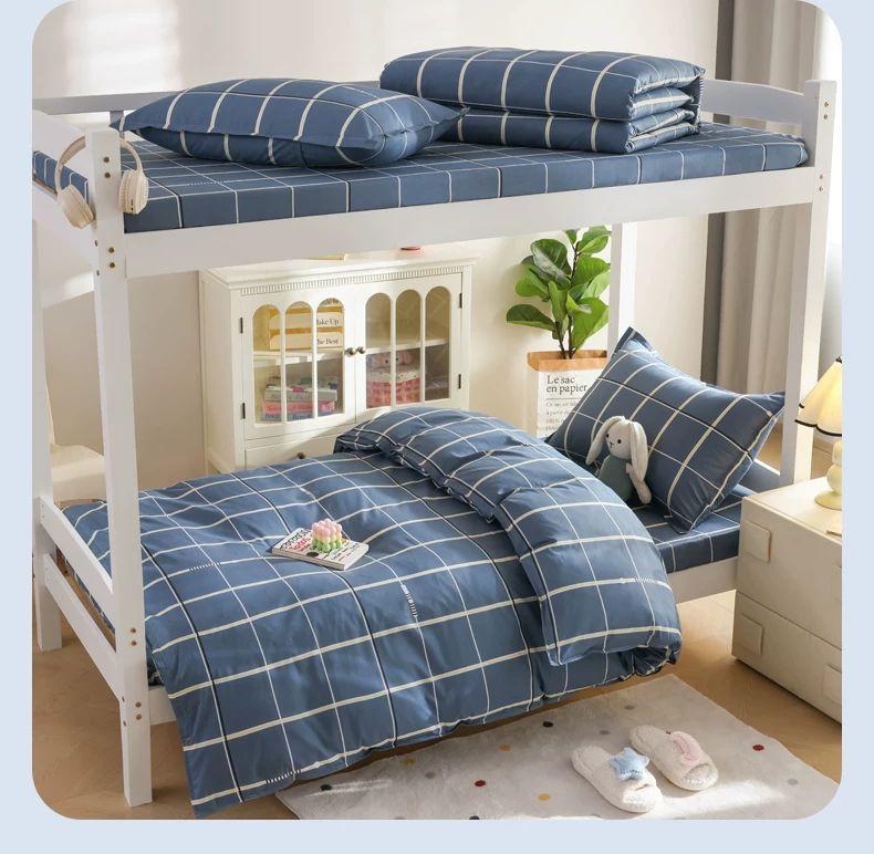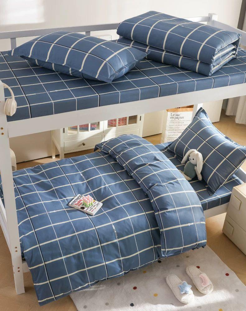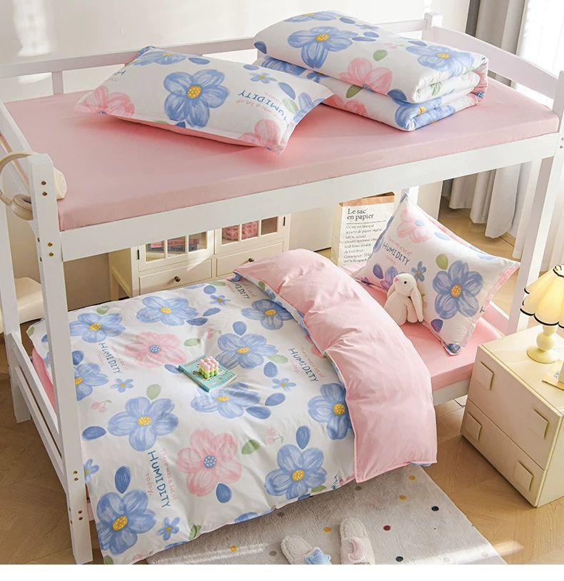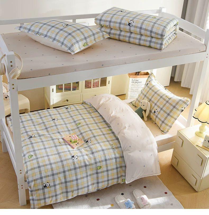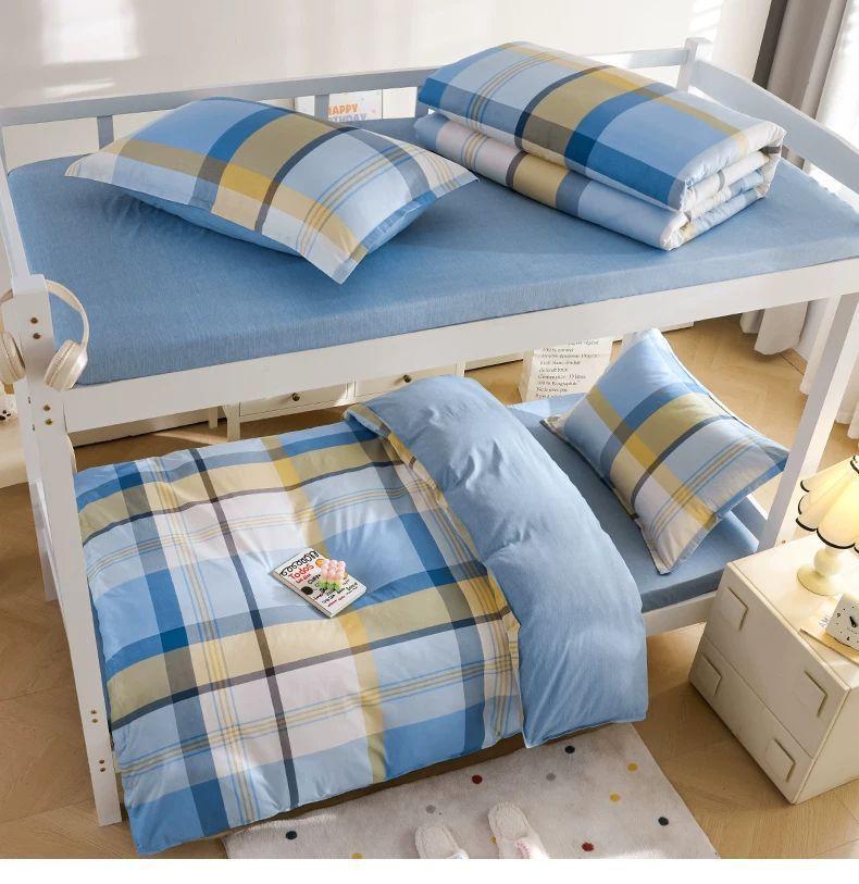 Juego de sábanas de tres piezas de algodón puro para cama de dormitorio de estudiantes universitarios, funda nórdica, sábanas ajustables, cama individual alta y baja, seis literas