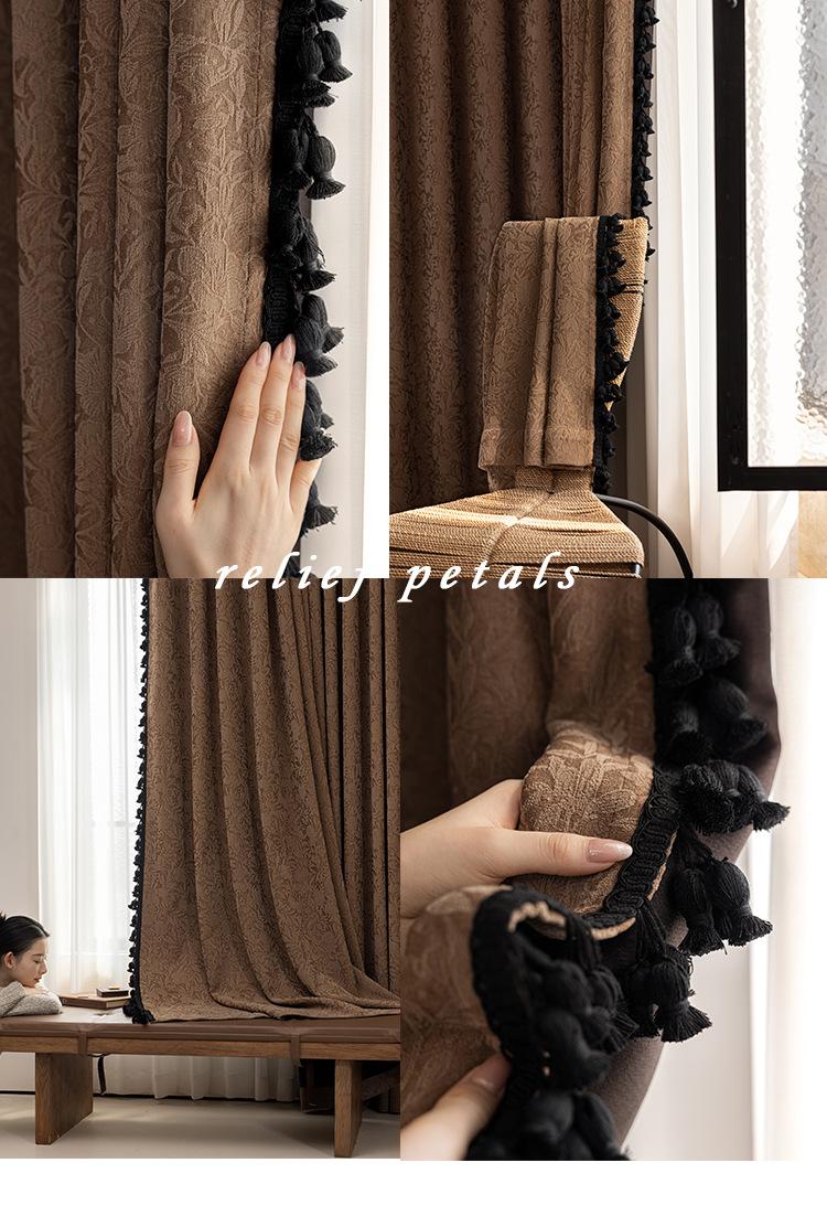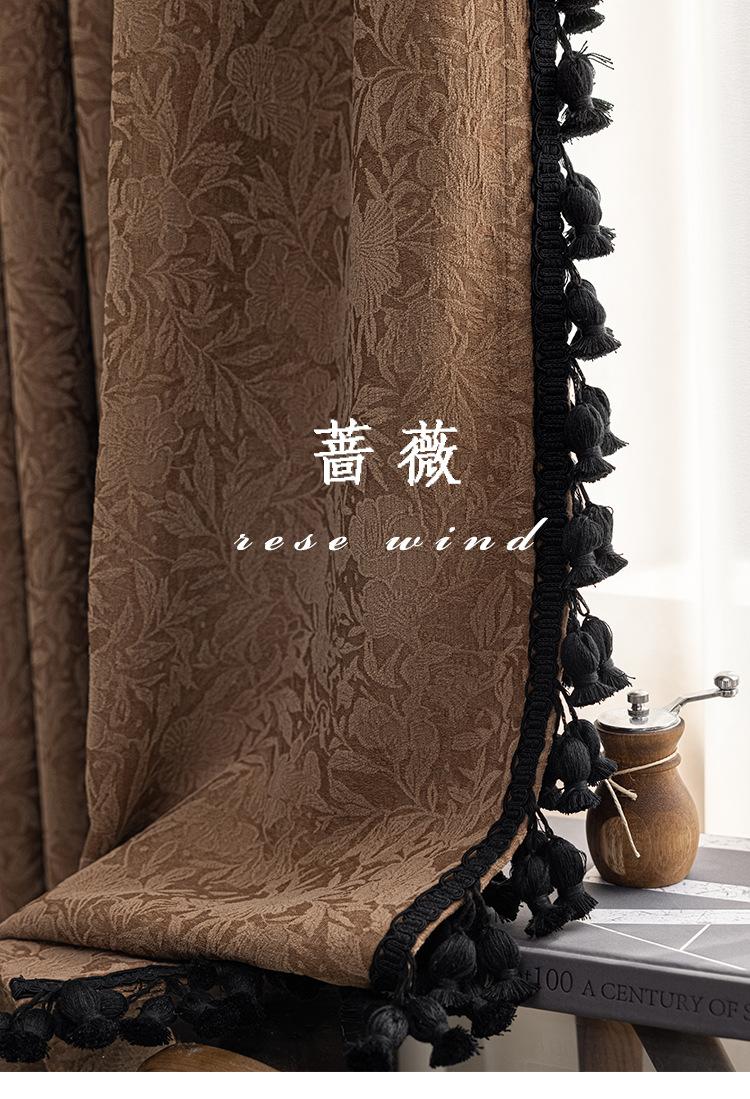 Cortinas Rosas Retro Francés Jacquard Chenille en Relieve Tela Gruesa y Lisa Cortinas para Sala de Estar y Dormitorio